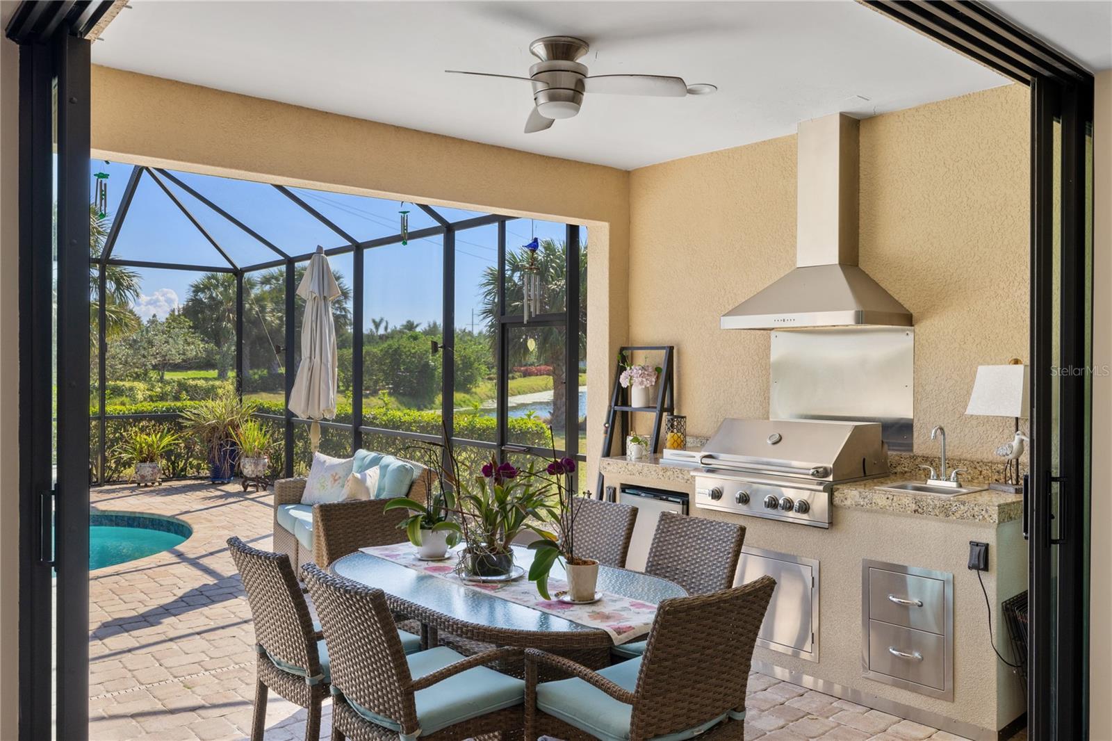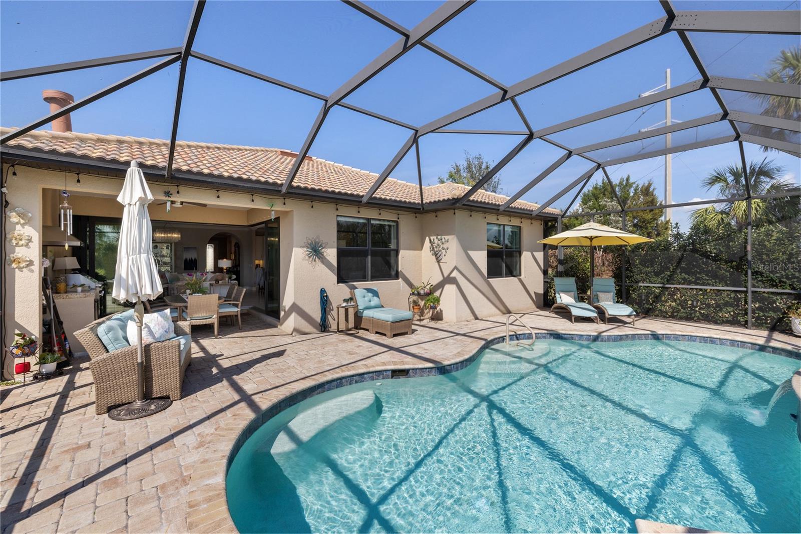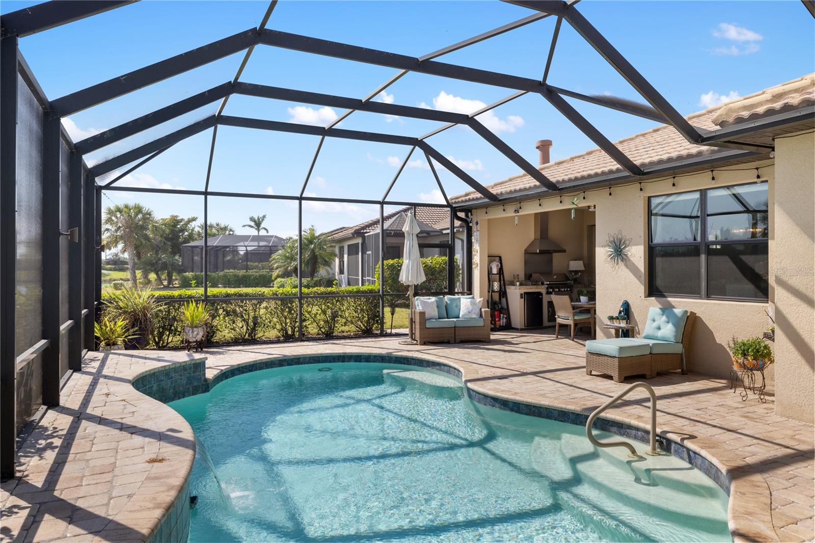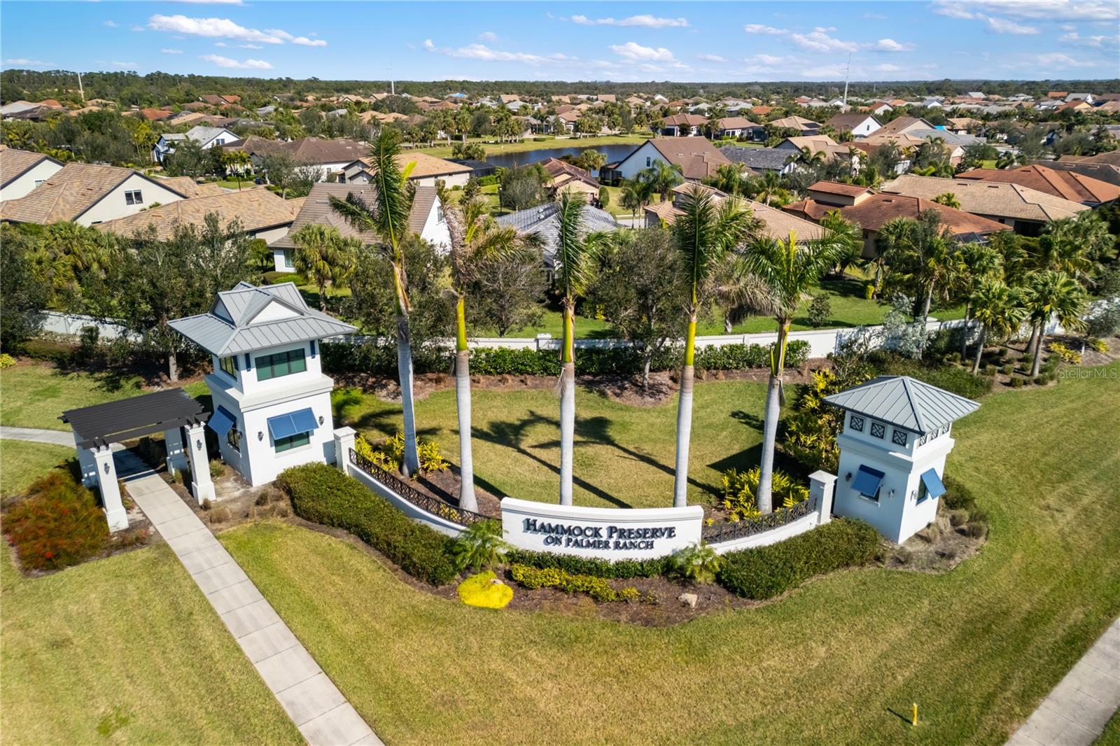 Seller is offering to contribute $5,000 toward the buyer's closing costs! Experience Unmatched Privacy & Luxury in Hammock Preserve on Palmer Ranch! This property is situated in one of the most private locations within the Hammock Preserve community--surrounded by nature, serenaded by birds, and overlooking a peaceful waterfront. With no neighboring homes in sight, you'll find yourself enjoying your morning coffee in absolute delight, immersed in tranquility and natural beauty. Welcome to your private oasis in the exclusive Hammock Preserve, where luxury and serenity come together in perfect harmony. This beautifully designed two-bedroom home with a versatile den/office--which can easily be converted into a third bedroom--offers the ideal blend of comfort, style, and flexibility. This highly sought-after Summerwood layout is designed for both elegance and functionality, featuring a split-bedroom floor plan and a rare level of privacy that truly sets it apart. From the moment you step inside, you're greeted by breathtaking water and nature views, with no neighbors to the left and no neighbors behind, ensuring unparalleled seclusion.The open-concept design seamlessly blends indoor and outdoor living, with a zero-corner slider leading to the extended lanai, where a heated pool and outdoor kitchen create the perfect retreat for relaxing or entertaining.The heart of the home is the gourmet kitchen, showcasing stainless steel gas appliances, quartz countertops, a spacious pantry, and ample cabinetry--along with a water filtration system under the sink. Porcelain tile flooring flows throughout, adding a touch of sophistication and lasting durability.The spacious primary suite offers a peaceful escape, complete with a walk-in closet, spa-like en-suite bathroom, dual vanities, and a walk-in shower. Both the primary and guest bedrooms are equipped with motorized, remote-controlled blackout blinds for ultimate comfort and privacy.This home is also ideally located within walking distance to a dog park, and you can even access it directly from the backyard--making it an ideal spot for pet lovers. Adding to its appeal, the extended garage provides ample space for a third car, additional storage, or even a jet ski--combining convenience with versatility.Nestled within Hammock Preserve, this home gives you access to resort-style amenities, including a modern clubhouse, fitness center, resort-style pool, and pickleball courts. Perfectly located near Sarasota's world-famous beaches, top-rated schools, and premier shopping and dining, this home offers the perfect balance of privacy and accessibility. This is a rare opportunity to own a truly secluded and luxurious retreat--schedule your private tour today!