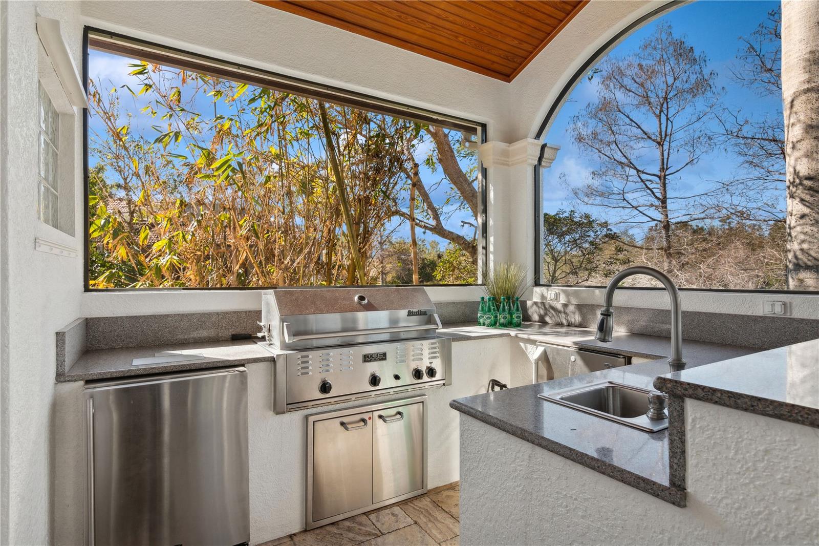 - Exterior: Balcony, Lighting, Outdoor Grill, Outdoor Kitchen, Outdoor Shower, Sliding Doors