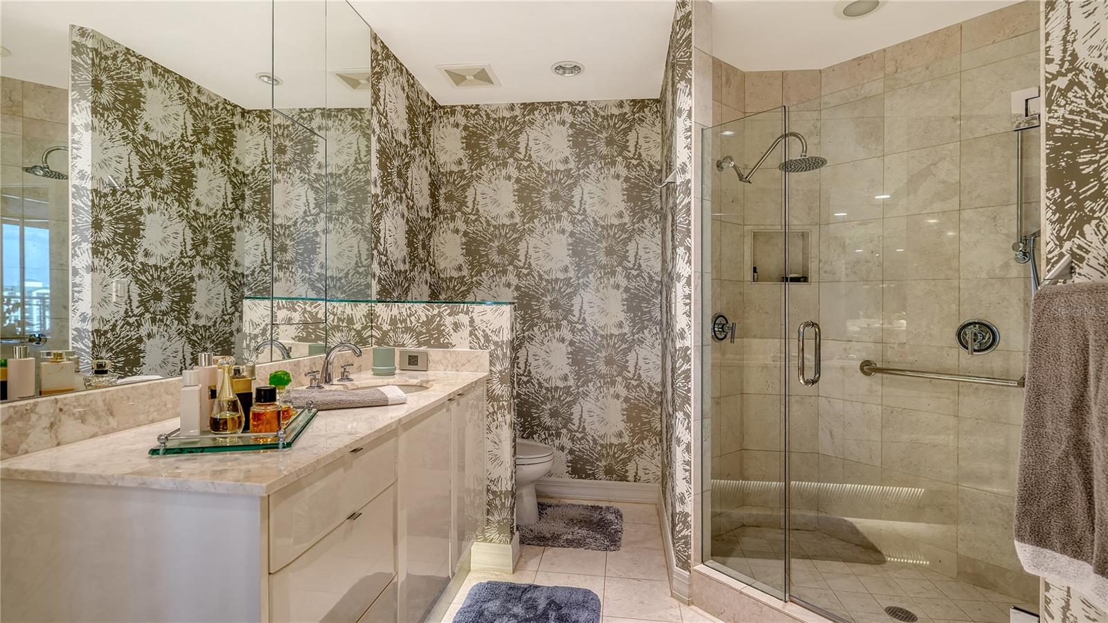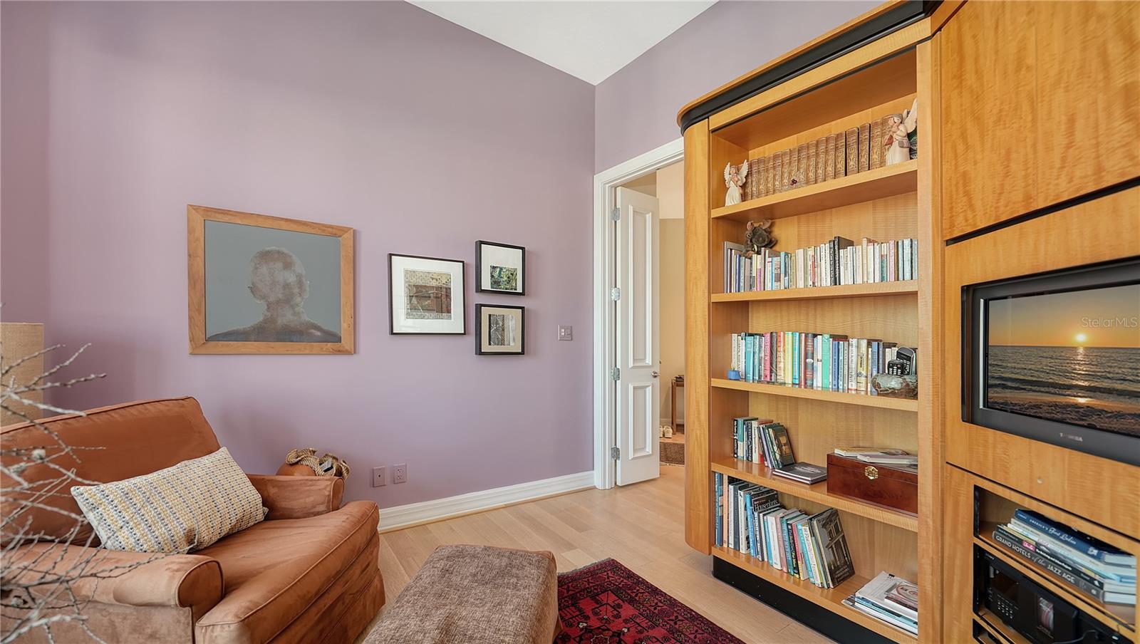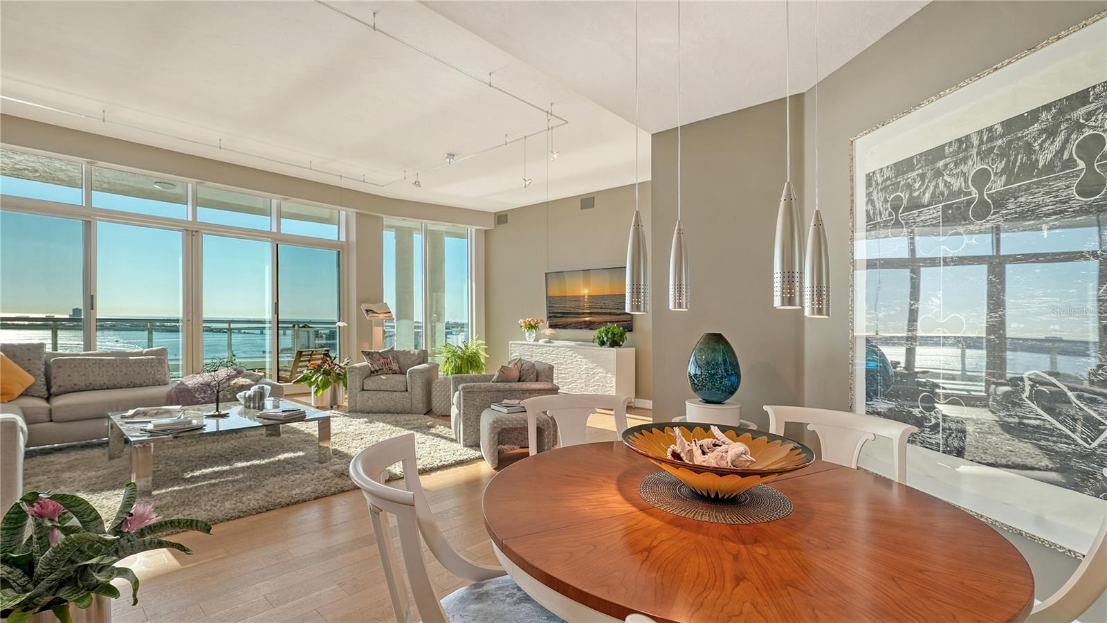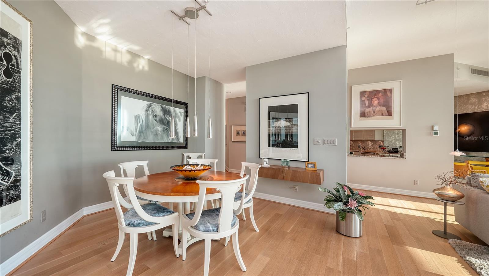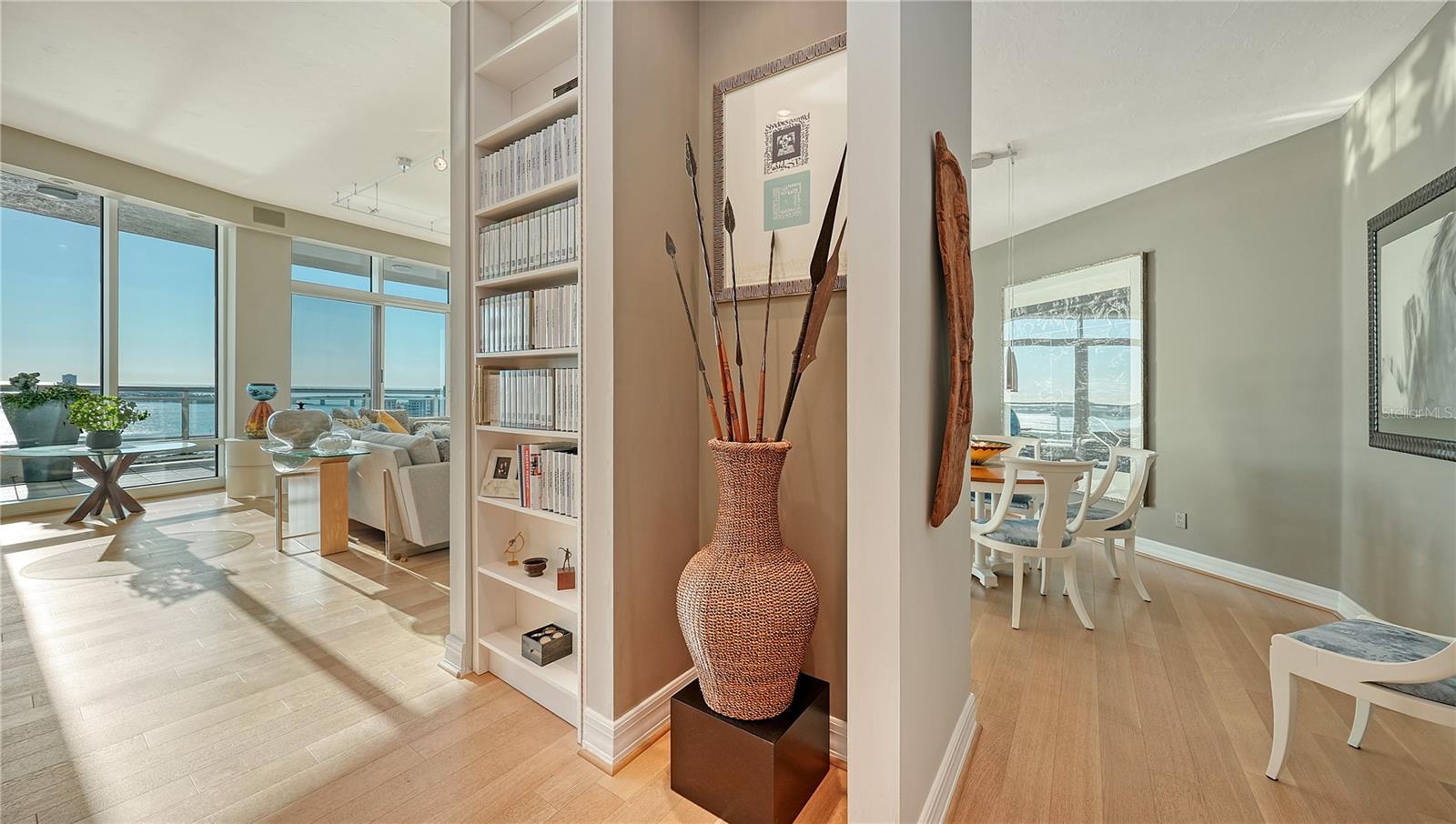 A gallery of luxury and good taste in this 16th-floor Sarabande penthouse. A privately keyed elevator takes you to the 16th floor. Enter and be inspired as you wander through the space that brings you the living room and a breathtaking view of Sarasota Bay, the newly reopened Midnight Pass, and the Gulf of Mexico. This 3,200-square-foot high-ceilinged penthouse was designed to create a sense of comfort and an invitation to congregate with family and friends. Solid-core doors, hardwood floors throughout, custom built-ins, designer lighting, and architectural details enhance the ambiance. And everywhere, there is light and an ever-changing, unobstructed view of the beautiful bay and marina. The chef's kitchen was designed for entertainment and equipped with high-end appliances. The bathrooms are in keeping with the condo's quality and style. The Penthouse is graced with an oversized terrace extending the entire length on the Bay Side, with access from the guest bedroom. There is a second private terrace off the Master Suite with a small adjacent room suited for an office. The Penthouse has three bedrooms (one bedroom is currently used as an office), 2.5 baths. Sarabande residents enjoy the convenience of full-time concierge and security services. They are steps away from cultural events and downtown restaurants.
