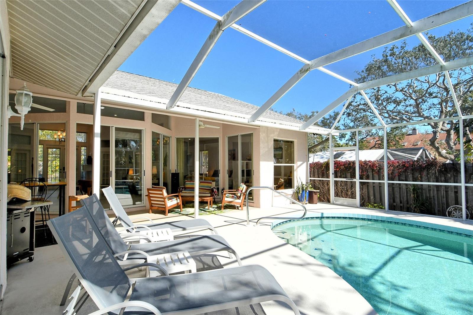 Nestled in the heart of Siesta Key, this home offers the perfect blend of relaxation and opportunity. Whether you're seeking a serene beach getaway, a lucrative vacation rental, or a full-time residence, this property checks all the boxes. The home's unique floor plan is flooded with natural light, creating a bright, inviting atmosphere throughout. A rare find, both the home and the garage are elevated, ensuring that all living spaces are conveniently located on a single level. This thoughtful design and high elevation provide easy access to the pool and give peace of mind - no flooding in the house or garage from recent storms. Even the driveway is elevated, keeping your cars high and dry. As you step inside, soaring 12-foot ceilings greet you in the foyer and main living area, with expansive glass sliding doors framing the view of the pool. The floor plan includes 3 spacious bedrooms, plus a versatile mother-in-law suite. The primary bedroom boasts enough room for a separate sitting area and direct access to the pool, while the second bedroom also enjoys direct pool views and access. The dining room and fourth bedroom have been reconfigured to form a cozy mother-in-law suite, but the original layout could be easily reinstated. Outdoor living takes center stage in this tropical oasis, with a heated pool offering the perfect retreat. The oversized, 26-foot deep two-car garage provides ample space for your toys and beach gear. Recent updates include a tankless hot water system and a new pool heater installed in 2022. Whether you choose to update the home to suit your personal style or enjoy its current coastal cottage charm, the possibilities are endless. Located in a tranquil, natural setting, this property can become your peaceful beach escape, a profitable rental investment or a combination of both. Currently being used for short term rentals, and rental history available on request. Just a short walk or bike ride to the renowned Siesta Key beaches, along with easy access to local dining, shopping, and nightlife. This is a rare opportunity you won't want to miss!