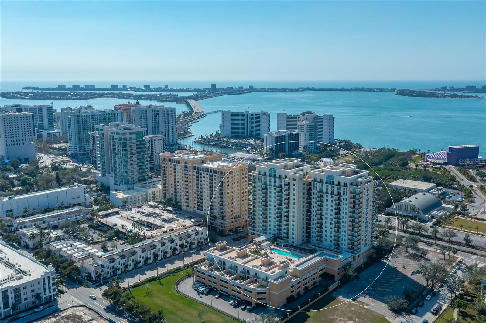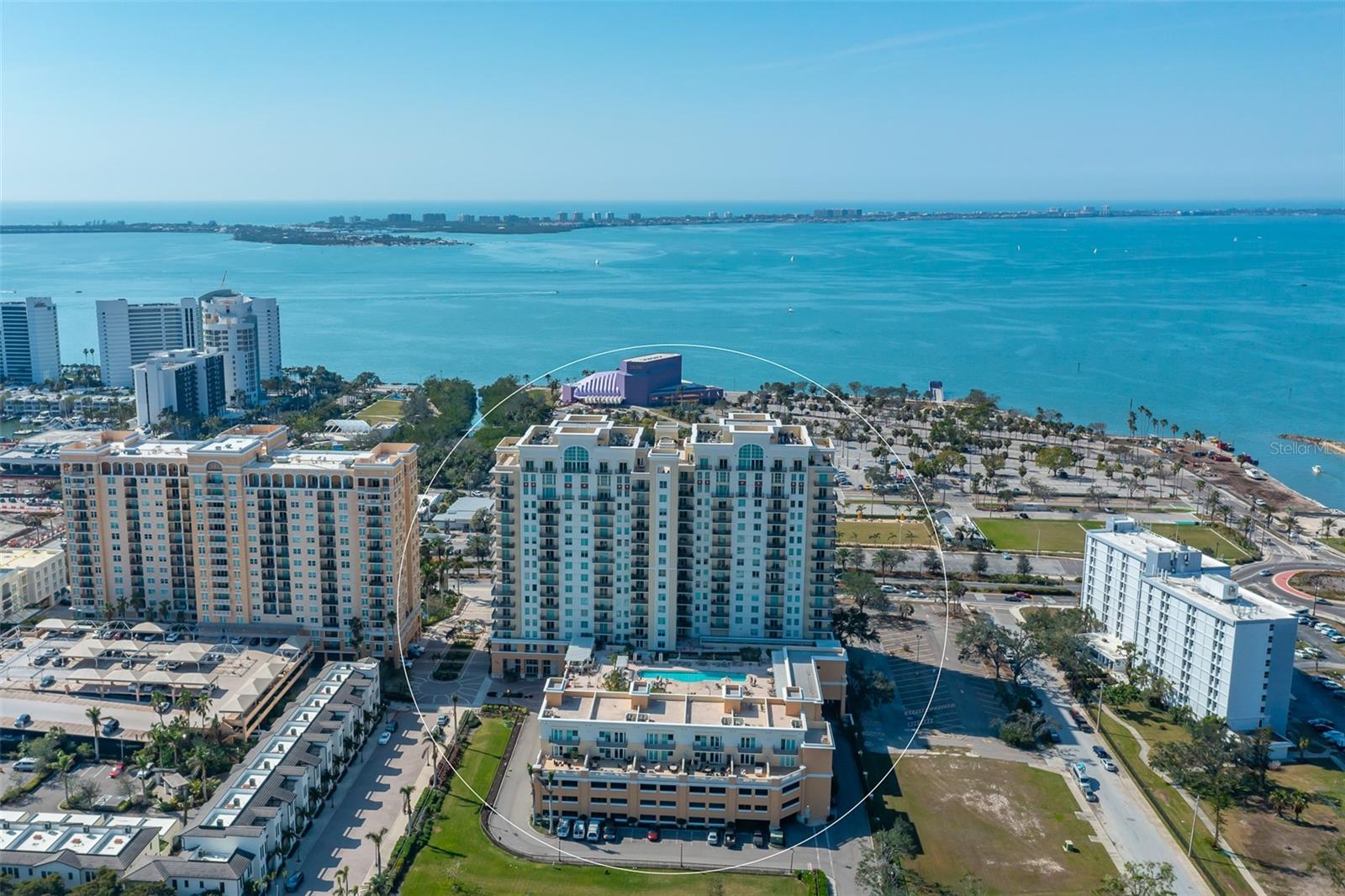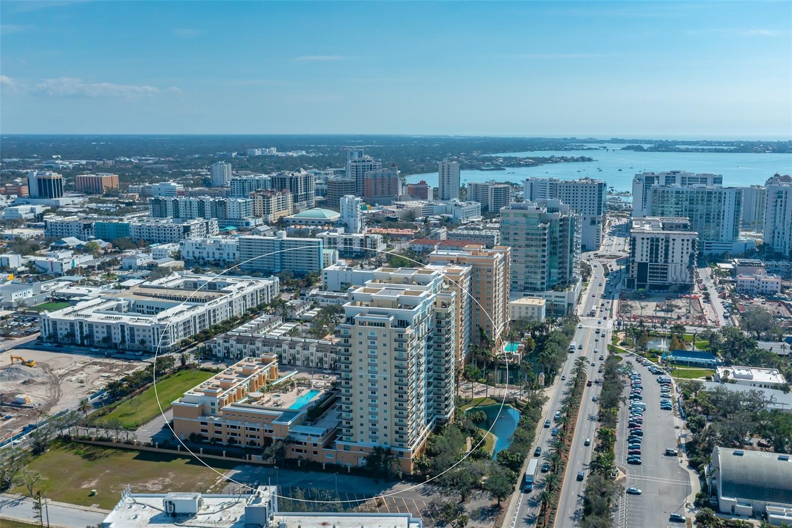 This extraordinary 12th-floor corner unit in the South Tower at Alinari offers panoramic bay and city views from every angle, making it an unrivaled gem in Sarasota's downtown bayfront. With a spacious layout featuring wrap-around balconies accessible from the main bedroom and living room, plus a third balcony off the guest bedroom, this condominium home feels like an extension of the beautiful outdoors. Upon entering, you're greeted by high ceilings and luxurious wood flooring in the foyer, dining room, kitchen and living areas, exuding elegance and sophistication. The kitchen boasts quartz countertops and other thoughtful upgrades, enhancing functionality and beauty. The open-concept living spaces flow seamlessly, maximizing natural light and creating an inviting environment for entertaining or simply relaxing while enjoying the stunning vistas. The generously sized owner's suite offers a private retreat, providing ample space to unwind in comfort. This home is in the heart of Sarasota's vibrant downtown, where culture, art and entertainment come together with luxury living. You're just steps from iconic landmarks such as the Van Wezel Performing Arts Hall and Sarasota's cultural heart. Whether you enjoy world-class performances one night or a serene visit along the bay the next, all of this is within reach from your front door. For those seeking convenience, a second parking space conveys, and top-of-the-line amenities are right at your doorstep. The building offers 24-hour security, a heated lap pool and spa, a state-of-the-art fitness center, media room, business center, library, wine cellar and more. Whether you're hosting friends in the large club room, relaxing in the sauna or enjoying the outdoor grilling area, this residence is designed to offer you an elevated lifestyle. Step outside and witness the exciting future of Sarasota Bay with the transformation of The Bay Sarasota, an ambitious development that's creating a cultural and economic legacy for the region. In this prime location, you'll have unparalleled access to fine dining, shopping and the burgeoning Rosemary District. Plus, Lido Beach is just a short drive for the ultimate escape. This is your chance to own a piece of Sarasota's future, where the city meets the sea, and every aspect of your lifestyle is catered to. Don't miss the opportunity to make this extraordinary home yours.