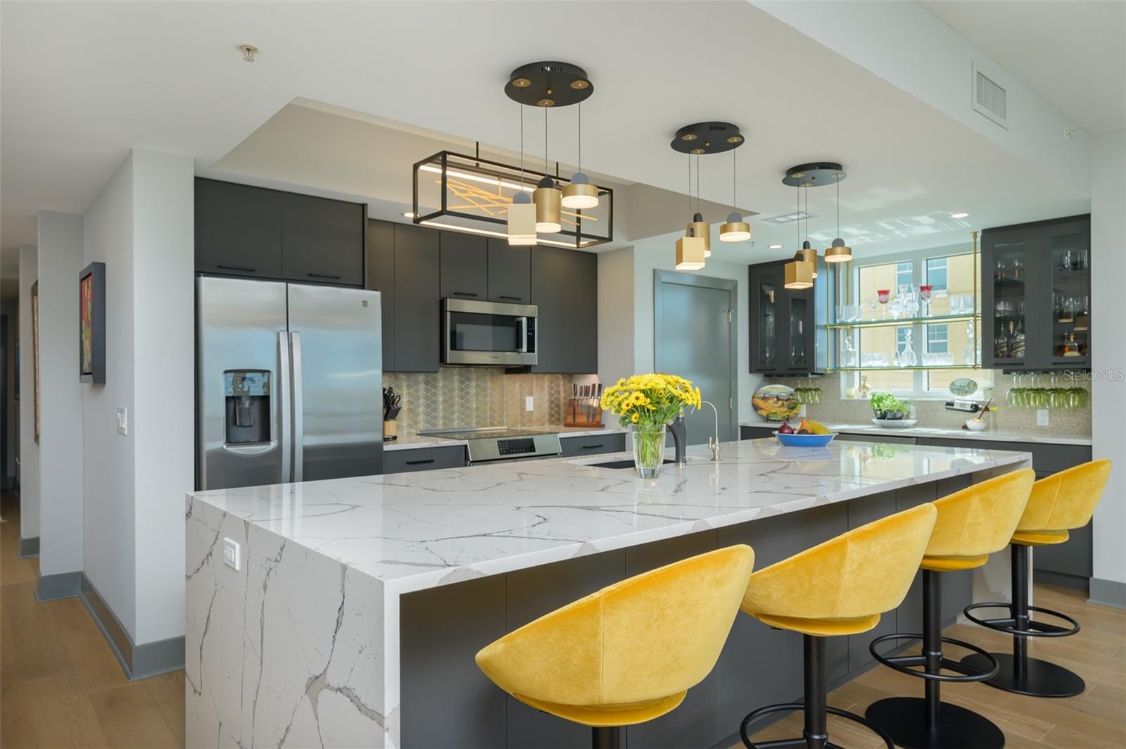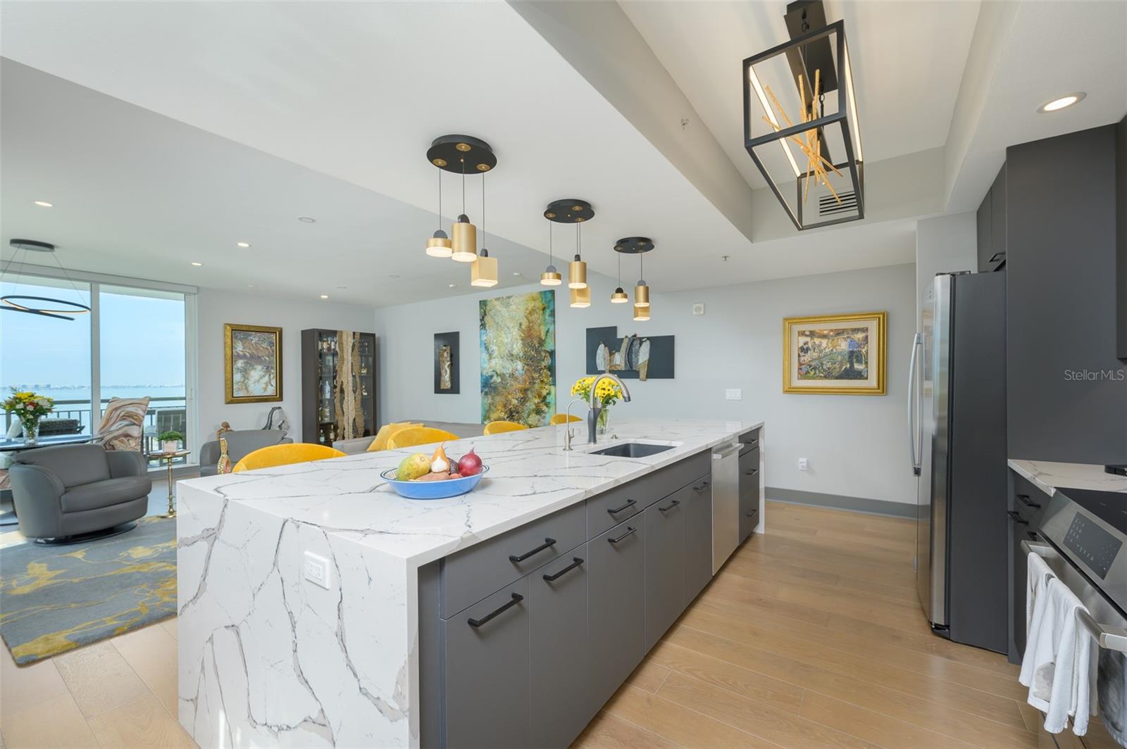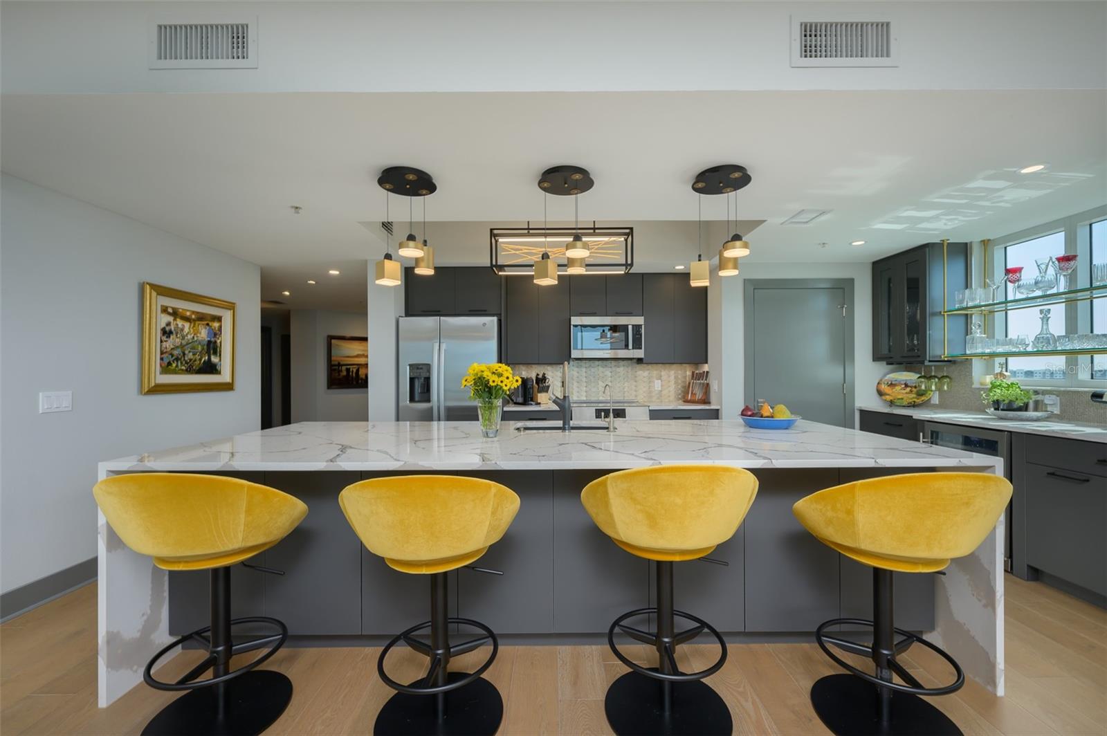 This extraordinary 12th-floor corner unit in the South Tower at Alinari offers panoramic bay and city views from every angle, making it an unrivaled gem in Sarasota's downtown bayfront. With a spacious layout featuring wrap-around balconies accessible from the main bedroom and living room, plus a third balcony off the guest bedroom, this condominium home feels like an extension of the beautiful outdoors. Upon entering, you're greeted by high ceilings and luxurious wood flooring in the foyer, dining room, kitchen and living areas, exuding elegance and sophistication. The kitchen boasts quartz countertops and other thoughtful upgrades, enhancing functionality and beauty. The open-concept living spaces flow seamlessly, maximizing natural light and creating an inviting environment for entertaining or simply relaxing while enjoying the stunning vistas. The generously sized owner's suite offers a private retreat, providing ample space to unwind in comfort. This home is in the heart of Sarasota's vibrant downtown, where culture, art and entertainment come together with luxury living. You're just steps from iconic landmarks such as the Van Wezel Performing Arts Hall and Sarasota's cultural heart. Whether you enjoy world-class performances one night or a serene visit along the bay the next, all of this is within reach from your front door. For those seeking convenience, a second parking space conveys, and top-of-the-line amenities are right at your doorstep. The building offers 24-hour security, a heated lap pool and spa, a state-of-the-art fitness center, media room, business center, library, wine cellar and more. Whether you're hosting friends in the large club room, relaxing in the sauna or enjoying the outdoor grilling area, this residence is designed to offer you an elevated lifestyle. Step outside and witness the exciting future of Sarasota Bay with the transformation of The Bay Sarasota, an ambitious development that's creating a cultural and economic legacy for the region. In this prime location, you'll have unparalleled access to fine dining, shopping and the burgeoning Rosemary District. Plus, Lido Beach is just a short drive for the ultimate escape. This is your chance to own a piece of Sarasota's future, where the city meets the sea, and every aspect of your lifestyle is catered to. Don't miss the opportunity to make this extraordinary home yours.