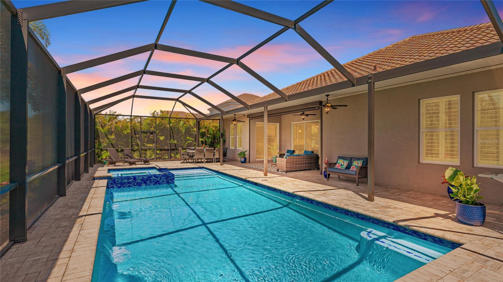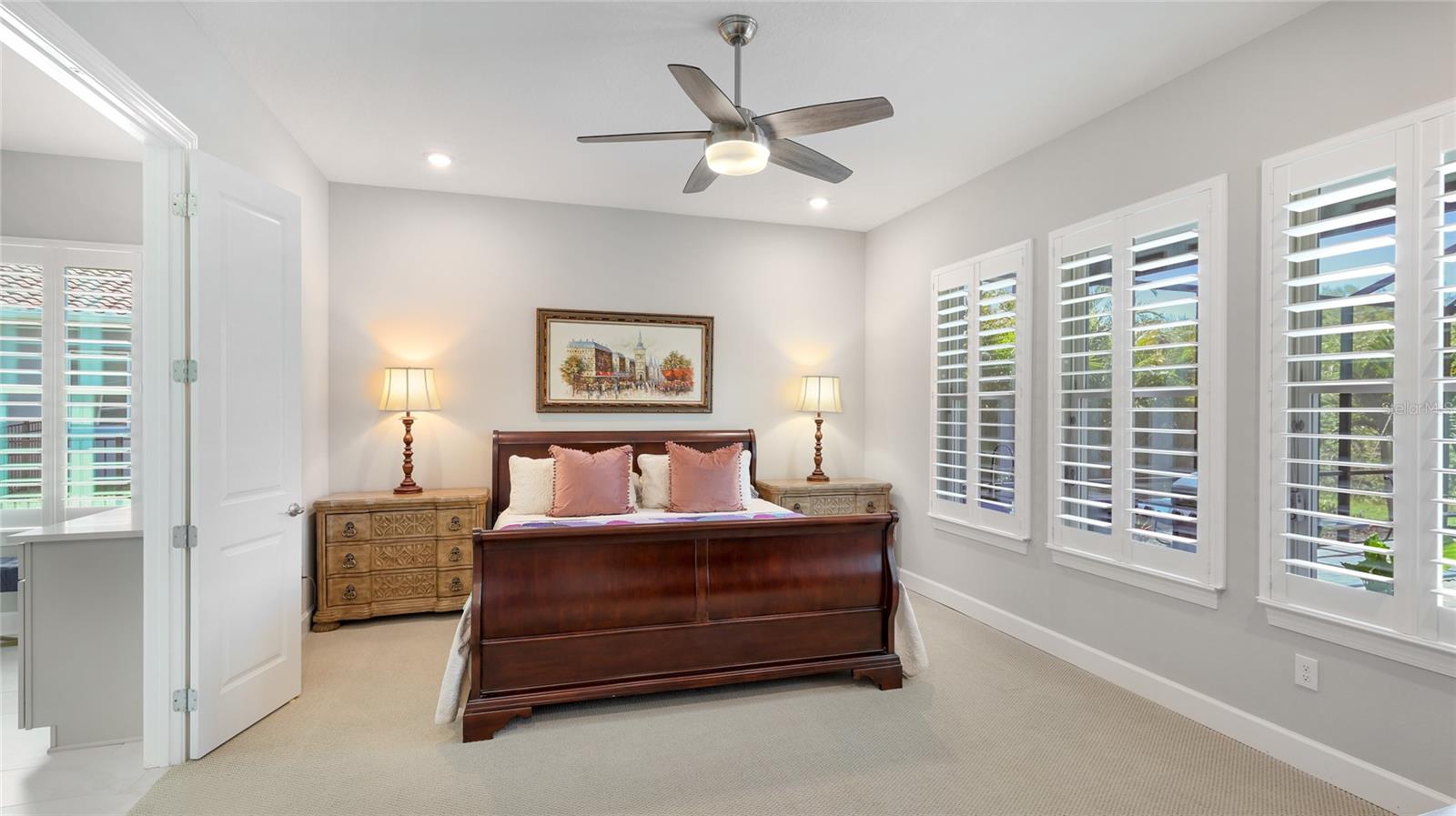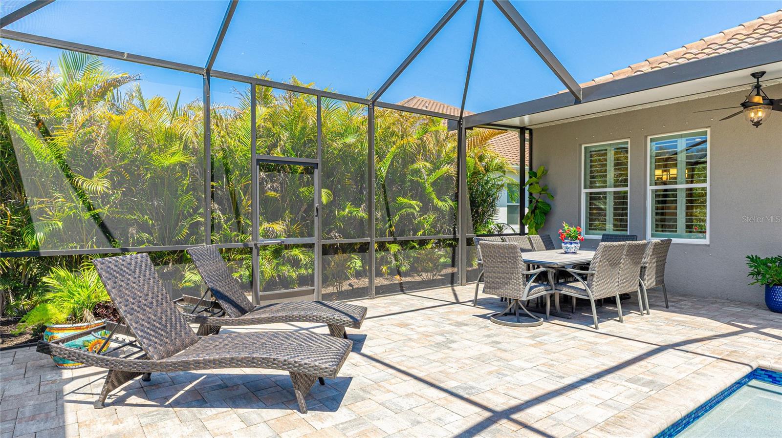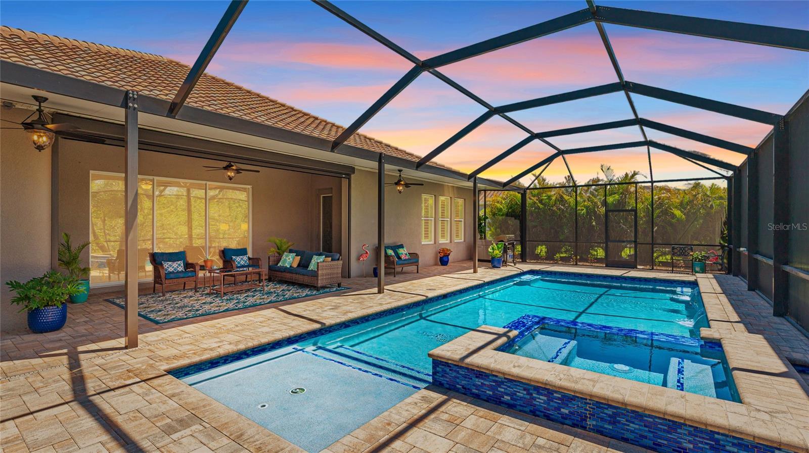 Coastal living at its finest in this meticulously kept Ashwood II model home conveniently located in the #1 award winning master planned community in the US, Lakewood Ranch. This exquisite, well laid out single-story residence offers 4 bedrooms with walk-in closets and 3.5 bathrooms plus a large den with solid double doors, perfectly situated on a spacious quarter-acre private lot. Once inside you'll see the amazing upgrades including tall ceilings with 10 foot tray ceilings, ceramic tile floors, plantation shutters, ceiling fans, and in-ceiling speakers in the great room. Entertain guests in this open floor plan featuring a gourmet kitchen with double oven and quartz countertops that overlooks a spectacular pool view. Wake up to paradise in the spacious owner's retreat with private lush preserve views and quick access to the pool. The owner's bathroom includes dual vanities, expansive shower, freestanding soaking tub, and a large walk-in closet. Step outside to your private oasis and take a dip in the large salt water custom pool and spa with elegant water features and colored lights. Sit back and enjoy both beauty and exceptional privacy or entertain from the expansive patio space while cooking dinner outside. This home features an outdoor pool bath, lots of storage available with multiple linen closets, water softener, included washer and dryer, a separate mud room, Storm Shield in the lanai, a full 3 car garage with epoxy floors and overhead storage, and lush, tropical landscaping with lighting that enhances the tranquil atmosphere. Located in the highly sought after Savanna community, this home offers access to a host of amenities, including a clubhouse, fitness center, resort-style pool, playground, dog park, and basketball court. An amazing location that is just minutes to A-rated schools, golf courses, and lots of upscale shopping and restaurants. Lakewood Ranch offers the convenience of being centrally located to both Anna Maria Island and Siesta Key with each of their award-winning beaches!