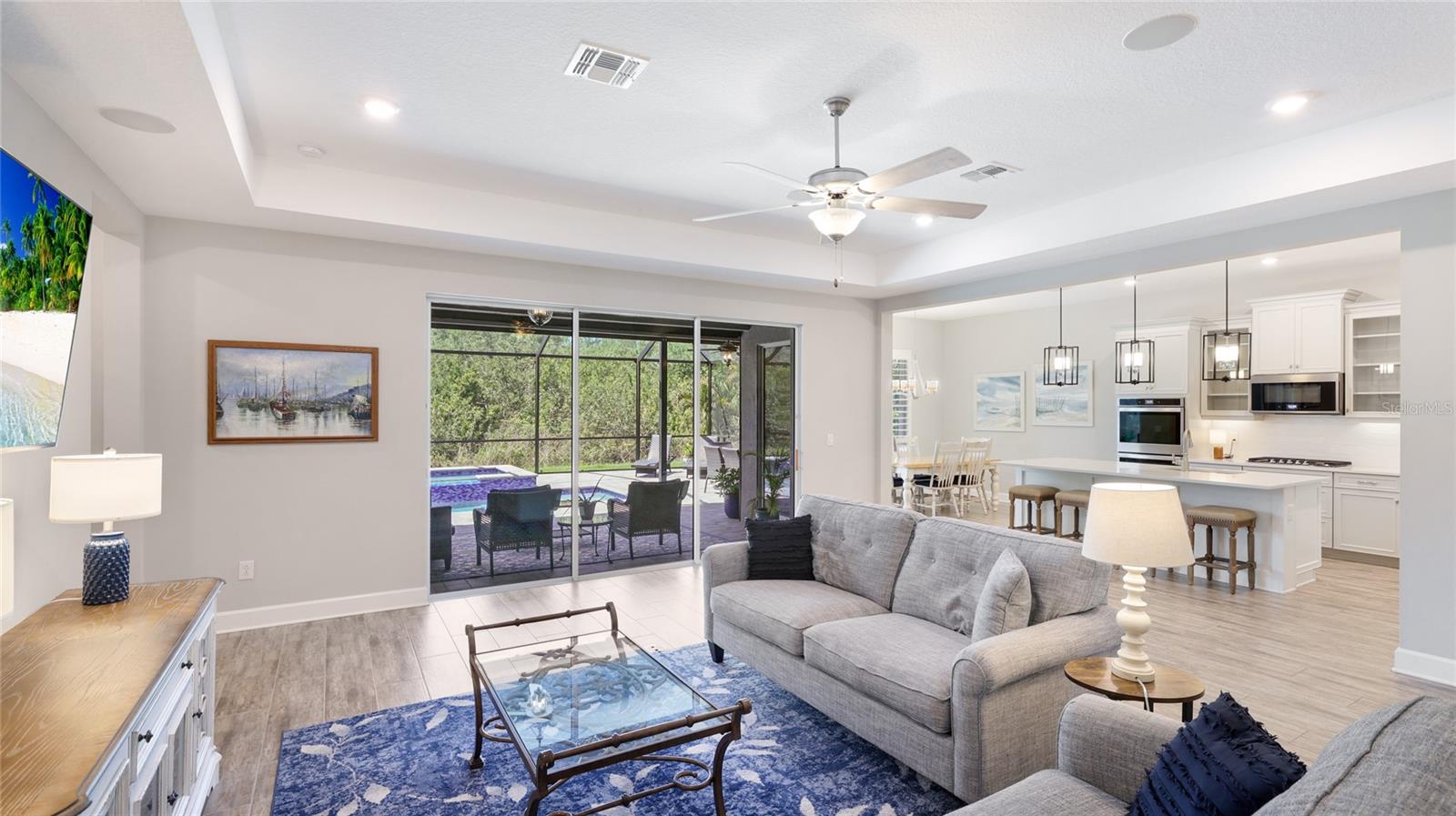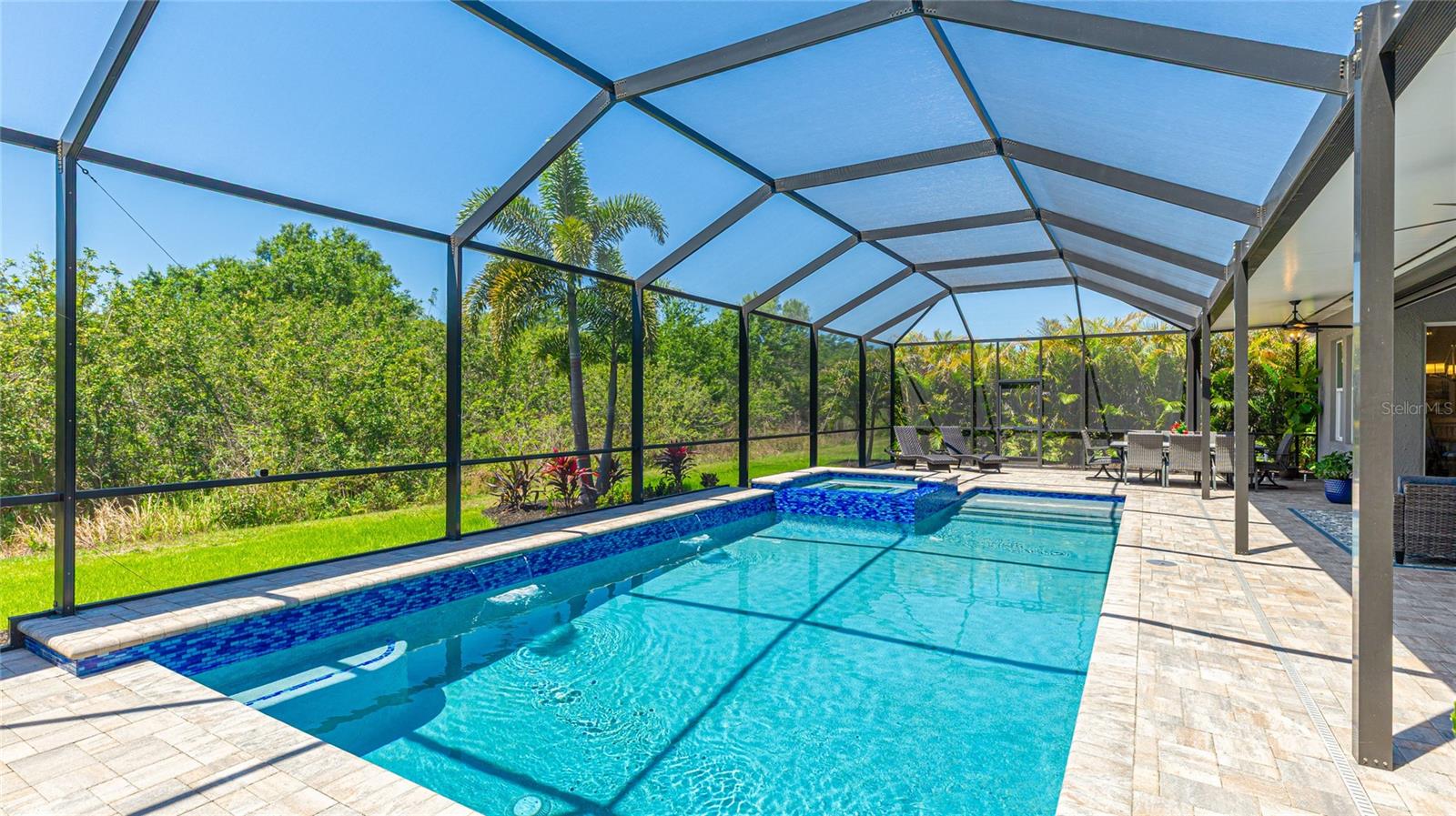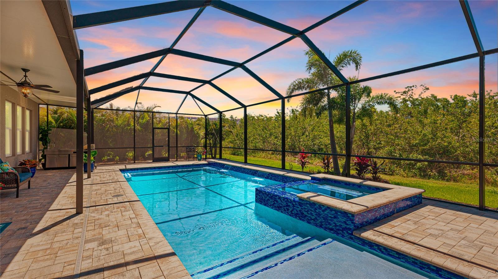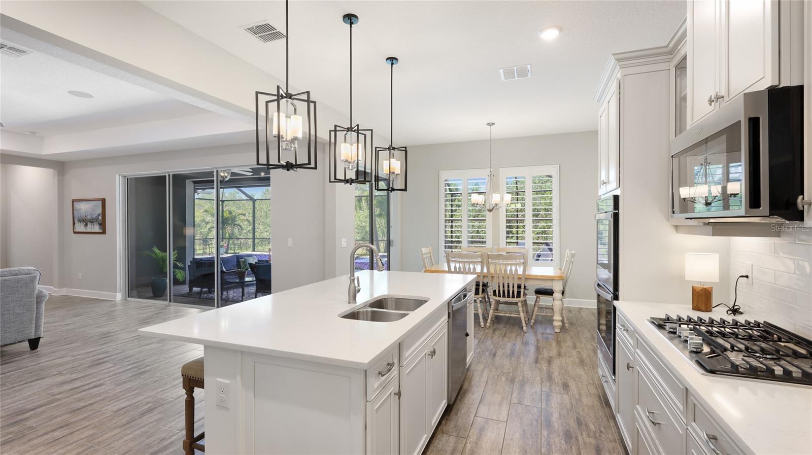 Coastal living at its finest in this meticulously kept Ashwood II model home conveniently located in the #1 award winning master planned community in the US, Lakewood Ranch. This exquisite, well laid out single-story residence offers 4 bedrooms with walk-in closets and 3.5 bathrooms plus a large den with solid double doors, perfectly situated on a spacious quarter-acre private lot. Once inside you'll see the amazing upgrades including tall ceilings with 10 foot tray ceilings, ceramic tile floors, plantation shutters, ceiling fans, and in-ceiling speakers in the great room. Entertain guests in this open floor plan featuring a gourmet kitchen with double oven and quartz countertops that overlooks a spectacular pool view. Wake up to paradise in the spacious owner's retreat with private lush preserve views and quick access to the pool. The owner's bathroom includes dual vanities, expansive shower, freestanding soaking tub, and a large walk-in closet. Step outside to your private oasis and take a dip in the large salt water custom pool and spa with elegant water features and colored lights. Sit back and enjoy both beauty and exceptional privacy or entertain from the expansive patio space while cooking dinner outside. This home features an outdoor pool bath, lots of storage available with multiple linen closets, water softener, included washer and dryer, a separate mud room, Storm Shield in the lanai, a full 3 car garage with epoxy floors and overhead storage, and lush, tropical landscaping with lighting that enhances the tranquil atmosphere. Located in the highly sought after Savanna community, this home offers access to a host of amenities, including a clubhouse, fitness center, resort-style pool, playground, dog park, and basketball court. An amazing location that is just minutes to A-rated schools, golf courses, and lots of upscale shopping and restaurants. Lakewood Ranch offers the convenience of being centrally located to both Anna Maria Island and Siesta Key with each of their award-winning beaches!
