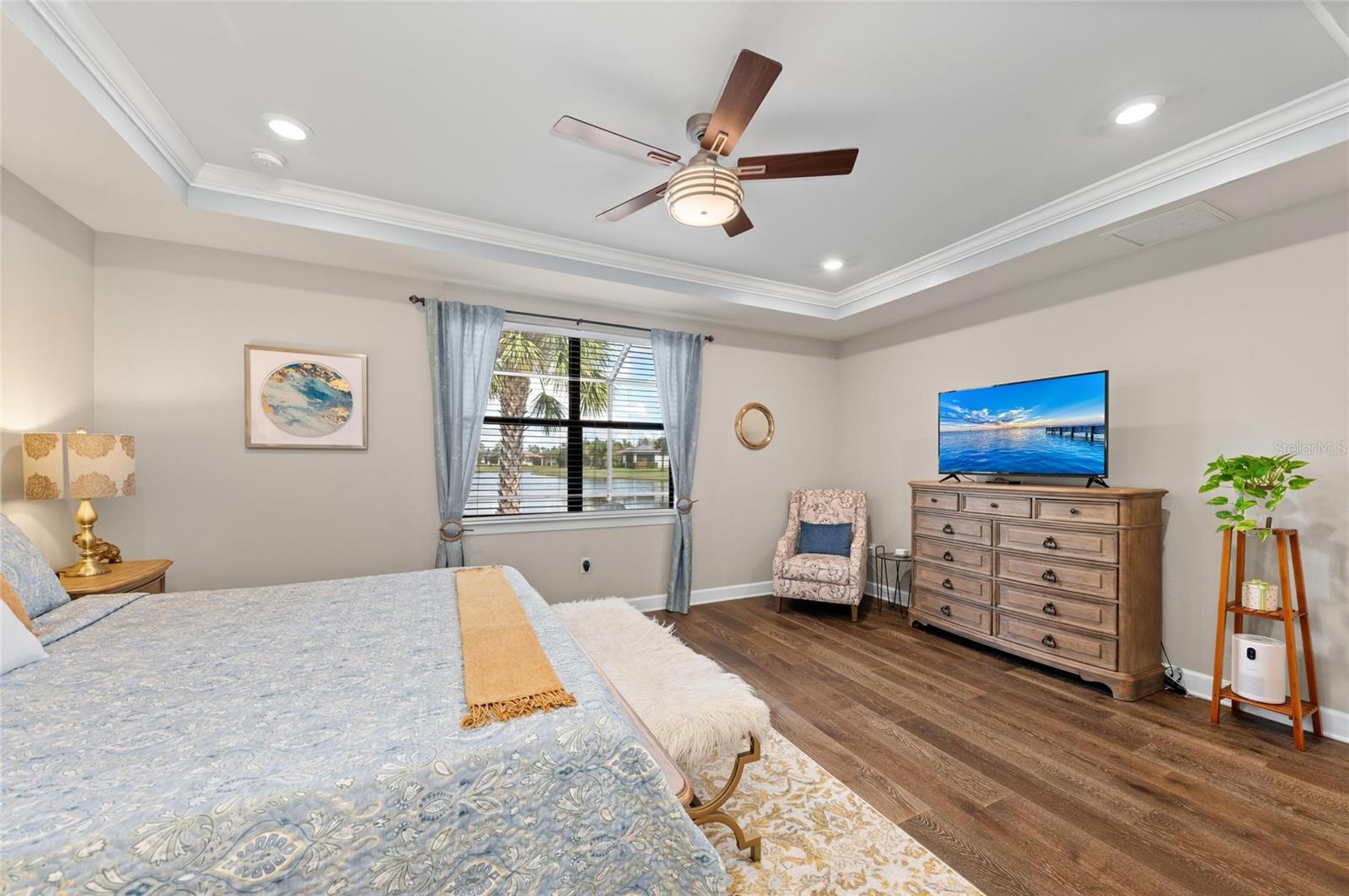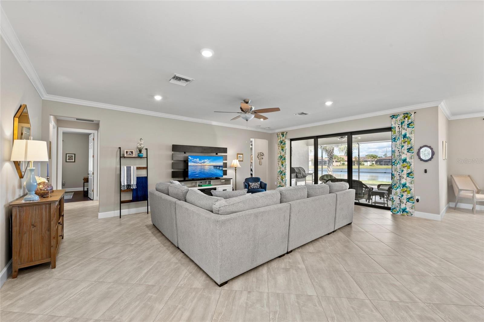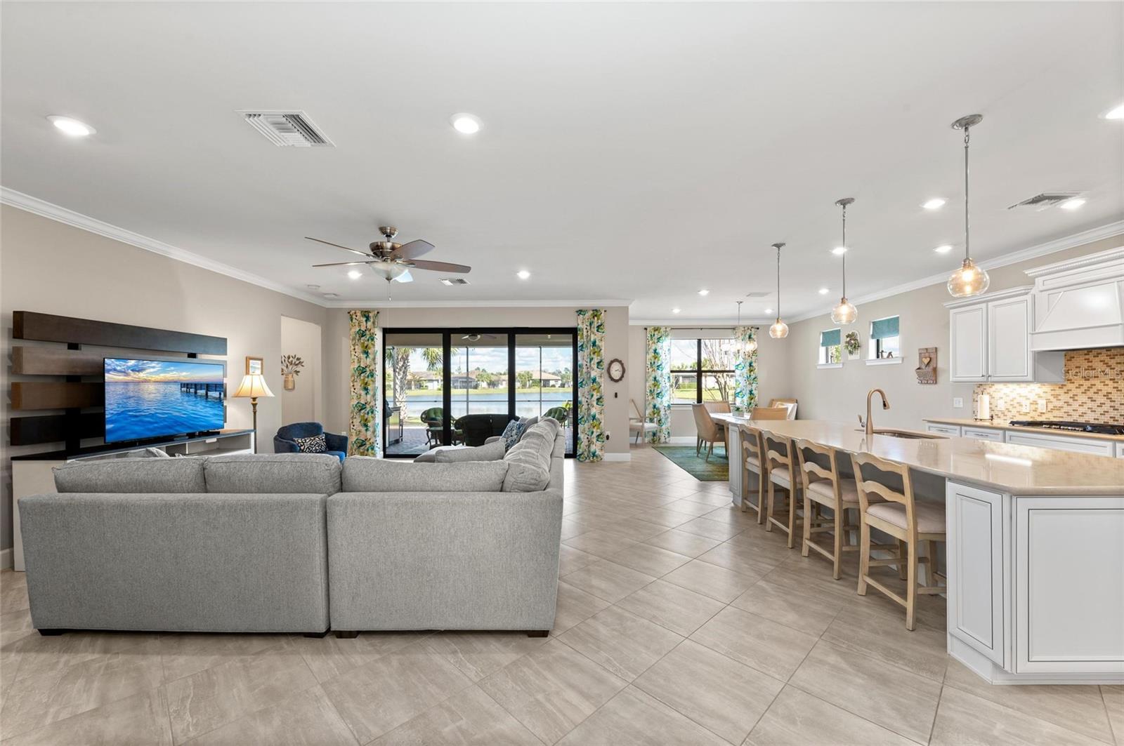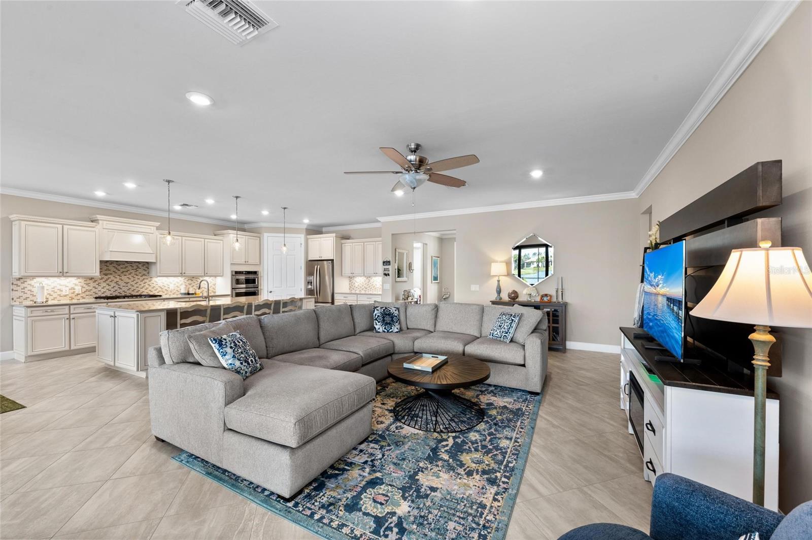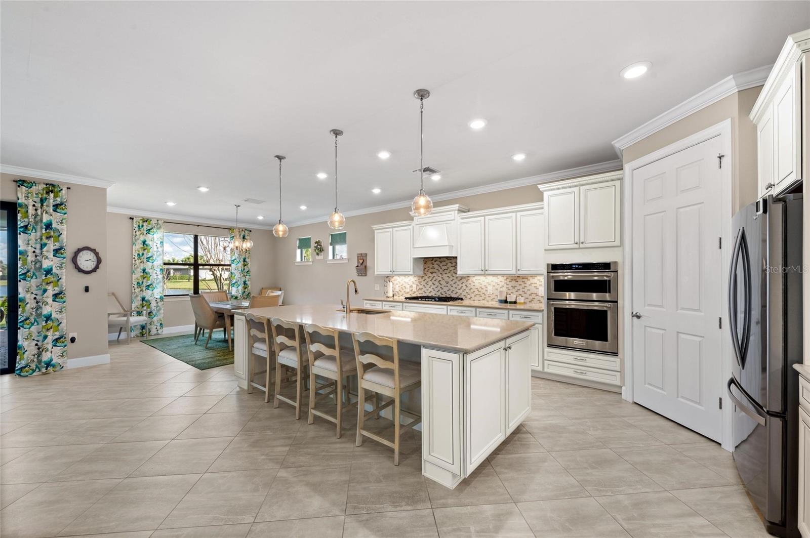 One or more photo(s) has been virtually staged. INTRODUCING THE PERFECT PINNACLE! Prepare to be captivated by this exceptional Estate Series PINNACLE MODEL, offering breathtaking water views and situated in the highly sought-after 55+ Del Webb community of Lakewood Ranch--the nation's #1 multi-generational expert-planned development. This exquisite residence delivers the ultimate in luxurious Florida living, blending timeless elegance with modern upgrades and everyday functionality. With 3 bedrooms, a versatile den, and a spacious open layout, this home is ideal for both entertaining and daily comfort. Designer touches are found throughout, including crown molding, 5 baseboards, tray ceiling in the owner's suite, gorgeous coffered ceiling in the den, designer fans, upgraded lighting fixtures, and hurricane impact glass for peace of mind. At the heart of the home, the gourmet kitchen inspires culinary creativity, featuring a massive island with seating for four, modern pendant lighting, 42" solid wood cabinetry, elegant quartz countertops, stylish backsplash, gas cooktop with upgraded hood, generous storage and prep space, and a custom pantry with built-ins. The home is finished with hard surface flooring throughout that includes a mix of light ceramic tile in the main living areas and rich wood plank flooring in the bedrooms and den, creating a sophisticated yet warm ambiance. For seamless entertaining, open the zero- corner sliding doors to the extended, covered lanai where you will find ample space for dining, lounging, and tranquil water views--the perfect backdrop for Florida evenings. The expansive owner's suite offers room for a cozy sitting area and a spa-inspired ensuite with dual vanities, large walk-in shower with a grab bar for safety, and an oversized custom walk-in closet with built-ins and abundant storage. Two additional guest bedrooms, including one with its own ensuite, custom closet, a versatile den with a coffered ceiling--ideal as a home office, gym, craft room, or library. Additional highlights include a 3-car garage built-in storage cabinets, upgraded laundry room with solid wood cabinetry, utility sink, extended screened lanai for ultimate outdoor living. Act quickly. Don't miss the chance to call this Pinnacle Model showpiece your own and experience luxury living at its finest. Schedule your private tour today!