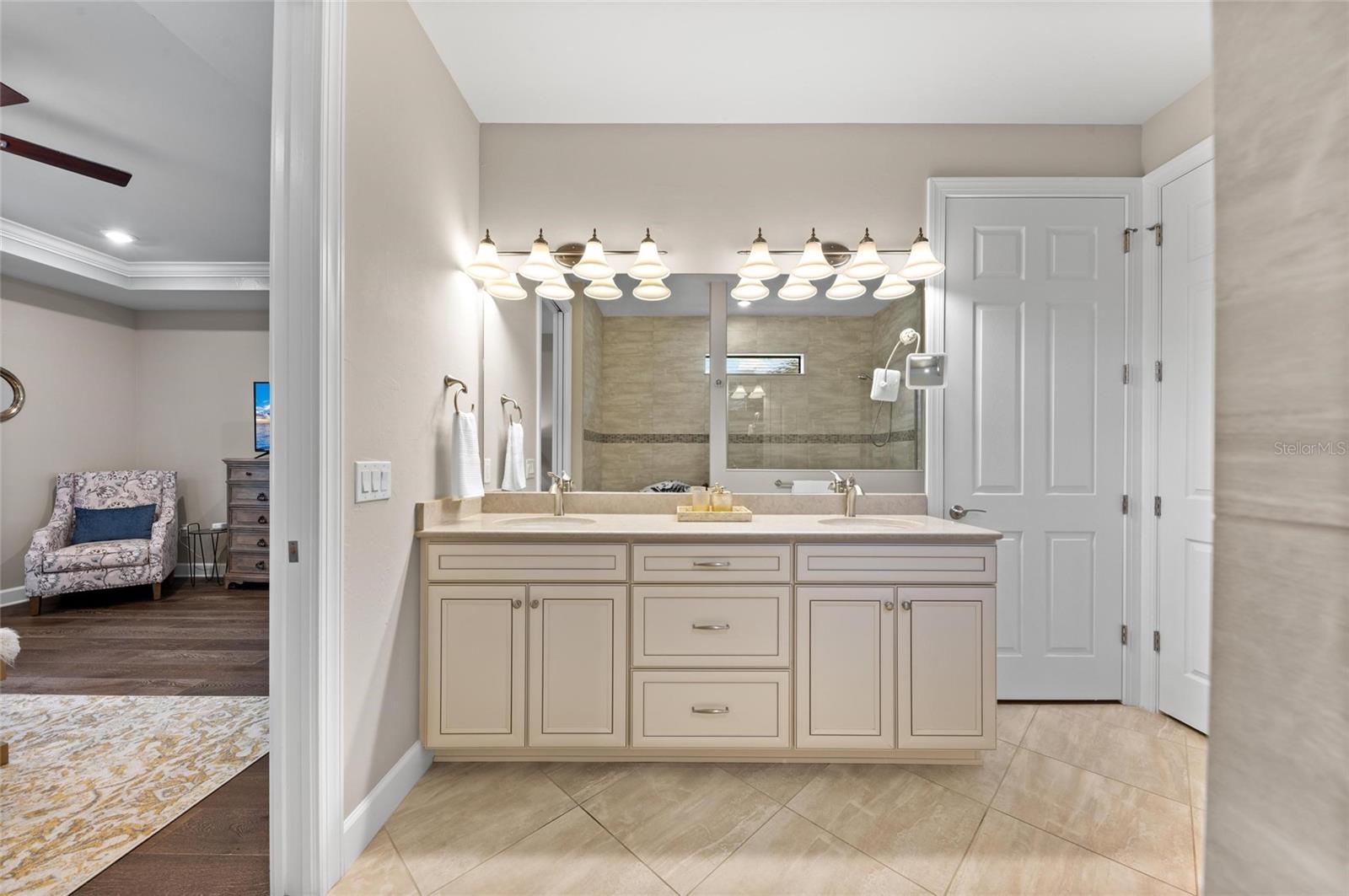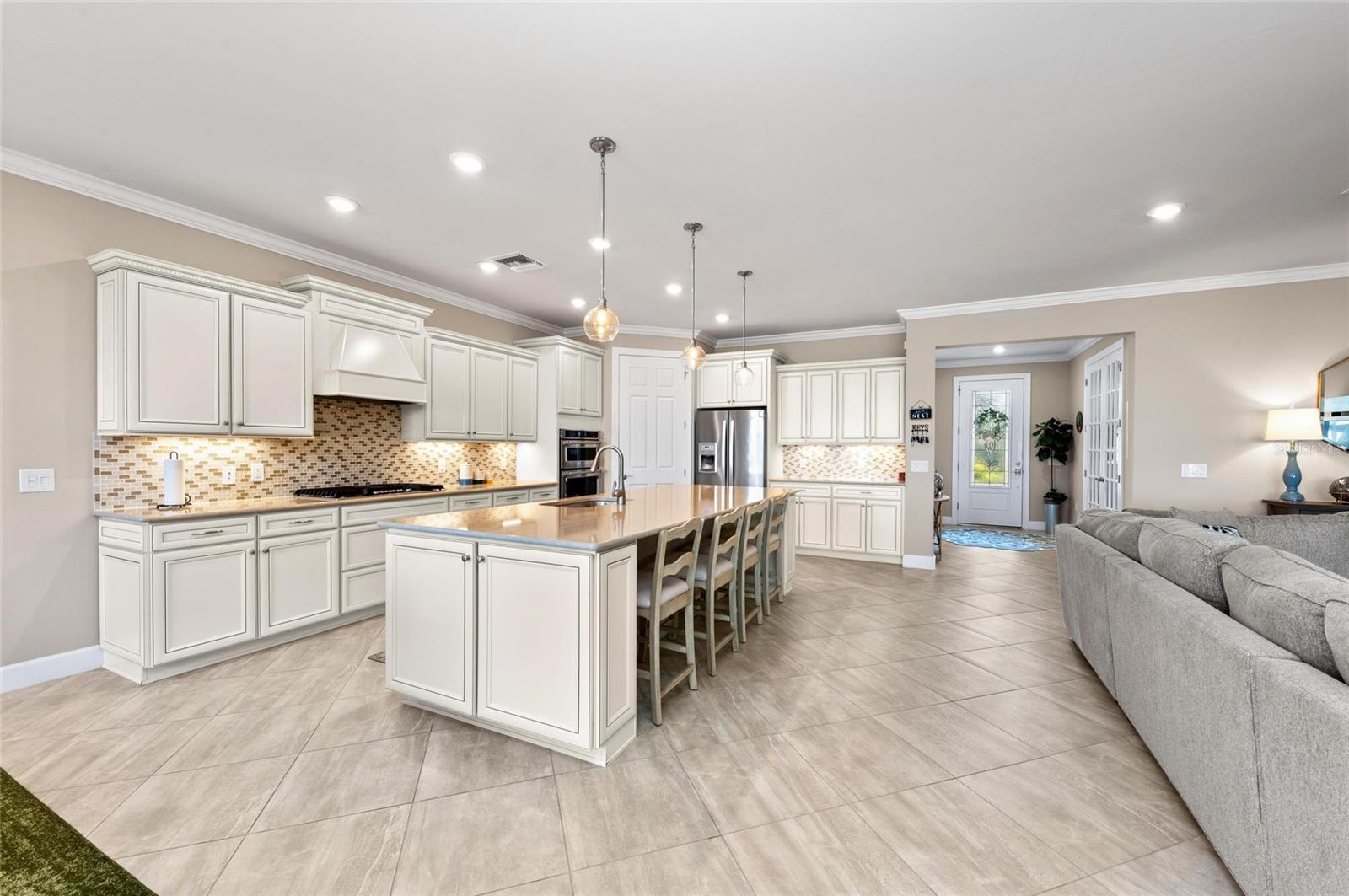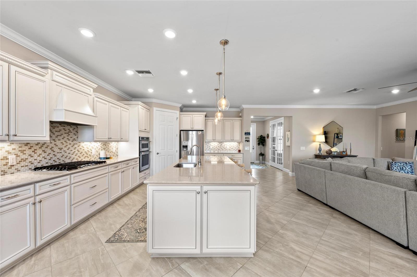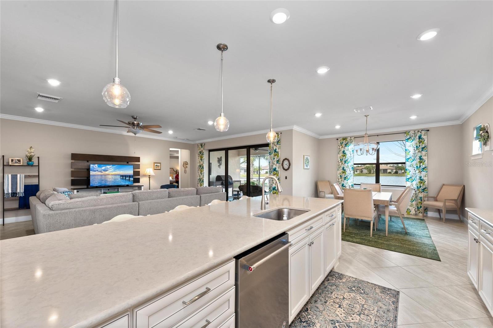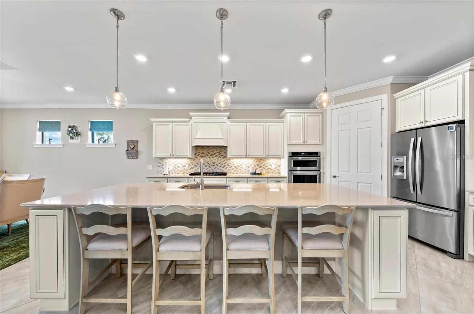 One or more photo(s) has been virtually staged. INTRODUCING THE PERFECT PINNACLE! Prepare to be captivated by this exceptional Estate Series PINNACLE MODEL, offering breathtaking water views and situated in the highly sought-after 55+ Del Webb community of Lakewood Ranch--the nation's #1 multi-generational expert-planned development. This exquisite residence delivers the ultimate in luxurious Florida living, blending timeless elegance with modern upgrades and everyday functionality. With 3 bedrooms, a versatile den, and a spacious open layout, this home is ideal for both entertaining and daily comfort. Designer touches are found throughout, including crown molding, 5 baseboards, tray ceiling in the owner's suite, gorgeous coffered ceiling in the den, designer fans, upgraded lighting fixtures, and hurricane impact glass for peace of mind. At the heart of the home, the gourmet kitchen inspires culinary creativity, featuring a massive island with seating for four, modern pendant lighting, 42" solid wood cabinetry, elegant quartz countertops, stylish backsplash, gas cooktop with upgraded hood, generous storage and prep space, and a custom pantry with built-ins. The home is finished with hard surface flooring throughout that includes a mix of light ceramic tile in the main living areas and rich wood plank flooring in the bedrooms and den, creating a sophisticated yet warm ambiance. For seamless entertaining, open the zero- corner sliding doors to the extended, covered lanai where you will find ample space for dining, lounging, and tranquil water views--the perfect backdrop for Florida evenings. The expansive owner's suite offers room for a cozy sitting area and a spa-inspired ensuite with dual vanities, large walk-in shower with a grab bar for safety, and an oversized custom walk-in closet with built-ins and abundant storage. Two additional guest bedrooms, including one with its own ensuite, custom closet, a versatile den with a coffered ceiling--ideal as a home office, gym, craft room, or library. Additional highlights include a 3-car garage built-in storage cabinets, upgraded laundry room with solid wood cabinetry, utility sink, extended screened lanai for ultimate outdoor living. Act quickly. Don't miss the chance to call this Pinnacle Model showpiece your own and experience luxury living at its finest. Schedule your private tour today!