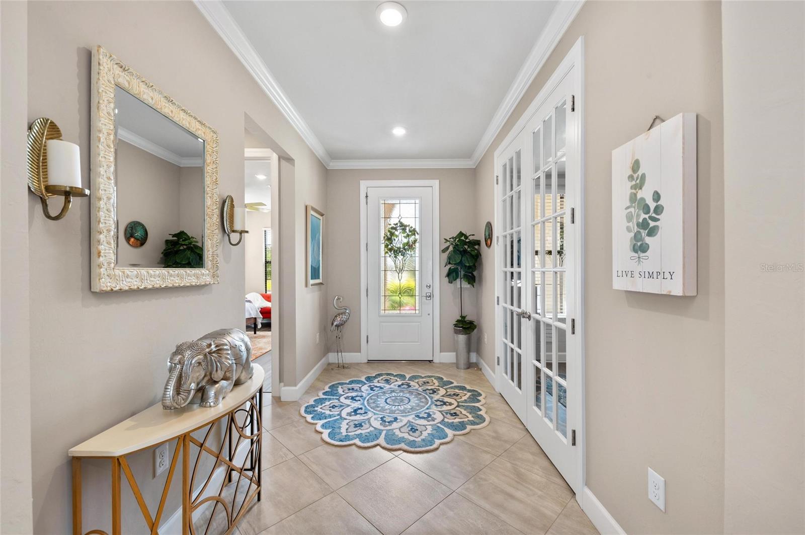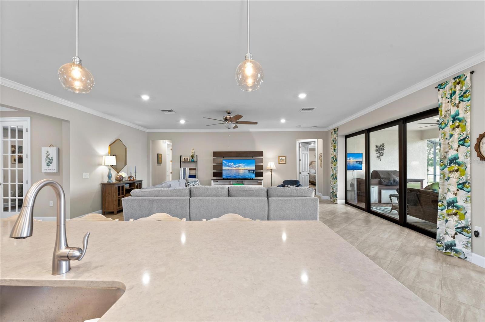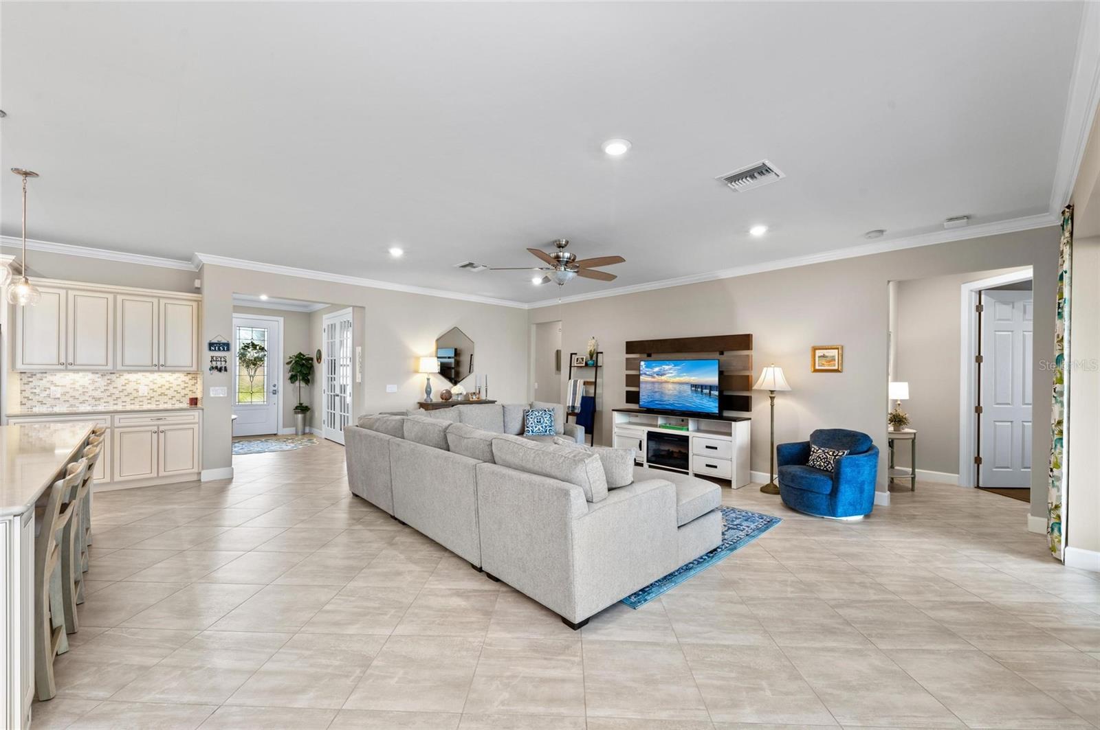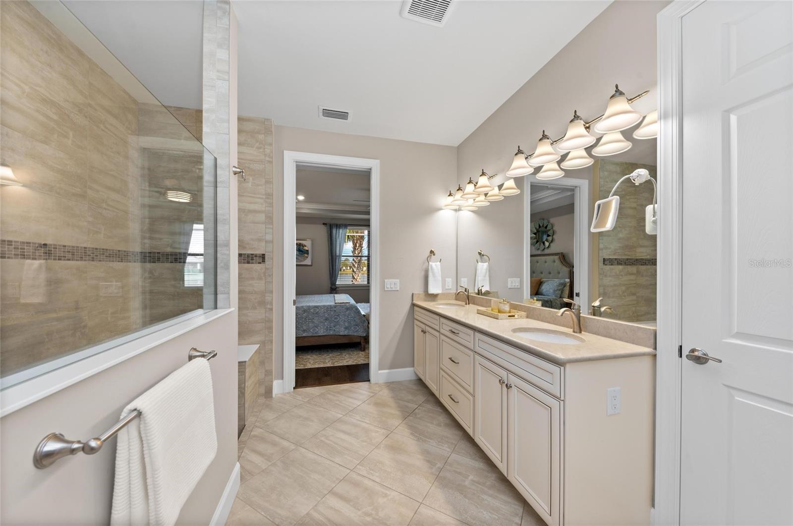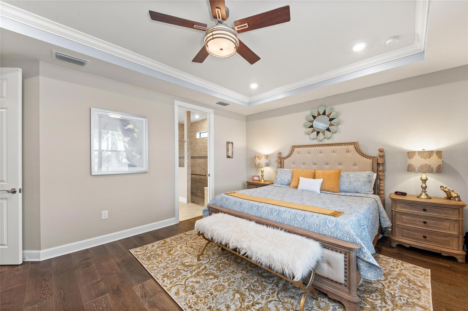 One or more photo(s) has been virtually staged. INTRODUCING THE PERFECT PINNACLE! Prepare to be captivated by this exceptional Estate Series PINNACLE MODEL, offering breathtaking water views and situated in the highly sought-after 55+ Del Webb community of Lakewood Ranch--the nation's #1 multi-generational expert-planned development. This exquisite residence delivers the ultimate in luxurious Florida living, blending timeless elegance with modern upgrades and everyday functionality. With 3 bedrooms, a versatile den, and a spacious open layout, this home is ideal for both entertaining and daily comfort. Designer touches are found throughout, including crown molding, 5 baseboards, tray ceiling in the owner's suite, gorgeous coffered ceiling in the den, designer fans, upgraded lighting fixtures, and hurricane impact glass for peace of mind. At the heart of the home, the gourmet kitchen inspires culinary creativity, featuring a massive island with seating for four, modern pendant lighting, 42" solid wood cabinetry, elegant quartz countertops, stylish backsplash, gas cooktop with upgraded hood, generous storage and prep space, and a custom pantry with built-ins. The home is finished with hard surface flooring throughout that includes a mix of light ceramic tile in the main living areas and rich wood plank flooring in the bedrooms and den, creating a sophisticated yet warm ambiance. For seamless entertaining, open the zero- corner sliding doors to the extended, covered lanai where you will find ample space for dining, lounging, and tranquil water views--the perfect backdrop for Florida evenings. The expansive owner's suite offers room for a cozy sitting area and a spa-inspired ensuite with dual vanities, large walk-in shower with a grab bar for safety, and an oversized custom walk-in closet with built-ins and abundant storage. Two additional guest bedrooms, including one with its own ensuite, custom closet, a versatile den with a coffered ceiling--ideal as a home office, gym, craft room, or library. Additional highlights include a 3-car garage built-in storage cabinets, upgraded laundry room with solid wood cabinetry, utility sink, extended screened lanai for ultimate outdoor living. Act quickly. Don't miss the chance to call this Pinnacle Model showpiece your own and experience luxury living at its finest. Schedule your private tour today!