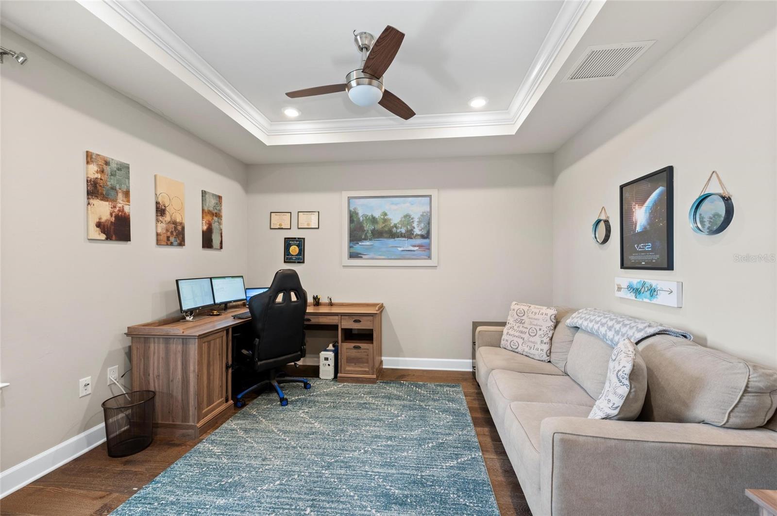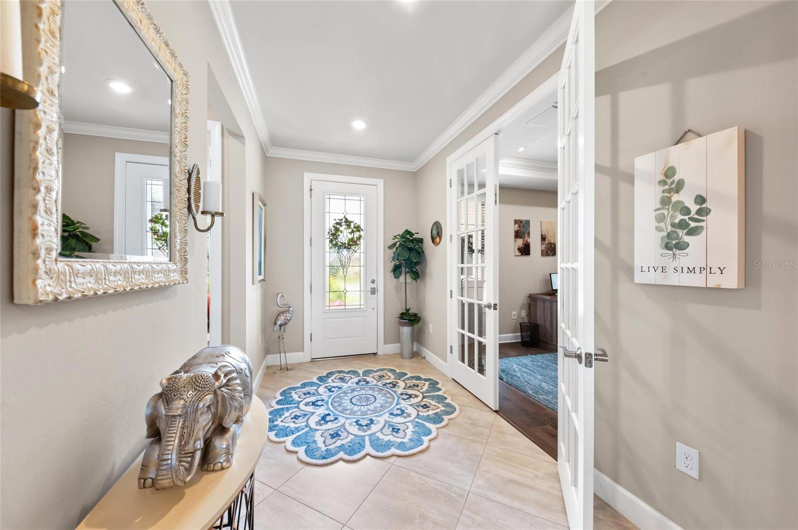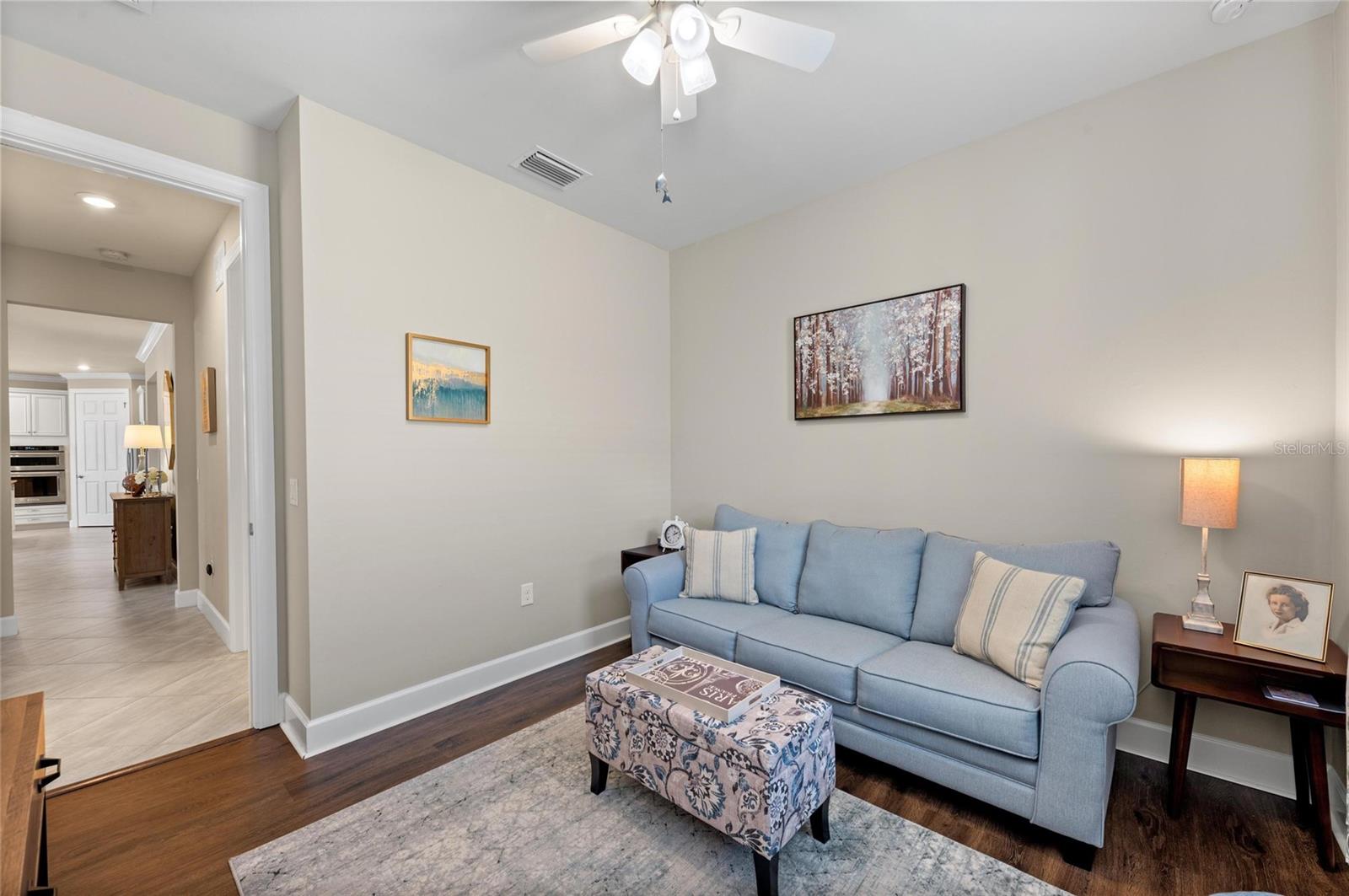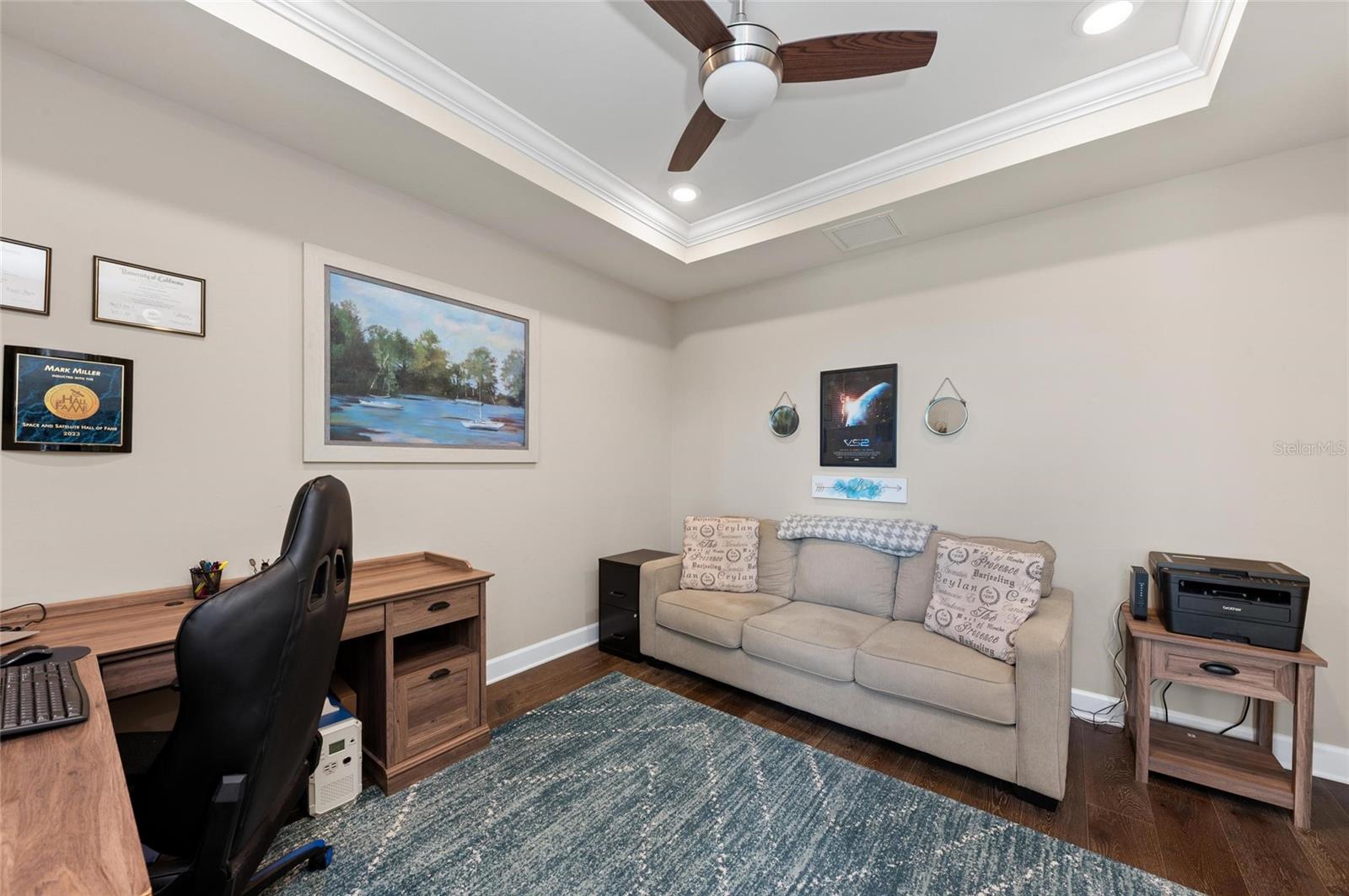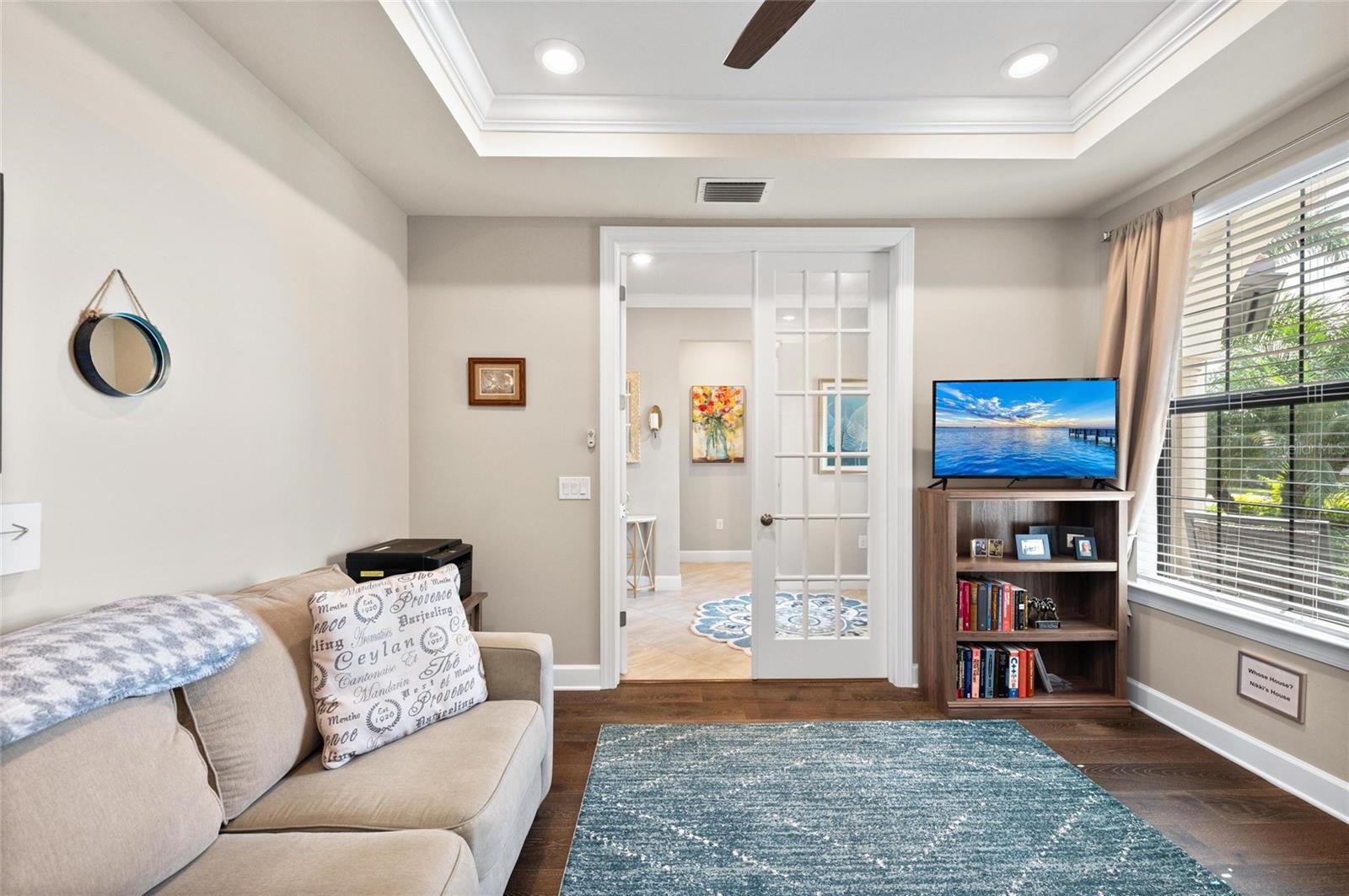 One or more photo(s) has been virtually staged. INTRODUCING THE PERFECT PINNACLE! Prepare to be captivated by this exceptional Estate Series PINNACLE MODEL, offering breathtaking water views and situated in the highly sought-after 55+ Del Webb community of Lakewood Ranch--the nation's #1 multi-generational expert-planned development. This exquisite residence delivers the ultimate in luxurious Florida living, blending timeless elegance with modern upgrades and everyday functionality. With 3 bedrooms, a versatile den, and a spacious open layout, this home is ideal for both entertaining and daily comfort. Designer touches are found throughout, including crown molding, 5 baseboards, tray ceiling in the owner's suite, gorgeous coffered ceiling in the den, designer fans, upgraded lighting fixtures, and hurricane impact glass for peace of mind. At the heart of the home, the gourmet kitchen inspires culinary creativity, featuring a massive island with seating for four, modern pendant lighting, 42" solid wood cabinetry, elegant quartz countertops, stylish backsplash, gas cooktop with upgraded hood, generous storage and prep space, and a custom pantry with built-ins. The home is finished with hard surface flooring throughout that includes a mix of light ceramic tile in the main living areas and rich wood plank flooring in the bedrooms and den, creating a sophisticated yet warm ambiance. For seamless entertaining, open the zero- corner sliding doors to the extended, covered lanai where you will find ample space for dining, lounging, and tranquil water views--the perfect backdrop for Florida evenings. The expansive owner's suite offers room for a cozy sitting area and a spa-inspired ensuite with dual vanities, large walk-in shower with a grab bar for safety, and an oversized custom walk-in closet with built-ins and abundant storage. Two additional guest bedrooms, including one with its own ensuite, custom closet, a versatile den with a coffered ceiling--ideal as a home office, gym, craft room, or library. Additional highlights include a 3-car garage built-in storage cabinets, upgraded laundry room with solid wood cabinetry, utility sink, extended screened lanai for ultimate outdoor living. Act quickly. Don't miss the chance to call this Pinnacle Model showpiece your own and experience luxury living at its finest. Schedule your private tour today!