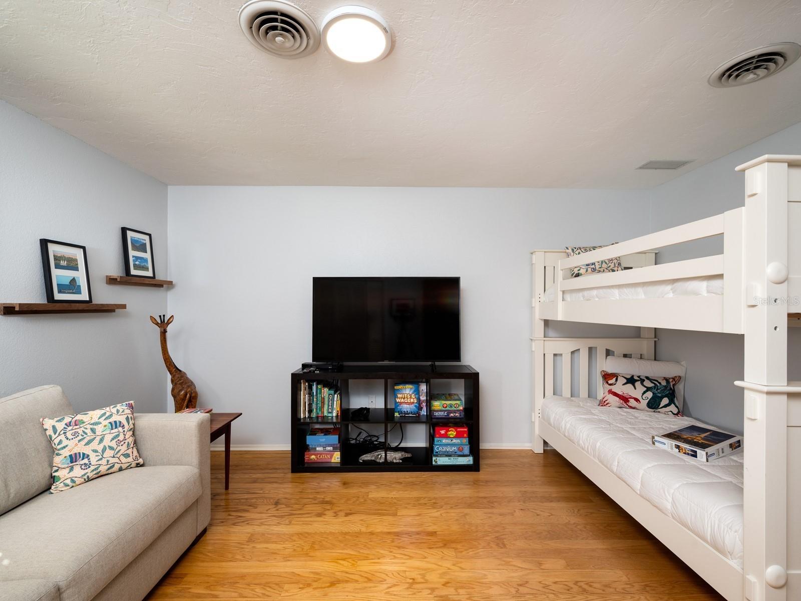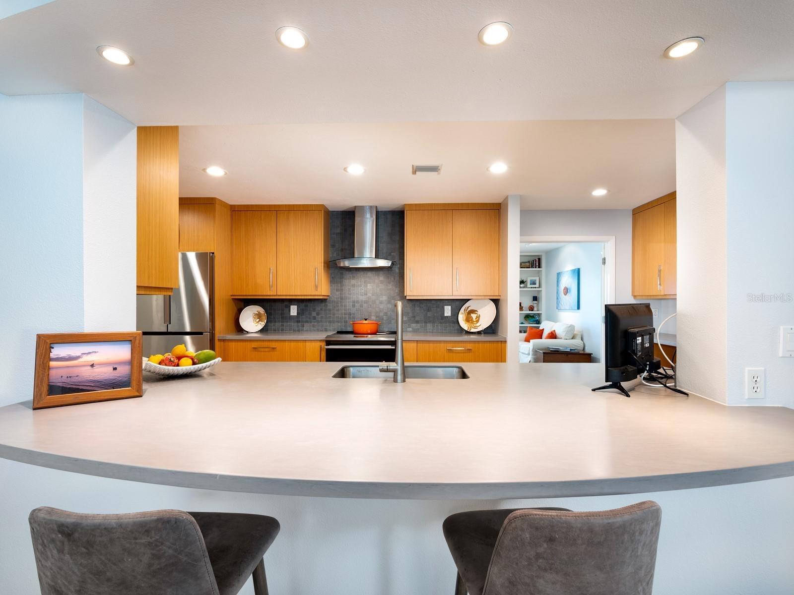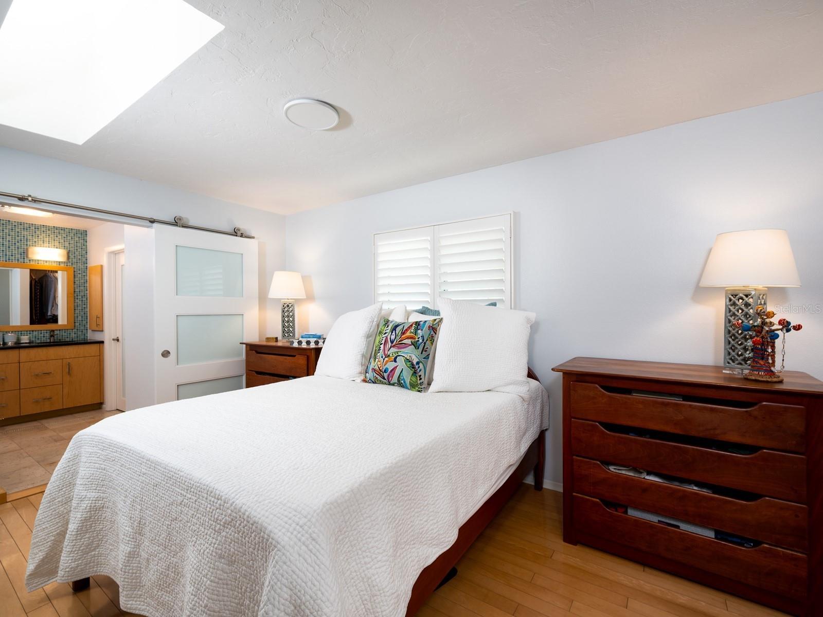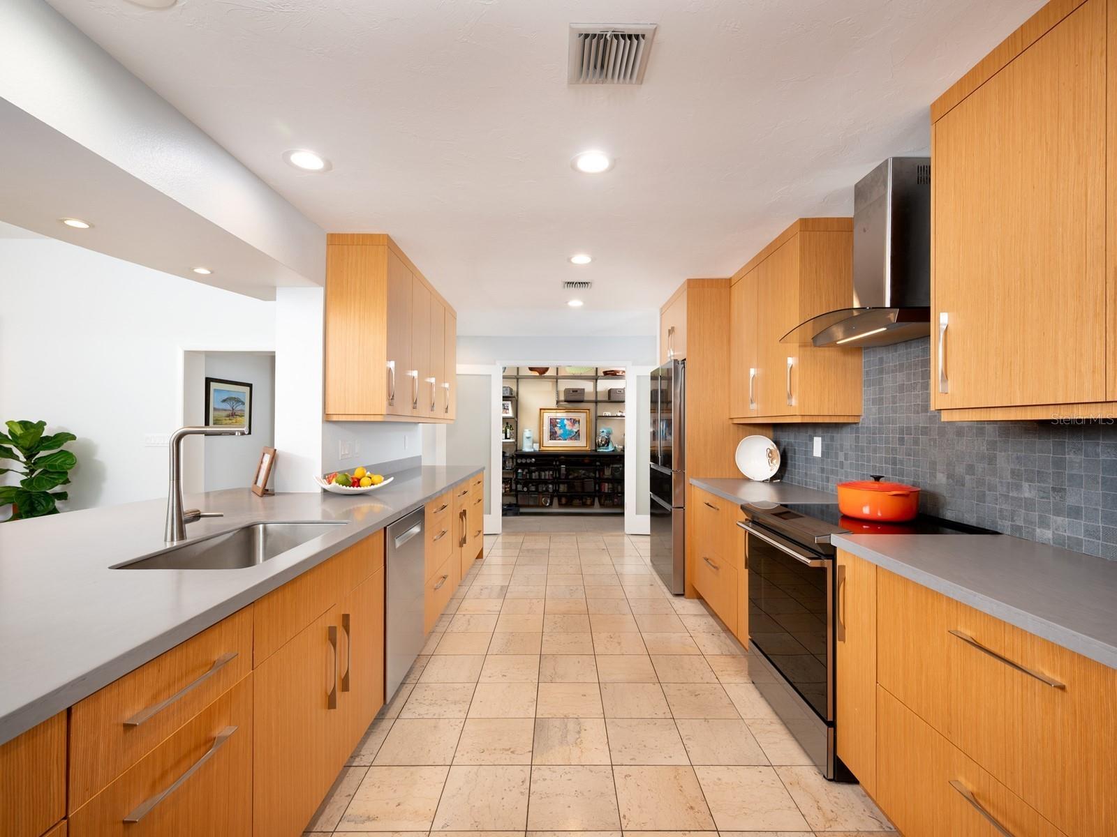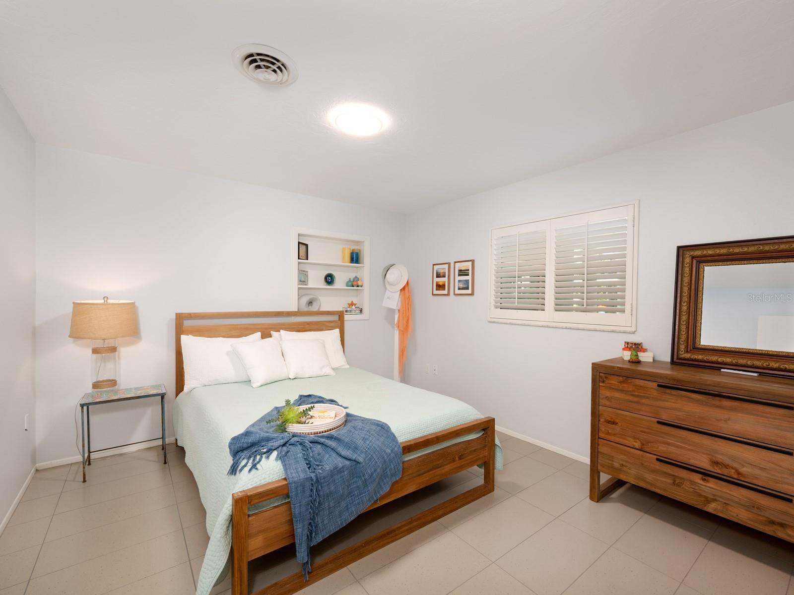 This stunning and spacious four-bedroom home has a den and features a captivating backyard oasis, ideal for relaxation and entertaining. It's just a short stroll away from the beach! Let the ocean breeze guide you to the shore, and you'll feel the warm sand beneath your toes in no time. After taking a moment to appreciate the curb appeal, you enter through the glass door into the foyer, which sets the tone for this remarkable home. The main living areas boast elegant, long-lasting, easy-care French Limestone flooring. While most of the bedrooms provide a warm, cozy ambiance with rich hardwood flooring. Numerous French doors throughout highlight the open and bright ambiance. A modern kitchen that impresses with its striking floor-to-ceiling cabinetry, exuding style. The lengthy Corian countertops create a culinary prep space that would make any chef envious. Additionally, there is a buffet area featuring built-in shelving and a planning center. The newer Bosch and GE stainless steel appliances remain. Nearby a remarkably large walk-in pantry awaits--a dream come true with its ingenious storage solutions. A trendy basin sink is beautifully oriented toward the breakfast bar, seamlessly connecting to the great room and enhancing the flow of the layout. In the dining and living areas, you are enveloped by spaciousness created by the soaring vaulted ceilings, a dramatic French Limestone fireplace, and clerestory windows. Three sets of French doors crowned by three clerestory windows overlook the impressive outdoor entertainment area. Experience a dream sanctuary, complete with an expansive vaulted cage pool that beckons you to unwind in the luxurious spa with a soothing spillover feature. Imagine entertaining in the nearly 600 square foot covered area, where laughter and joy flow as freely as the drinks from your nicely equipped summer kitchen. This is the ultimate haven for leisure and celebration, a paradise you won't want to leave! When it's time to recharge, the Primary Suite offers the privacy you desire. A sliding barn-style door opens to the renovated en suite bath with double walk-in closets, luxurious granite, elegant dual sinks, a French Limestone shower surround, and a private water closet. Adjacent is a den/study with stylish built-in cabinetry that enhances functionality and aesthetics. There is a guest wing with a bathroom and a bedroom featuring a Murphy bed, allowing flexible use. Two full bedrooms are located near a dual-function bathroom with a full and half bath with direct pool access. It is poised perfectly in a desirable area without association restrictions, with a side-yard patio, outbuilding storage, a 2-car garage, and a circular drive.