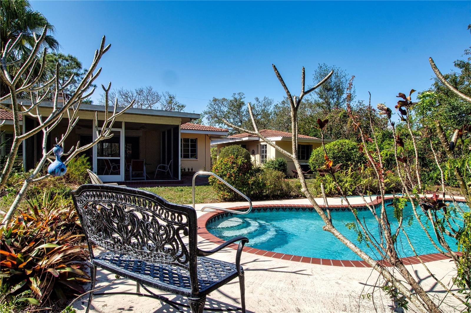 One or more photo(s) has been virtually staged. BACK ON THE MARKET! DON'T MISS THIS OPPORTUNITY! Welcome to Harbor Acres, one of the most beautiful and established communities in Sarasota! This charming, vintage Florida home and beautiful lot (15,000 sq. ft.) presents endless opportunities. Very few of these original 1950's Florida cottages remain! The integrity of the original design is still intact, including original floorplan and vintage baths. Outside, the gated courtyard extends from the front to the rear, opening onto an enchanting yard and pool, with mature landscaping and privacy. A large, screened lanai overlooking the pool and serene backyard offers the ideal private spot for relaxing and enjoying the beautiful setting. Perfect for the minimalist that treasures historic Florida and yet roomy enough for guests and entertaining. A.C. 2024. This home would be a true pleasure to restore! Need something larger? Plenty of room to add on, or design and build your perfect dream home! Harbor Acres is ideally located within a short stroll to the always lively Southside Village, including Morton's Market, a variety of wonderful restaurants and shopping. Minutes to downtown Sarasota, the bayfront, Sarasota Memorial, Selby Gardens and all of the Arts Sarasota is known for. St. Armands Circle, Lido and Siesta Key beaches are all within a 10 minute drive as well. Don't miss this great opportunity!Please note: Some water intrusion during Tropical Storm. Flooring has been replaced.