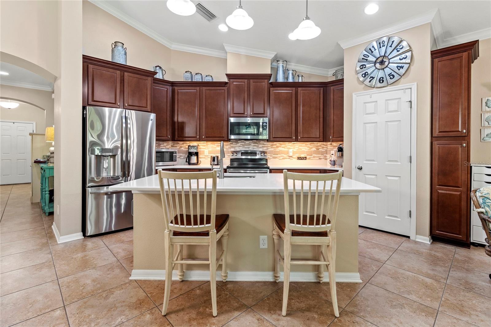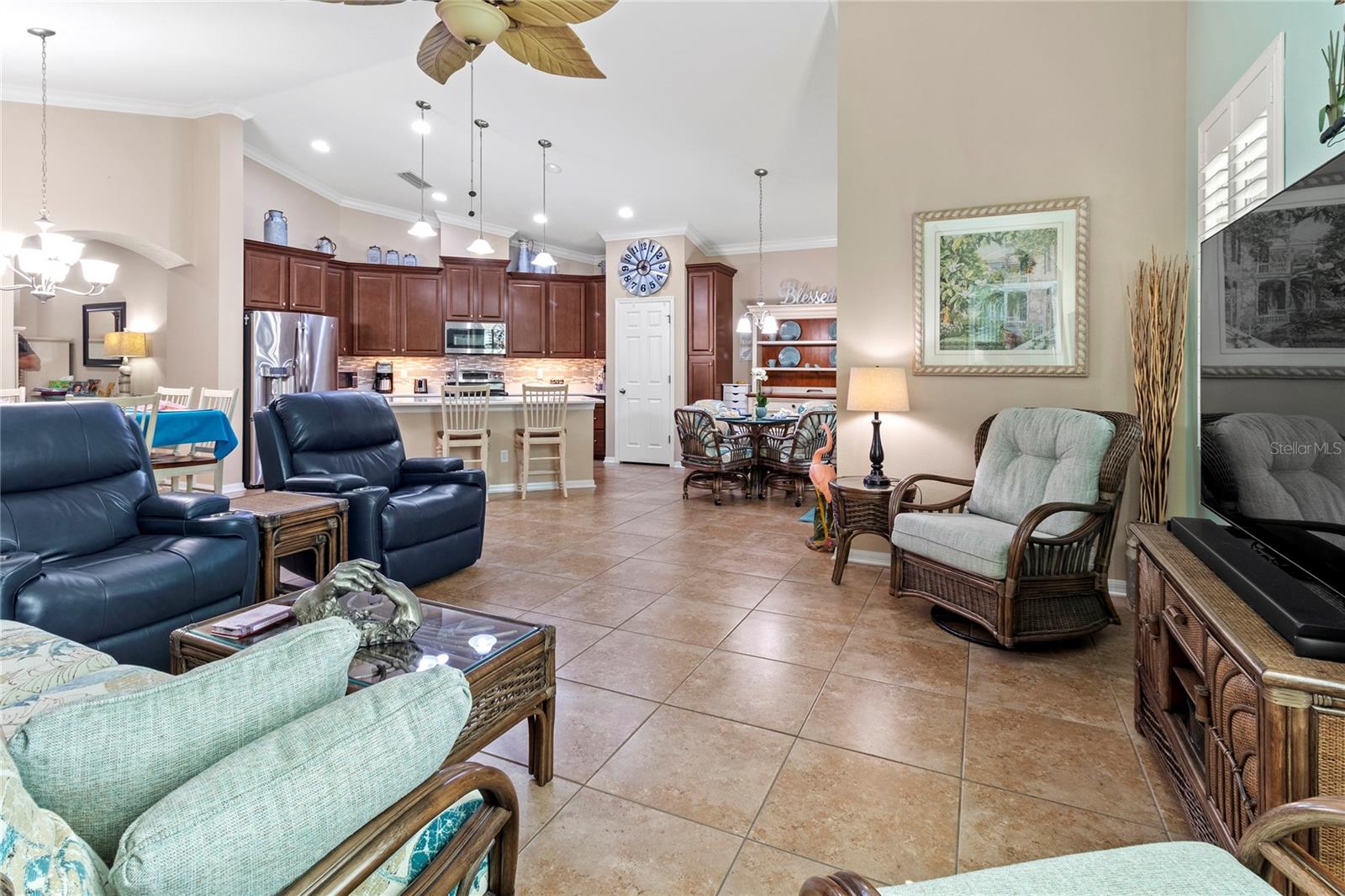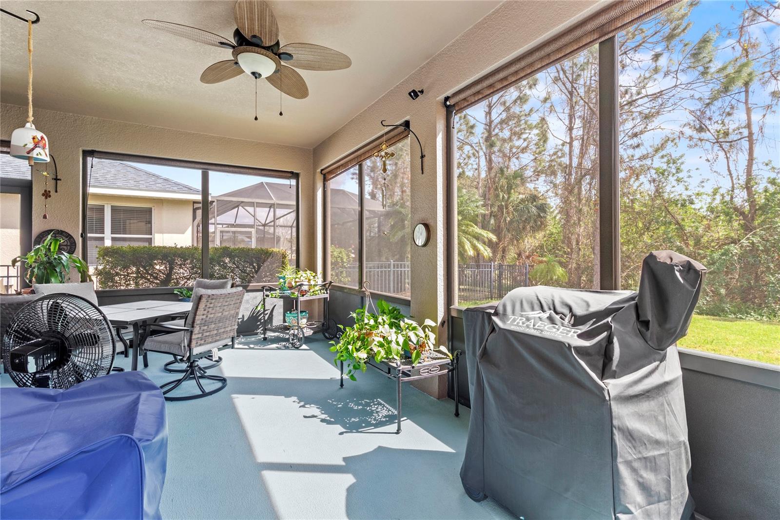 $5,000 PRICE REDUCTION! MOTIVATED SELLER! Welcome to this immaculate 3-bedroom, 2-bath home in the gated Creekside Preserve community--a residence that is truly "better than new" with a host of high-end updates throughout! New roof (2/2025) and new hot water heater (1/2025).Exterior & Curb Appeal: As you approach, you'll immediately notice the fresh exterior paint, beautifully landscaped grounds, enhanced by added lighting, decorative stones, curbing, pavers, and a widened driveway. The inviting front screened porch features a custom screen door along with 7 Blink security cameras and a Blink doorbell, ensuring both style and security.Interior Features: Step inside to a welcoming, wide foyer that flows into an open-concept great room. The spacious living area seamlessly connects with a large kitchen that boasts: Quartz countertops and a stylish tile backsplash, stainless steel appliances, including a double convection oven, slide-out shelving in the lower cabinets, and an expanded pantry. This thoughtfully designed layout, complete with a separate breakfast area, is perfect for hosting family and friends.Outdoor Living: Adjacent to the breakfast area, sliding glass doors open to a large covered screened porch equipped with custom roll-down shades. This versatile space leads to a paved patio overlooking a tranquil wooded conservation area, offering both privacy and beautiful natural views. Additional Upgrades: This home is filled with premium features, including: Tile flooring throughout, plantation shutters on all windows and sliders, crown molding, updated interior and exterior paint, additional outlets, ceiling fans, enhanced exterior lighting, updated laundry with added cabinets and sink, newer dishwasher, disposal, HVAC with ultraviolet light, rain gutters, steel hurricane shutters, in-wall pest control and security system wiring. This property is centrally located near two Publix locations, Ellenton Outlets, a variety of restaurants, and parks, this home offers convenient access to US-301 and I-75. Enjoy easy commutes to beautiful beaches, Sarasota, Tampa, and St. Petersburg.Don't miss the opportunity to make this meticulously updated home your own--where modern comforts meet exceptional style in a prime location.