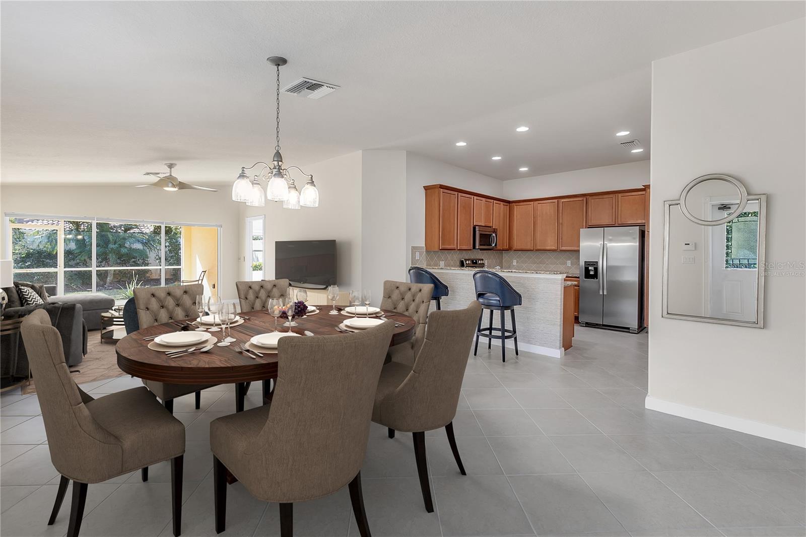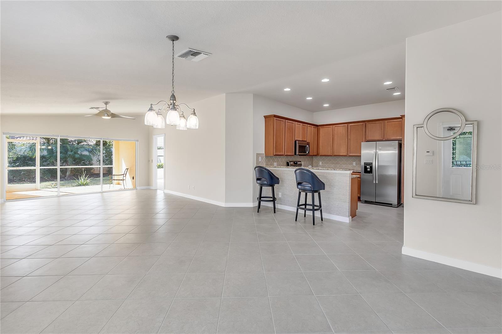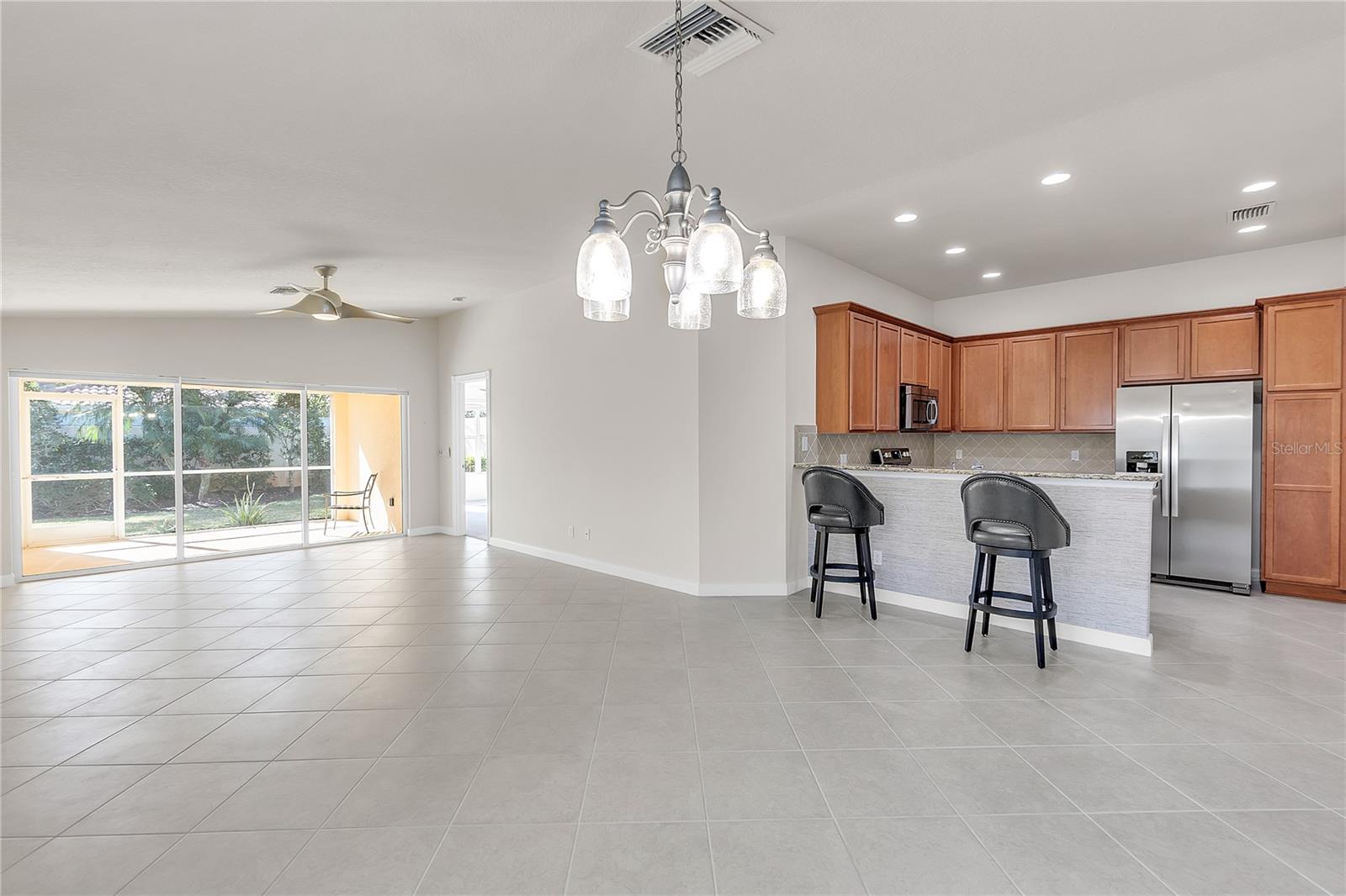 Best priced Villa on the Isles is your opportunity to escape to your own private oasis in the heart of Sarasota with this gorgeous Divosta-built Carrington villa. Nestled within the vibrant community of The Isles of Sarasota, this immaculate maintenance free home offers immediate occupancy and no hurricane damage, making it the perfect canvas for your dream life in the sun.Step inside and be greeted by a light, bright, and beautifully maintained interior, where every detail has been carefully considered. With soaring vaulted ceilings and a spacious living area laid with diagonal ceramic tile, this home is a true showpiece.The heart of the home is the stunning kitchen, complete with solid wood 40-inch cabinets, gleaming granite countertops, stainless steel appliances, and excellent lighting. Entertaining is a breeze with sliding glass doors opening from the great room to the screened lanai, creating an effortless indoor-outdoor flow.But it's the backyard that truly sets this home apart. Not overlooked, this private sanctuary is your own personal oasis, perfect for relaxing, entertaining, or simply enjoying the beautiful Florida weather. Lush landscaping and a spacious patio area create an inviting retreat that you'll never want to leave.Three bedrooms and two bathrooms offer plenty of space for family and guests. The third bedroom features French doors, making it ideal to be substituted for a den or office. Recent upgrades include new carpeting in all bedrooms, five ceiling fans, fresh paint in the interior and garage, modernized lighting in the dining room and bathrooms, and a new insert in the front door. Peace of mind is ensured with hurricane shutters and a recently pressure washed roof.Life in The Isles of Sarasota is a dream come true. This maintenance-free community offers a wealth of amenities, including a fitness center, heated resort-style pool, pickleball, four lighted tennis courts, bocce, a basketball court, a tot lot, and a clubhouse buzzing with social events and classes. With an onsite activities director, you'll enjoy a vibrant tennis and pickleball community, potluck dinners, trivia nights, murder mystery plays, happy hours, storytelling shows, bridge groups, yoga classes, water aerobics, and so much more!And the best part? Your new home is just moments away from all that Sarasota has to offer - from world-renowned beaches and cultural venues to shopping, dining, and the new Sarasota Memorial Hospital.This is more than just a home - it's a private retreat in the heart of it all. Don't let this incredible opportunity slip away - come and see for yourself, and get ready to fall in love with your new life in the sun!