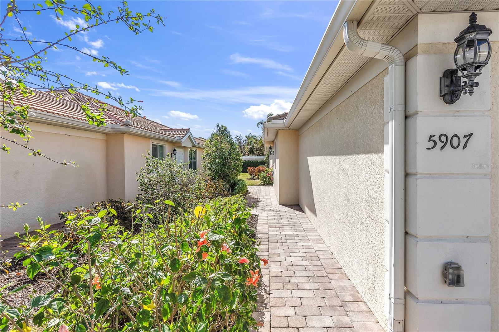 - Exterior: Garden, Hurricane Shutters, Lighting, Rain Gutters, Sidewalk, Sliding Doors