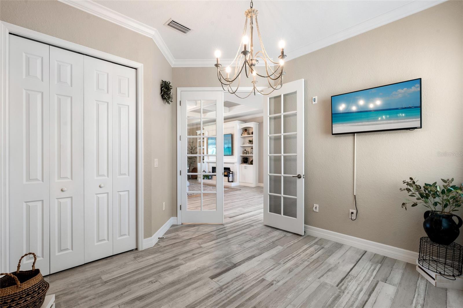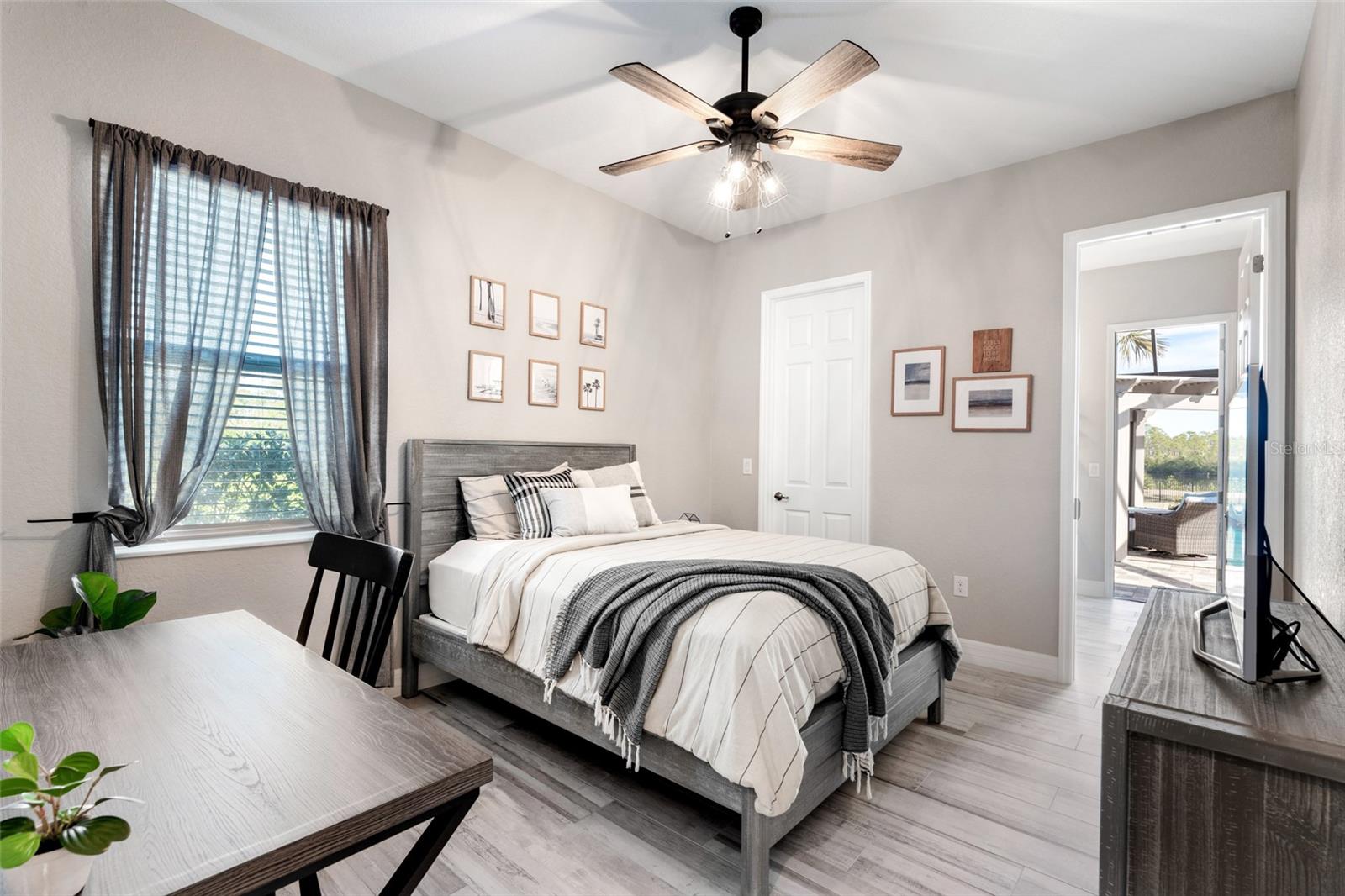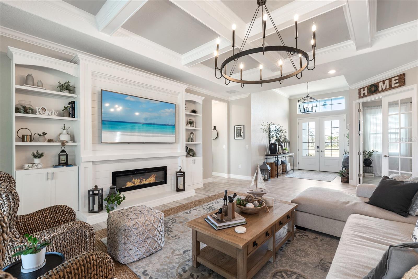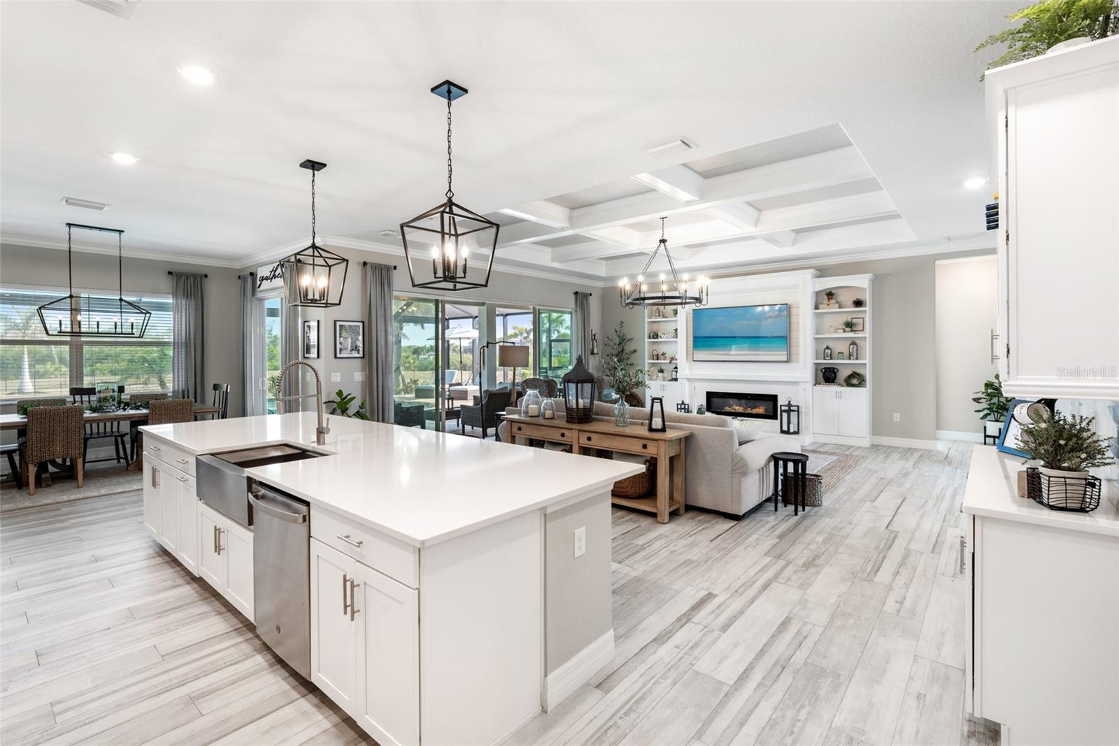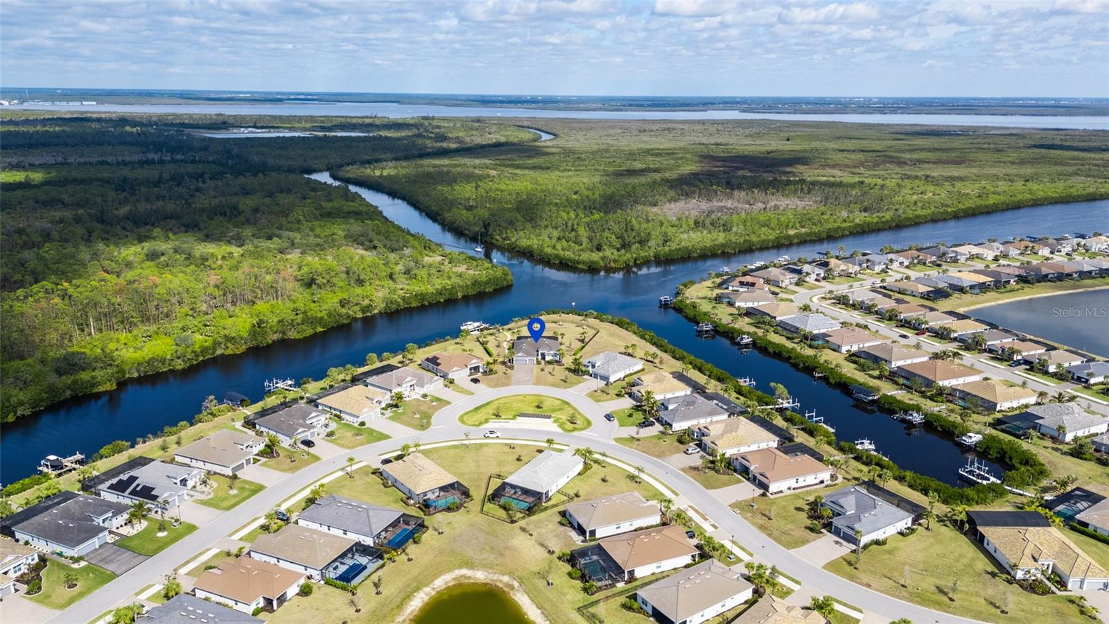 This home is a true gem in South Gulf Cove! Nestled on the largest lot in Harbor West, situated on over one acre, it has sailboat water access, making it a boater's paradise. Built in 2021, this unique Lennar built Sunset model is located in the exclusive, gated community of Harbor West, the only master-planned and gated community in South Gulf Cove. The home boasts a coastal design with 3 bedrooms, 3 bathrooms, and a den that can serve as a fourth bedroom. With 275 feet of water frontage, the property features a 90-foot extended paver walkway leading to a 14,000 lb boat lift and a maintenance-free composite dock. Inside, the formal foyer opens to a spacious living room with a custom-built entertainment center and electric fireplace. The kitchen is a chef's delight, with solid wood 42" cabinets, a built-in oven and microwave, an electric cooktop, a pot filler, a vented hood, and a farmhouse sink. The large center island with quartz countertops and bar seating connects to the breakfast nook with a picture window. The luxurious owner's suite includes tray ceilings, his and her walk-in closets, dual vanities, quartz counters, and an oversized tiled shower, with direct access to the lanai and pool area. The laundry room is equipped with wood cabinets, a utility sink, and sleek barn doors. Outdoor living is a dream with panoramic water views, a clear view lanai screen, a heated saltwater pool and spa, and a fully equipped outdoor kitchen and bar. The home is packed with upgrades, including shiplap, board & batten, barn doors, 8' interior doors, coffered ceilings, crown molding, and smart home readiness. Additional features include an irrigation system, security camera system, tile roof, outdoor paved fire pit, and aluminum pergola. Live the extraordinary coastal lifestyle in this gated community with access to over 55 miles of boatable waterways. Enjoy the privacy and fabulous Florida weather. Port Charlotte offers some of the best swimming, boating, kayaking, and fishing in Southwest Florida. Your tropical oasis awaits!