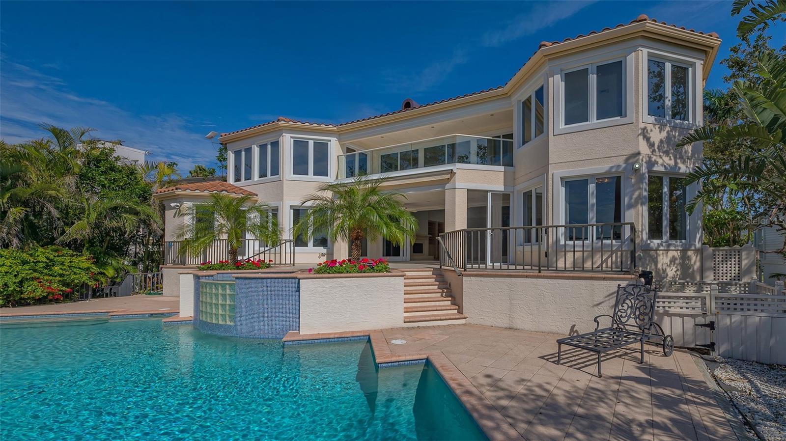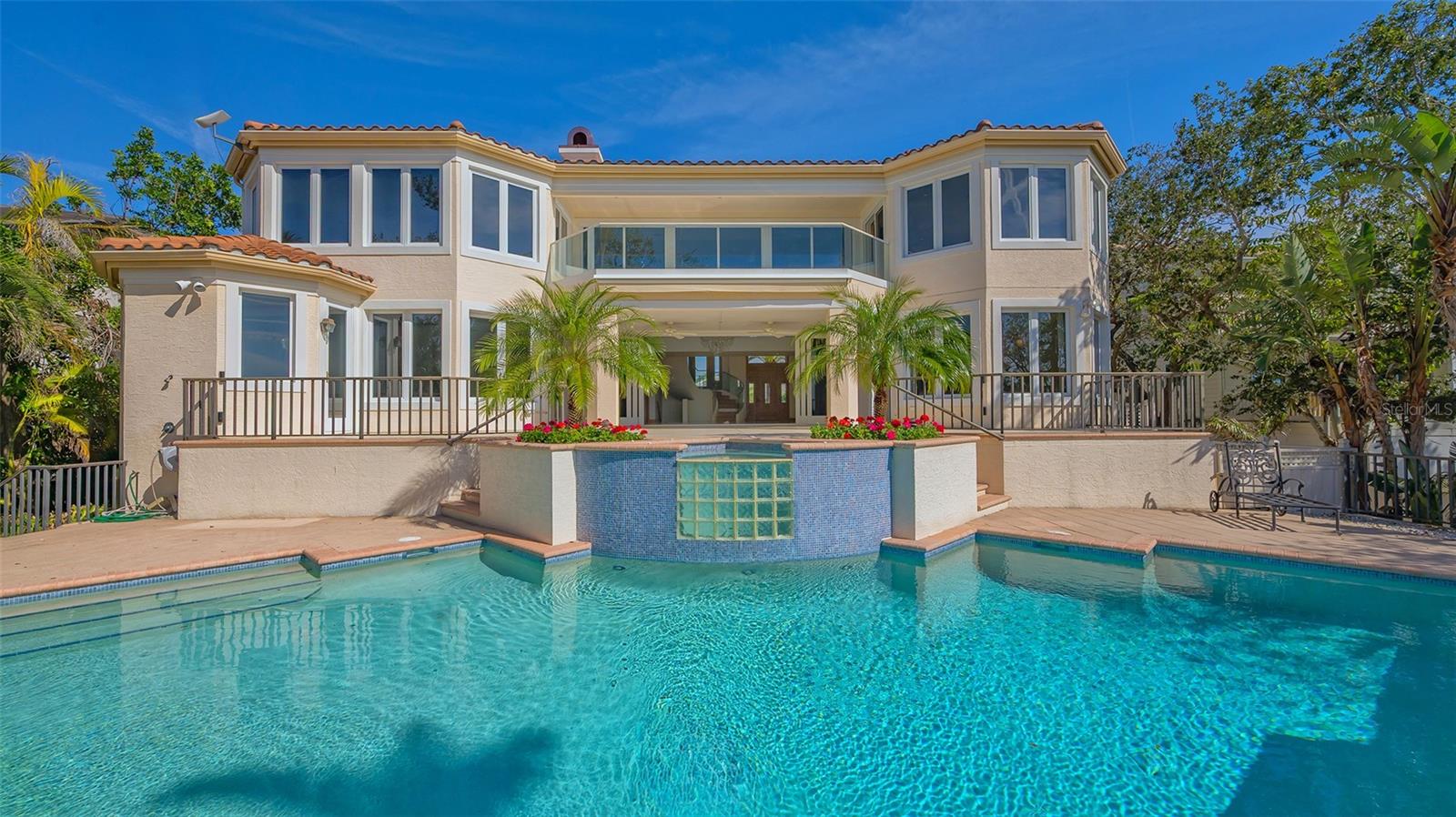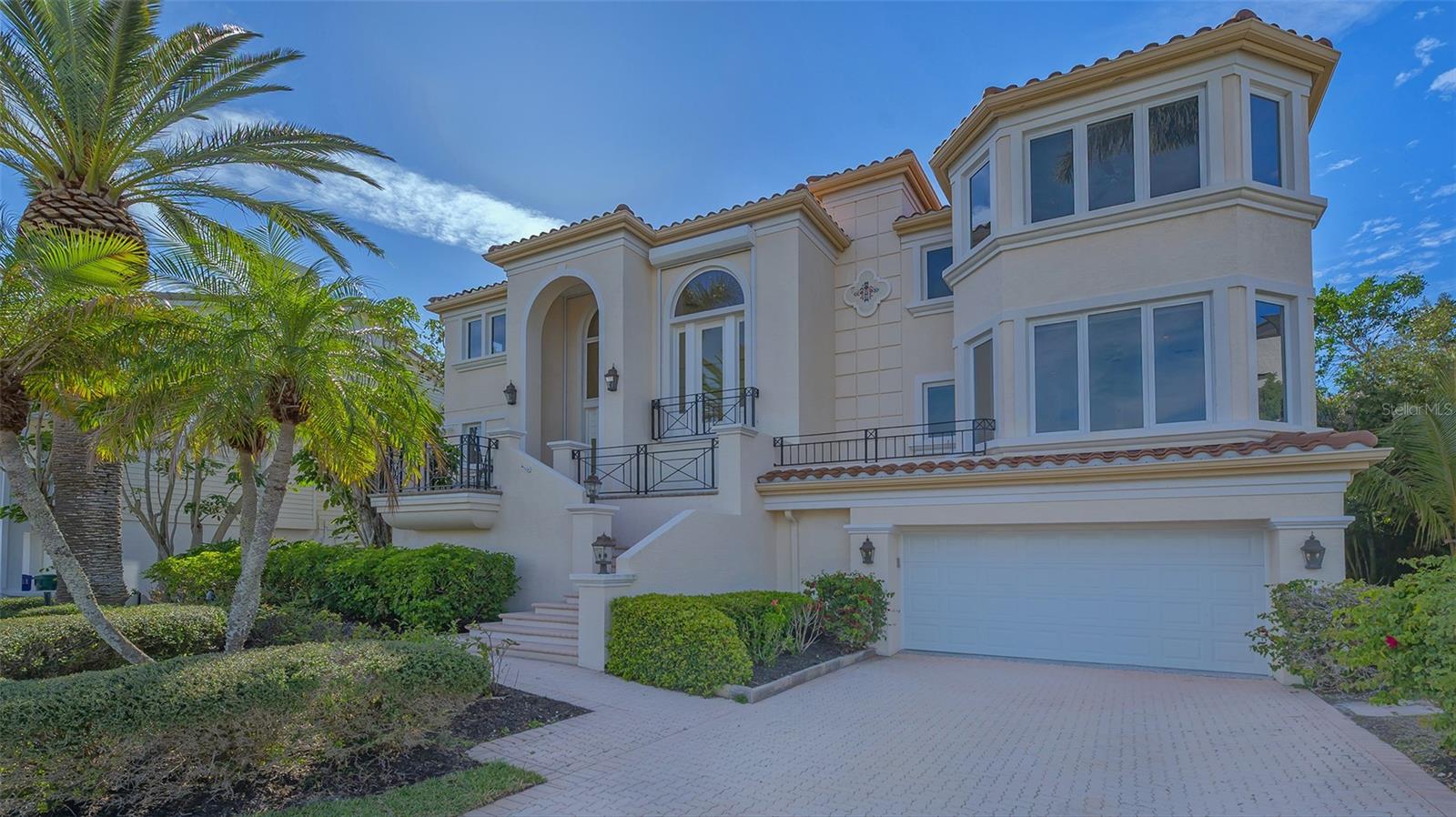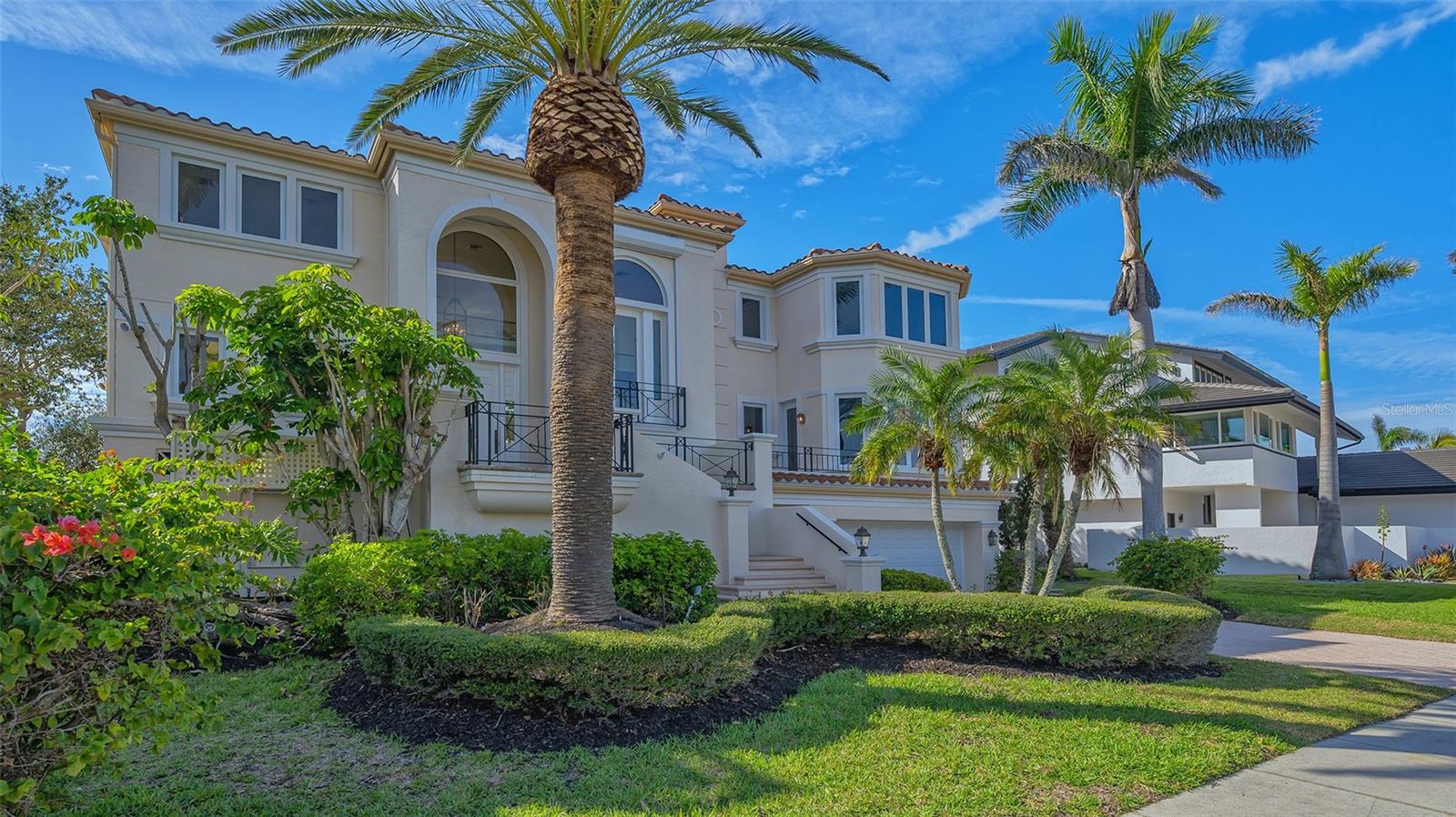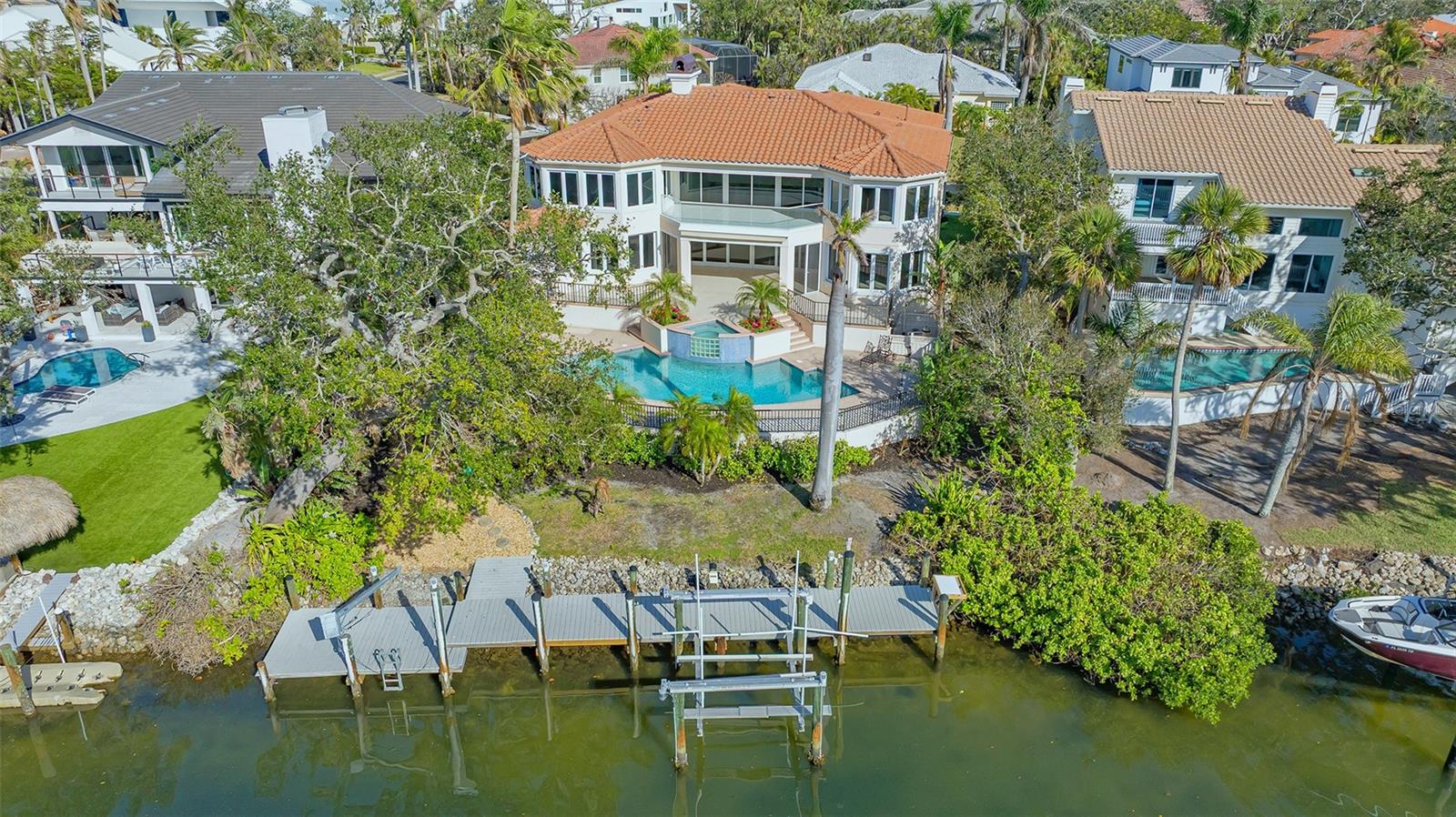 Welcome to the secure, double-gated Bay Isles Bayou community on Longboat Key. Set on an exclusive waterfront lot just two houses down from the open waters, this extraordinary estate boasts over 5,700 square feet of refined living space, capturing breathtaking west-facing views over Buttonwood and Cranes Bayou. Step inside to soaring 20-foot ceilings, a magnificent crystal chandelier, and an inviting formal great room adorned with custom built-ins and a stately fireplace--each detail reflecting the grandeur and grace of this one-of-a-kind residence. This home features four expansive bedrooms, four full baths, and two half baths, along with an updated hydraulic elevator for seamless access to every level. The heart of the home is this chef's kitchen that features quartz and granite countertops, exquisite European-style cabinetry, and top-of-the-line Wolf and commercial-grade appliances. A spacious center island with a prep sink provides ample workspace, while stunning water views elevate every culinary experience. The owner's suite is a true private retreat, offering separate baths and an astonishing 300+ square foot walk-in closet. A private staircase leads to the primary office, where walls of windows frame sweeping bayfront panoramas--an inspiring space for work or quiet reflection. A modern spiral staircase with glass railings leads to the second level, where two additional en-suite bedrooms and a sprawling den await. Added in a 2011 renovation, the den features floor-to-ceiling bayfront windows, a private half bath, and access to the upper-level sunset terrace--the ultimate sanctuary to soak in the Gulf's radiant hues. Designed for true indoor-outdoor living, the fully enclosed lanai features electric retractable screens, a spa-like pool with an elevated hot tub, and sweeping water views that are the perfect backdrop for sunset soirees.. Boating enthusiasts will delight in the oversized dock, equipped with a 10,000-lb boat lift and a 2,000-lb hoist for jet skis or other water toys, ensuring effortless access to Longboat Key's world-class waterways. Beyond its breathtaking beauty, this home offers peace of mind and lasting quality, with recent upgrades including a newer roof, all-impact windows and doors throughout, a whole-house automatic generator, all-new AC units, a private well for irrigation, and new hot water heaters--ensuring effortless luxury for years to come. As a Bay Isles resident, you'll enjoy exclusive access to the Bay Isles Beach Club, a private Gulf-front oasis. Nearby, the Longboat Key Club offers championship golf, award-winning tennis, a Gulfside pool deck, a state-of-the-art fitness center, spa services, and fine dining, along with a full-service marina for yachting enthusiasts. Stroll or bike to Publix, the public tennis center, town hall, the library, and local art shows at the Caron Family Pavilion. Just a short drive away, indulge in the luxury shopping and culinary delights of St. Armands Circle, the cultural energy of Downtown Sarasota, and the convenience of Sarasota International Airport. This grand waterfront residence offers an unrivaled price per square foot--a rare opportunity in this highly coveted enclave. While a discerning buyer may wish to personalize some cosmetic details, the most critical and costly updates have already been addressed, ensuring seamless, stress-free luxury living. Here, at the water's edge, coastal dreams come to life. This is more than a home--it's a lifestyle.