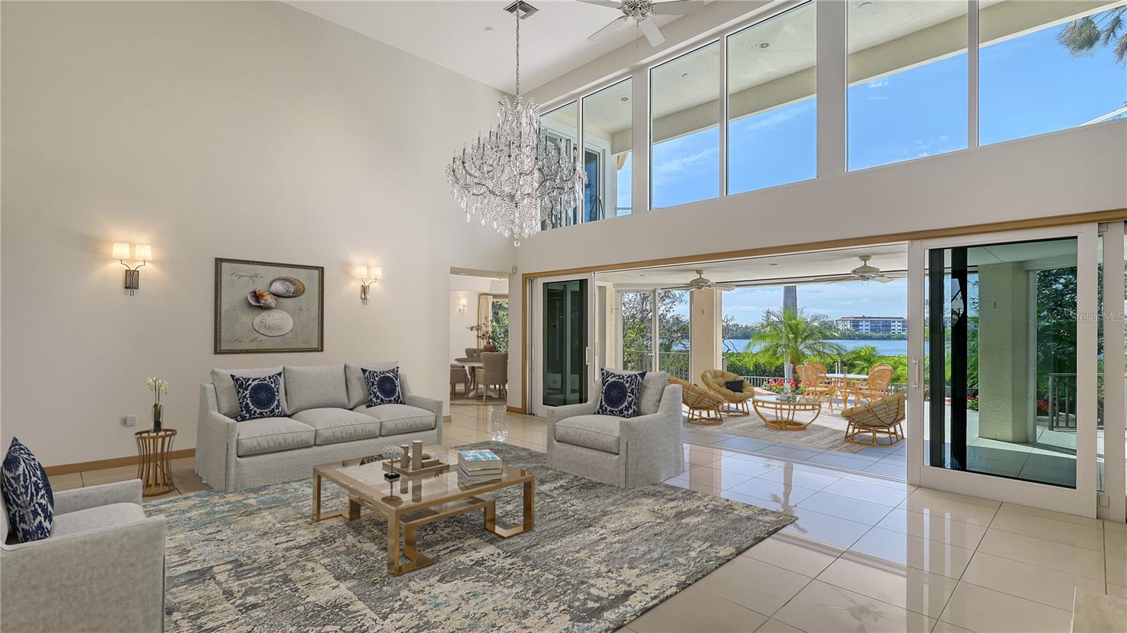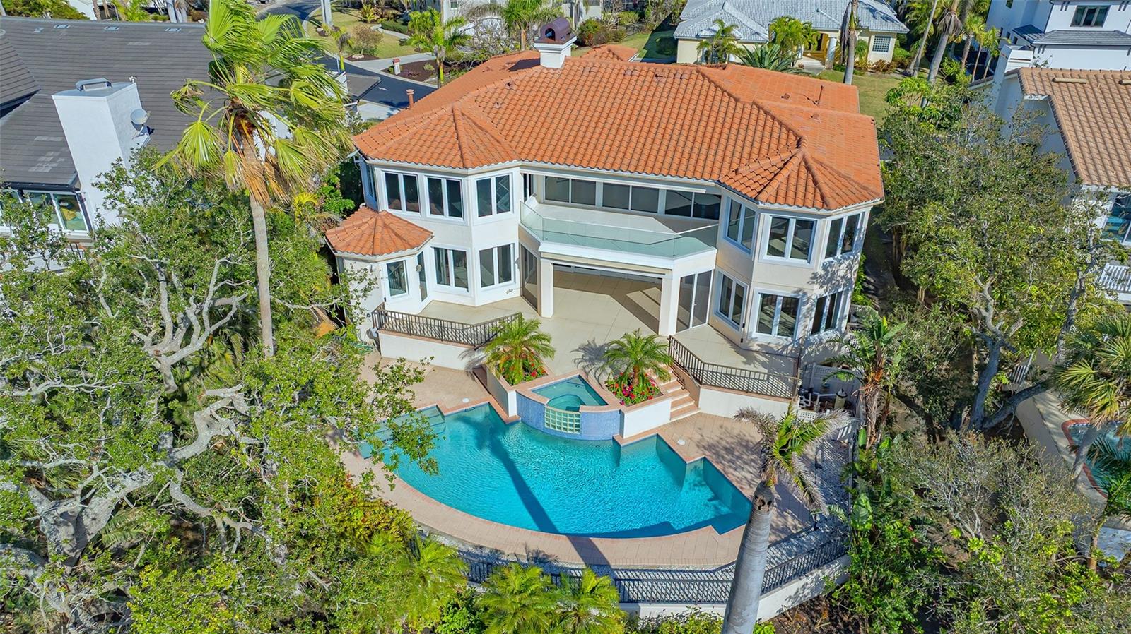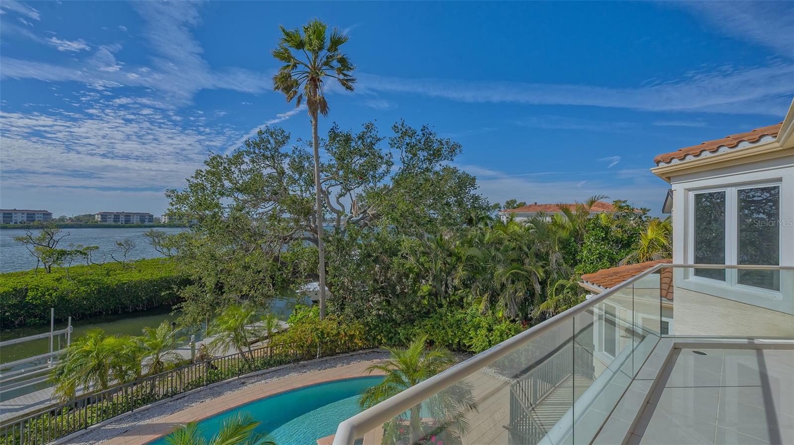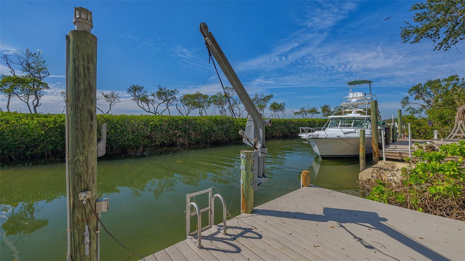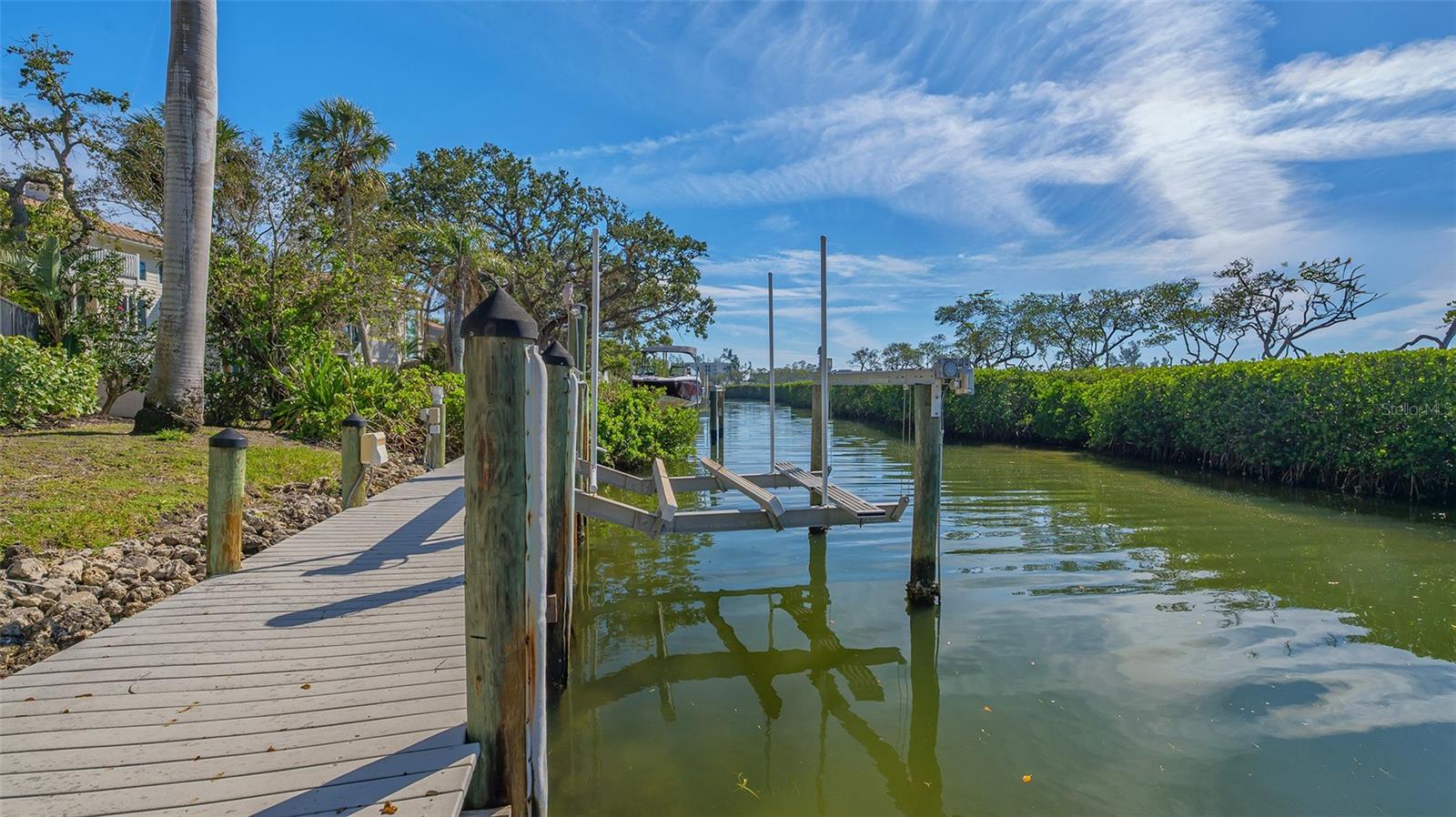 Welcome to the secure, double-gated Bay Isles Bayou community on Longboat Key. Set on an exclusive waterfront lot just two houses down from the open waters, this extraordinary estate boasts over 5,700 square feet of refined living space, capturing breathtaking west-facing views over Buttonwood and Cranes Bayou. Step inside to soaring 20-foot ceilings, a magnificent crystal chandelier, and an inviting formal great room adorned with custom built-ins and a stately fireplace--each detail reflecting the grandeur and grace of this one-of-a-kind residence. This home features four expansive bedrooms, four full baths, and two half baths, along with an updated hydraulic elevator for seamless access to every level. The heart of the home is this chef's kitchen that features quartz and granite countertops, exquisite European-style cabinetry, and top-of-the-line Wolf and commercial-grade appliances. A spacious center island with a prep sink provides ample workspace, while stunning water views elevate every culinary experience. The owner's suite is a true private retreat, offering separate baths and an astonishing 300+ square foot walk-in closet. A private staircase leads to the primary office, where walls of windows frame sweeping bayfront panoramas--an inspiring space for work or quiet reflection. A modern spiral staircase with glass railings leads to the second level, where two additional en-suite bedrooms and a sprawling den await. Added in a 2011 renovation, the den features floor-to-ceiling bayfront windows, a private half bath, and access to the upper-level sunset terrace--the ultimate sanctuary to soak in the Gulf's radiant hues. Designed for true indoor-outdoor living, the fully enclosed lanai features electric retractable screens, a spa-like pool with an elevated hot tub, and sweeping water views that are the perfect backdrop for sunset soirees.. Boating enthusiasts will delight in the oversized dock, equipped with a 10,000-lb boat lift and a 2,000-lb hoist for jet skis or other water toys, ensuring effortless access to Longboat Key's world-class waterways. Beyond its breathtaking beauty, this home offers peace of mind and lasting quality, with recent upgrades including a newer roof, all-impact windows and doors throughout, a whole-house automatic generator, all-new AC units, a private well for irrigation, and new hot water heaters--ensuring effortless luxury for years to come. As a Bay Isles resident, you'll enjoy exclusive access to the Bay Isles Beach Club, a private Gulf-front oasis. Nearby, the Longboat Key Club offers championship golf, award-winning tennis, a Gulfside pool deck, a state-of-the-art fitness center, spa services, and fine dining, along with a full-service marina for yachting enthusiasts. Stroll or bike to Publix, the public tennis center, town hall, the library, and local art shows at the Caron Family Pavilion. Just a short drive away, indulge in the luxury shopping and culinary delights of St. Armands Circle, the cultural energy of Downtown Sarasota, and the convenience of Sarasota International Airport. This grand waterfront residence offers an unrivaled price per square foot--a rare opportunity in this highly coveted enclave. While a discerning buyer may wish to personalize some cosmetic details, the most critical and costly updates have already been addressed, ensuring seamless, stress-free luxury living. Here, at the water's edge, coastal dreams come to life. This is more than a home--it's a lifestyle.
