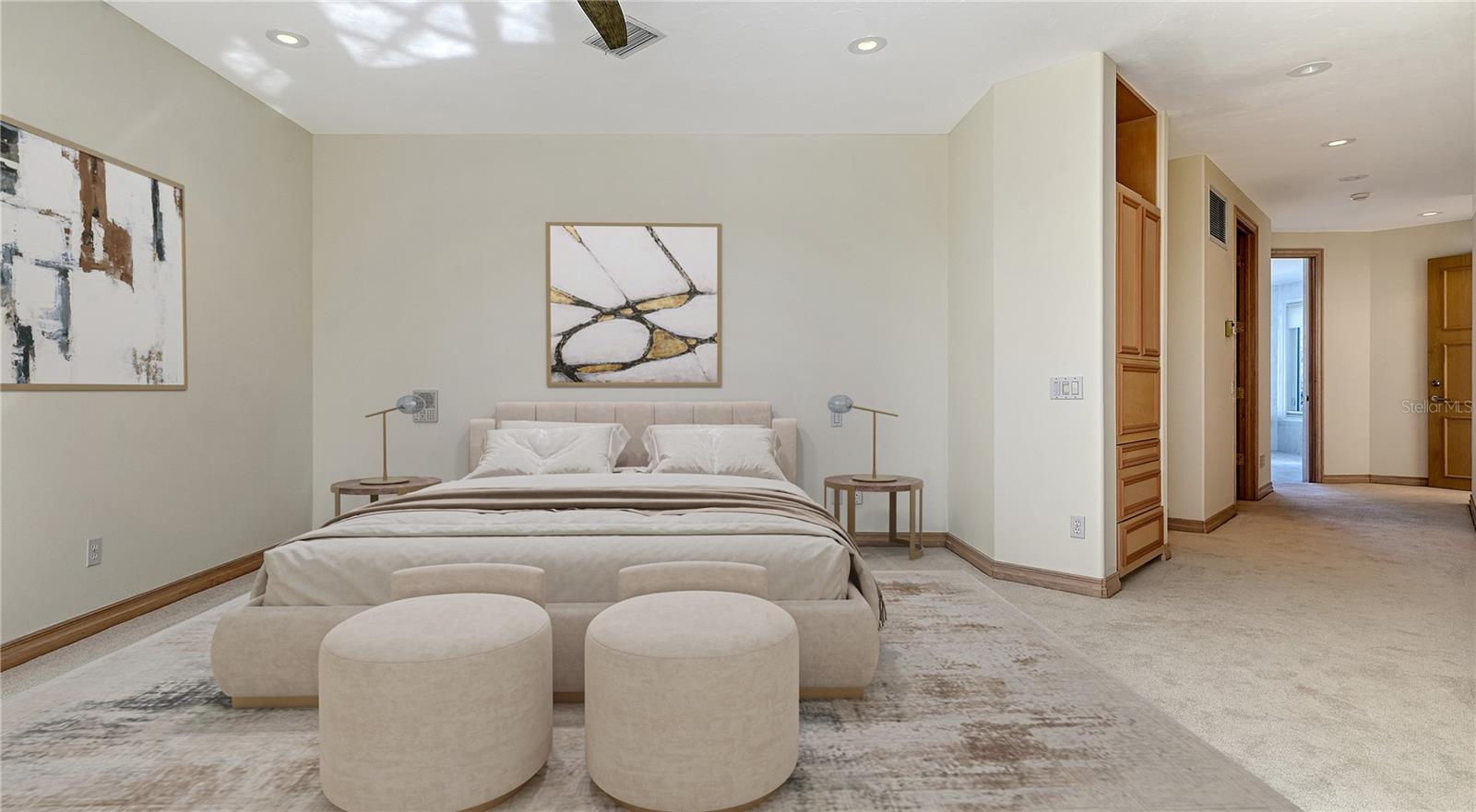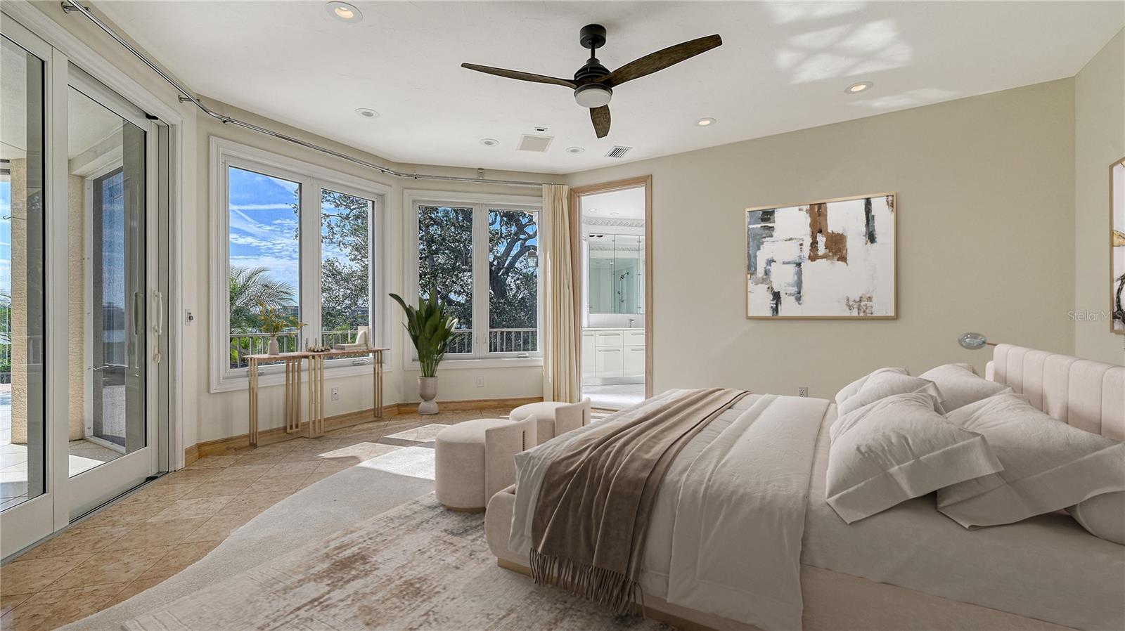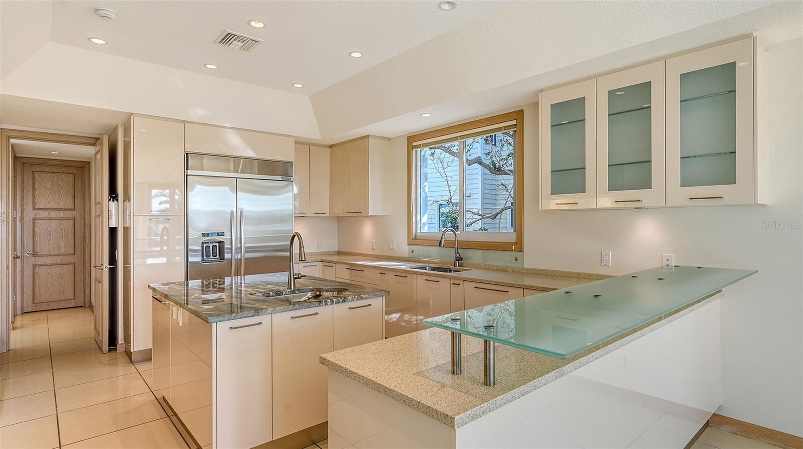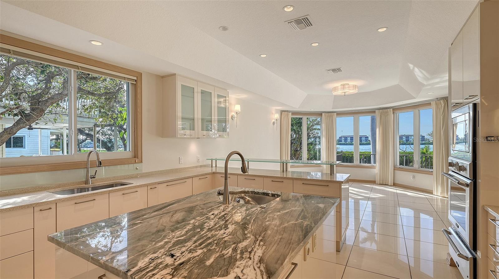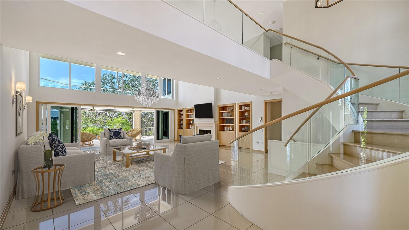 Welcome to the secure, double-gated Bay Isles Bayou community on Longboat Key. Set on an exclusive waterfront lot just two houses down from the open waters, this extraordinary estate boasts over 5,700 square feet of refined living space, capturing breathtaking west-facing views over Buttonwood and Cranes Bayou. Step inside to soaring 20-foot ceilings, a magnificent crystal chandelier, and an inviting formal great room adorned with custom built-ins and a stately fireplace--each detail reflecting the grandeur and grace of this one-of-a-kind residence. This home features four expansive bedrooms, four full baths, and two half baths, along with an updated hydraulic elevator for seamless access to every level. The heart of the home is this chef's kitchen that features quartz and granite countertops, exquisite European-style cabinetry, and top-of-the-line Wolf and commercial-grade appliances. A spacious center island with a prep sink provides ample workspace, while stunning water views elevate every culinary experience. The owner's suite is a true private retreat, offering separate baths and an astonishing 300+ square foot walk-in closet. A private staircase leads to the primary office, where walls of windows frame sweeping bayfront panoramas--an inspiring space for work or quiet reflection. A modern spiral staircase with glass railings leads to the second level, where two additional en-suite bedrooms and a sprawling den await. Added in a 2011 renovation, the den features floor-to-ceiling bayfront windows, a private half bath, and access to the upper-level sunset terrace--the ultimate sanctuary to soak in the Gulf's radiant hues. Designed for true indoor-outdoor living, the fully enclosed lanai features electric retractable screens, a spa-like pool with an elevated hot tub, and sweeping water views that are the perfect backdrop for sunset soirees.. Boating enthusiasts will delight in the oversized dock, equipped with a 10,000-lb boat lift and a 2,000-lb hoist for jet skis or other water toys, ensuring effortless access to Longboat Key's world-class waterways. Beyond its breathtaking beauty, this home offers peace of mind and lasting quality, with recent upgrades including a newer roof, all-impact windows and doors throughout, a whole-house automatic generator, all-new AC units, a private well for irrigation, and new hot water heaters--ensuring effortless luxury for years to come. As a Bay Isles resident, you'll enjoy exclusive access to the Bay Isles Beach Club, a private Gulf-front oasis. Nearby, the Longboat Key Club offers championship golf, award-winning tennis, a Gulfside pool deck, a state-of-the-art fitness center, spa services, and fine dining, along with a full-service marina for yachting enthusiasts. Stroll or bike to Publix, the public tennis center, town hall, the library, and local art shows at the Caron Family Pavilion. Just a short drive away, indulge in the luxury shopping and culinary delights of St. Armands Circle, the cultural energy of Downtown Sarasota, and the convenience of Sarasota International Airport. This grand waterfront residence offers an unrivaled price per square foot--a rare opportunity in this highly coveted enclave. While a discerning buyer may wish to personalize some cosmetic details, the most critical and costly updates have already been addressed, ensuring seamless, stress-free luxury living. Here, at the water's edge, coastal dreams come to life. This is more than a home--it's a lifestyle.