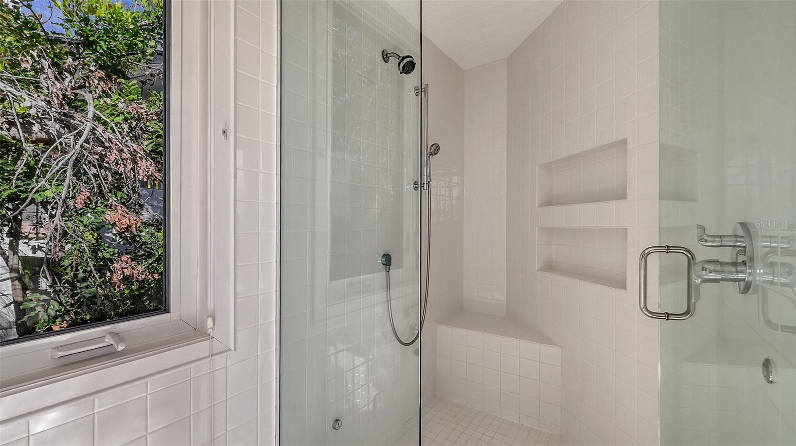 - Exterior: Awning(s), Balcony, Courtyard, Hurricane Shutters, Lighting, Outdoor Shower, Private Mailbox, Rain Gutters, Sidewalk, Sliding Doors, Storage