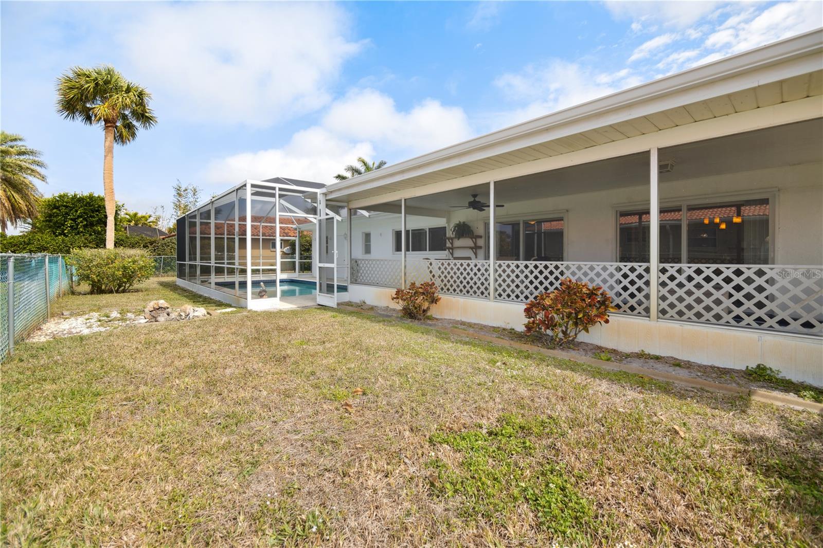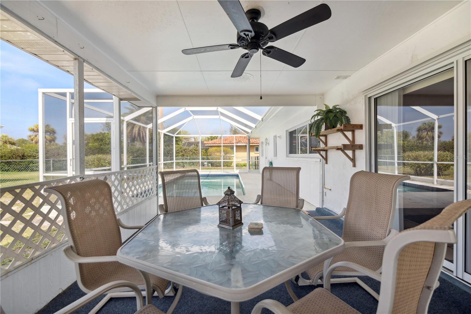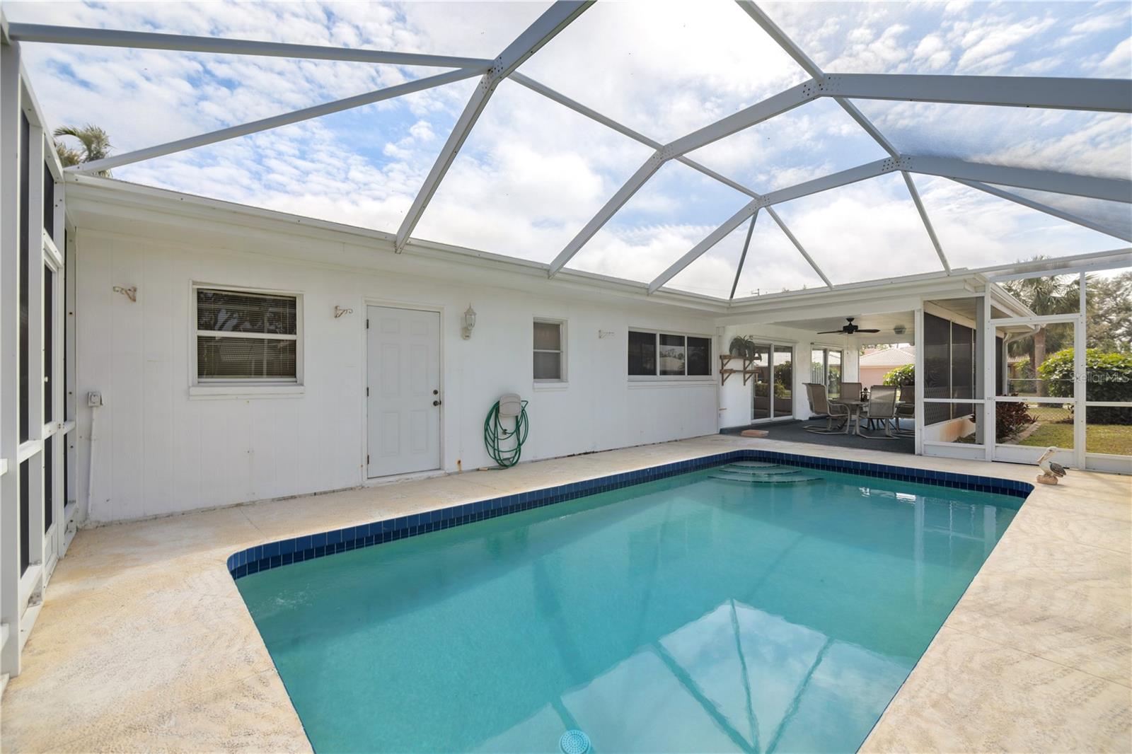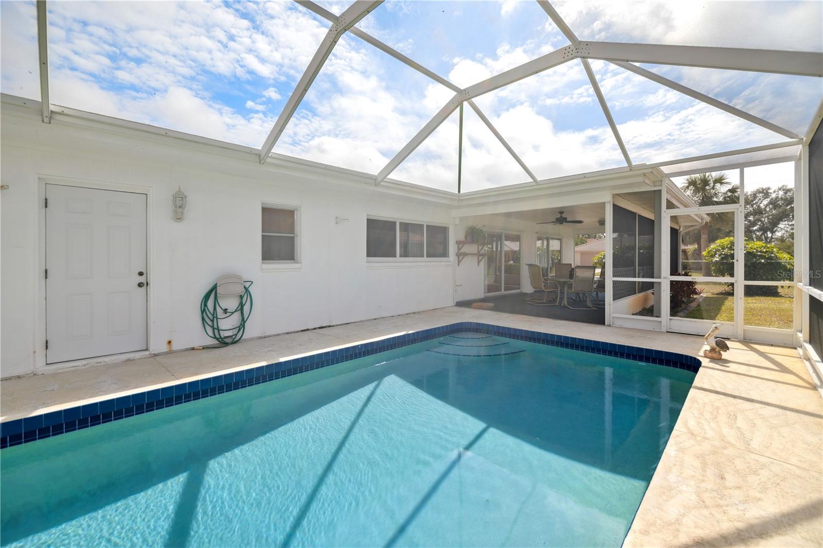 $111,000 PRICE DROP! MOTIVATED SELLERS! NEVER FLOODED, unlike some of the cheap fix and flips you see on the market today! Welcome to this dated, but move in ready 3-bedroom, 3-bathroom POOL HOME located in the desirable Sorento East neighborhood. The 234 sqft screened FRONT PORCH FACES EAST and the screened in back porch with POOL FACES WEST, allowing for beautiful sunrise and sunset views. NEW HVAC in 2021, New Concrete TILE ROOF in 2002 & FLAT ROOF REPLACED in 2014, NEW GARAGE DOOR in 2012, The POOL has been RESURFACED, Two HURRICANE IMPACT WINDOWS and two newer SLIDING GLASS DOORS on the back of the home. Situated on a CORNER LOT, this home boasts tasteful landscaping with lush palm trees and a SPRINKLER SYSTEM ensures the landscaping stays vibrant year-round. Step inside to find a spacious formal living room and dining room, perfect for entertaining guests. The kitchen features an additional eating space, ideal for casual meals, while the bonus room or second living room, conveniently located through a passthrough window, offers plenty of room to relax or create your own unique space. One of the guest bedrooms offers the perfect opportunity for an IN-LAW SUITE, complete with its own private entrance from the garage for added privacy and convenience. The primary bedroom offers a walk-in closet and the bathroom offers a shower with a tub. The expansive front and back porches are perfect for enjoying the warm Florida weather. The barrel tile roof adds to the property's durability and timeless elegance and for added peace of mind, the garage is equipped with HURRICANE SHUTTERS. This home is a true gem in Nokomis, offering comfort, convenience, and a welcoming atmosphere for family and friends. Don't miss out on this wonderful opportunity!