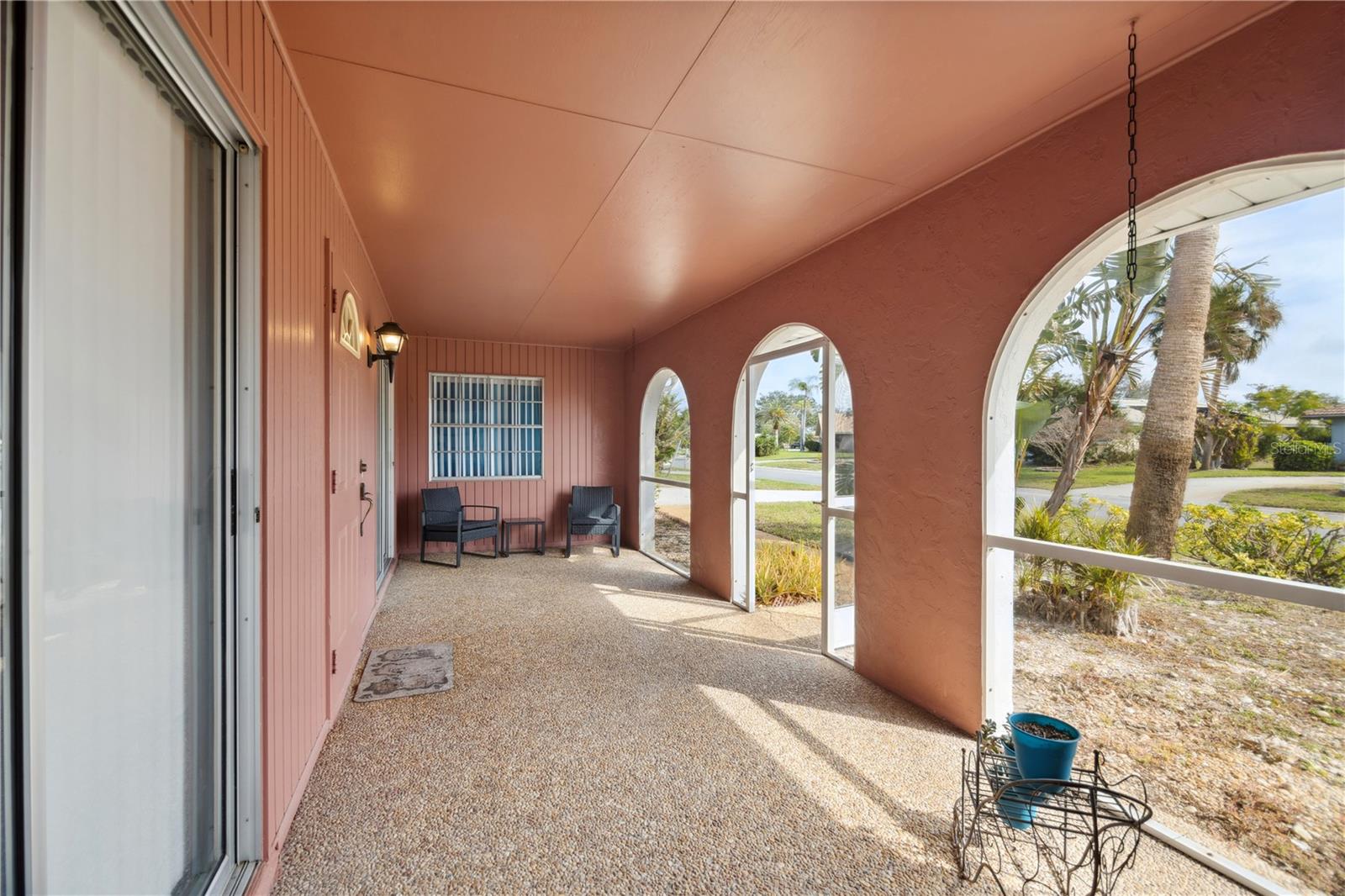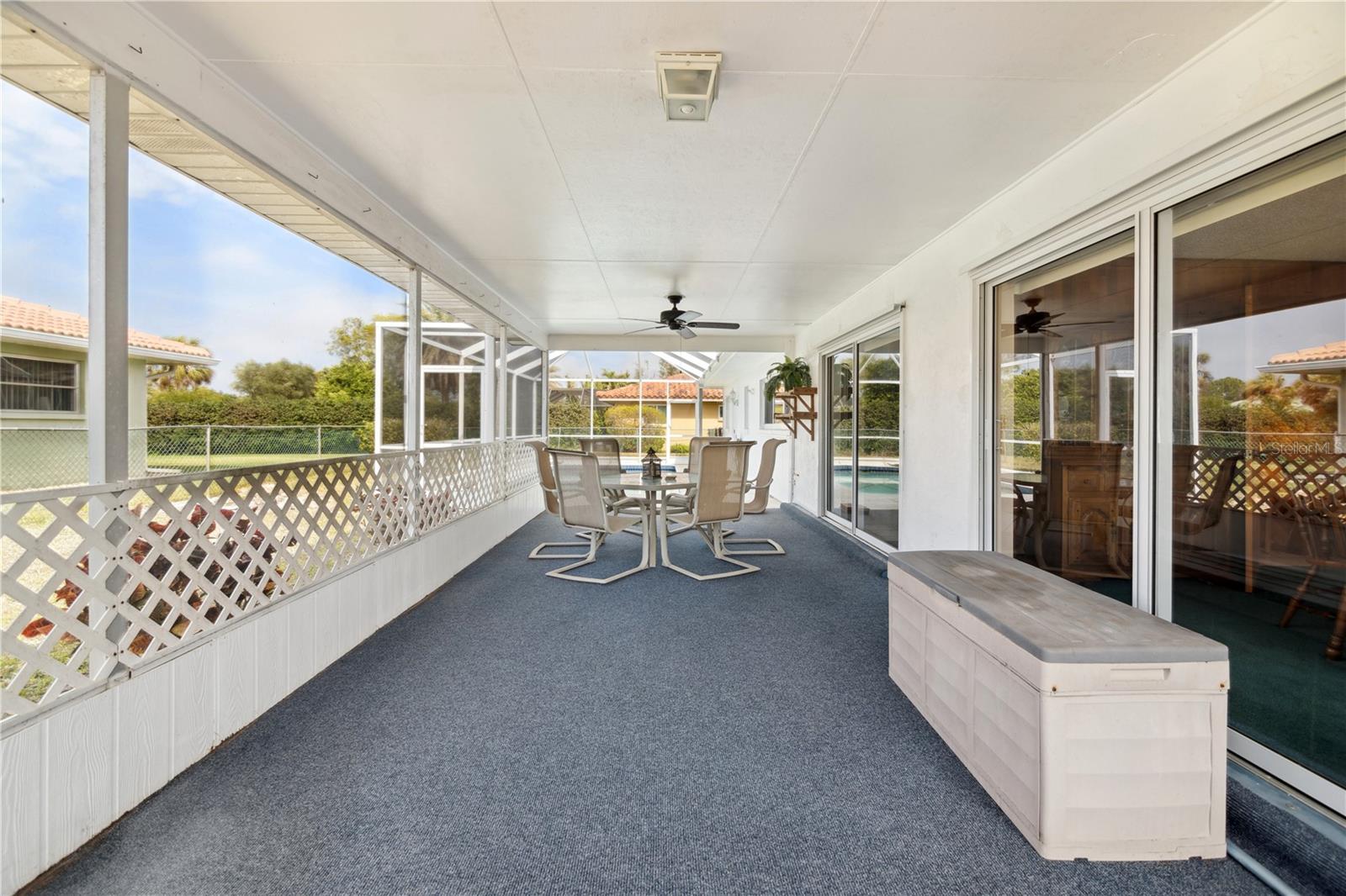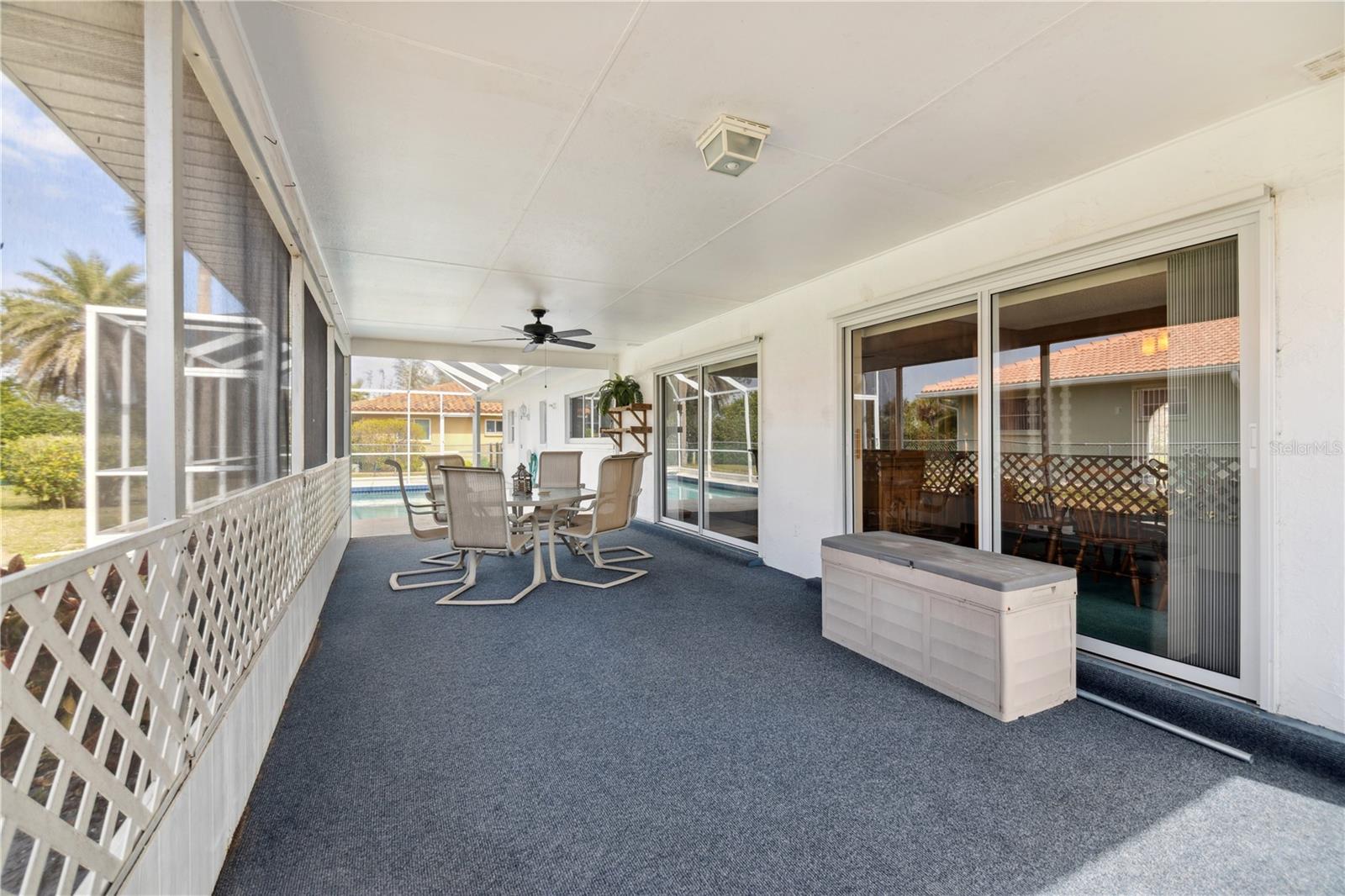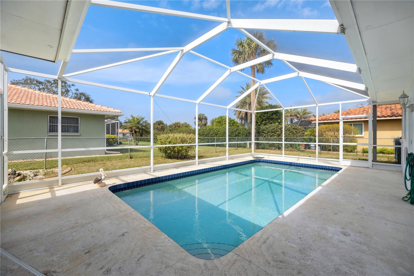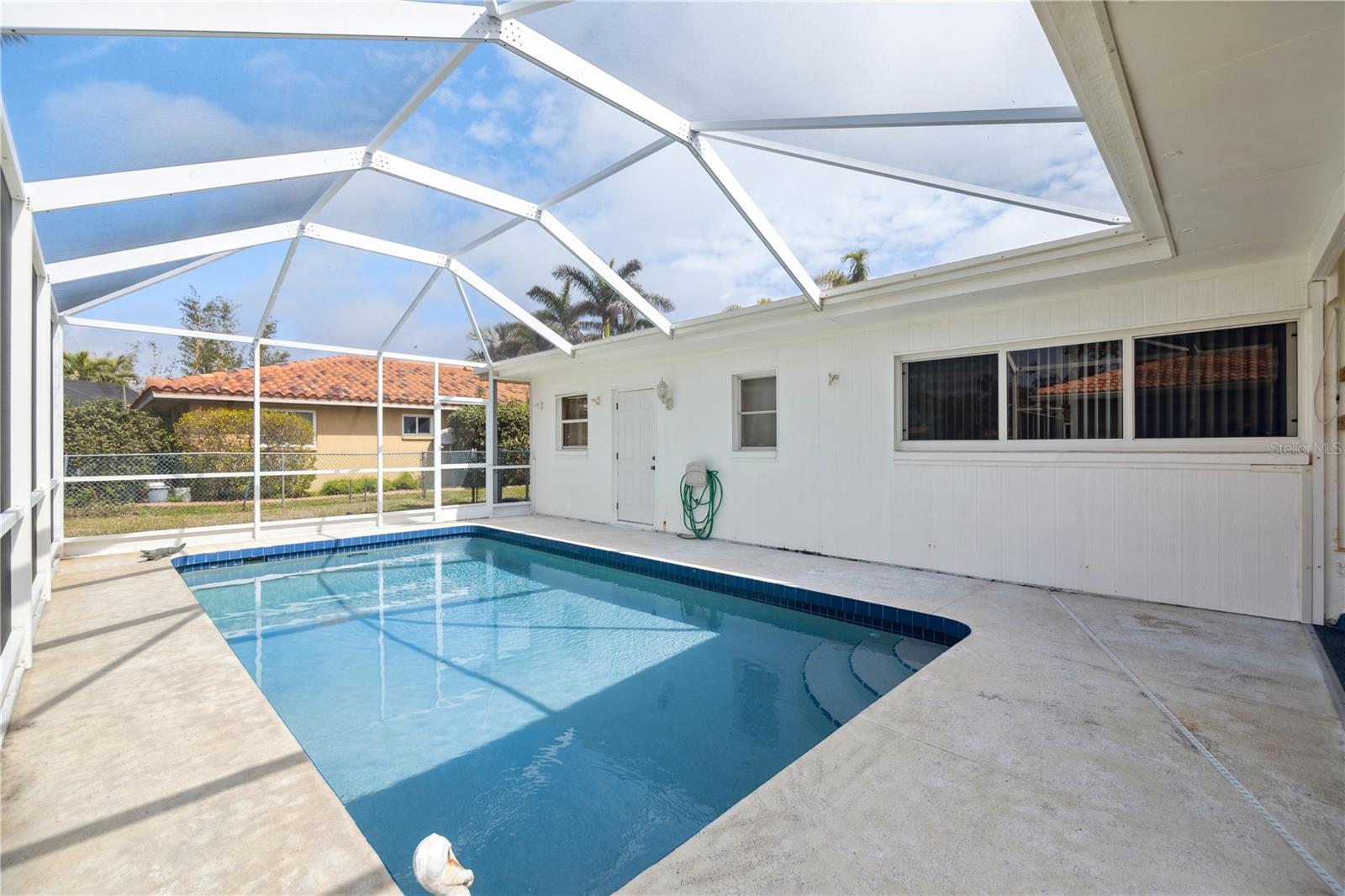 $111,000 PRICE DROP! MOTIVATED SELLERS! NEVER FLOODED, unlike some of the cheap fix and flips you see on the market today! Welcome to this dated, but move in ready 3-bedroom, 3-bathroom POOL HOME located in the desirable Sorento East neighborhood. The 234 sqft screened FRONT PORCH FACES EAST and the screened in back porch with POOL FACES WEST, allowing for beautiful sunrise and sunset views. NEW HVAC in 2021, New Concrete TILE ROOF in 2002 & FLAT ROOF REPLACED in 2014, NEW GARAGE DOOR in 2012, The POOL has been RESURFACED, Two HURRICANE IMPACT WINDOWS and two newer SLIDING GLASS DOORS on the back of the home. Situated on a CORNER LOT, this home boasts tasteful landscaping with lush palm trees and a SPRINKLER SYSTEM ensures the landscaping stays vibrant year-round. Step inside to find a spacious formal living room and dining room, perfect for entertaining guests. The kitchen features an additional eating space, ideal for casual meals, while the bonus room or second living room, conveniently located through a passthrough window, offers plenty of room to relax or create your own unique space. One of the guest bedrooms offers the perfect opportunity for an IN-LAW SUITE, complete with its own private entrance from the garage for added privacy and convenience. The primary bedroom offers a walk-in closet and the bathroom offers a shower with a tub. The expansive front and back porches are perfect for enjoying the warm Florida weather. The barrel tile roof adds to the property's durability and timeless elegance and for added peace of mind, the garage is equipped with HURRICANE SHUTTERS. This home is a true gem in Nokomis, offering comfort, convenience, and a welcoming atmosphere for family and friends. Don't miss out on this wonderful opportunity!