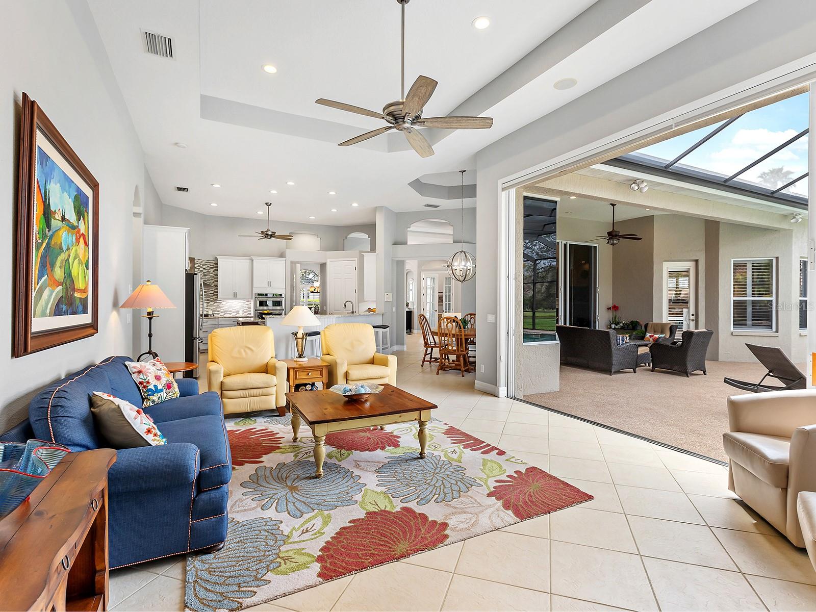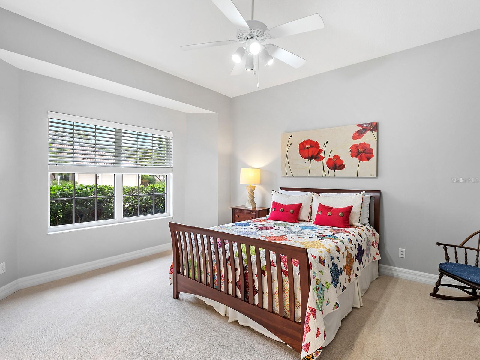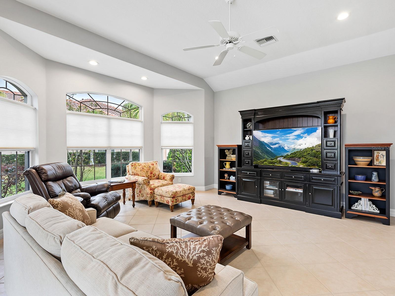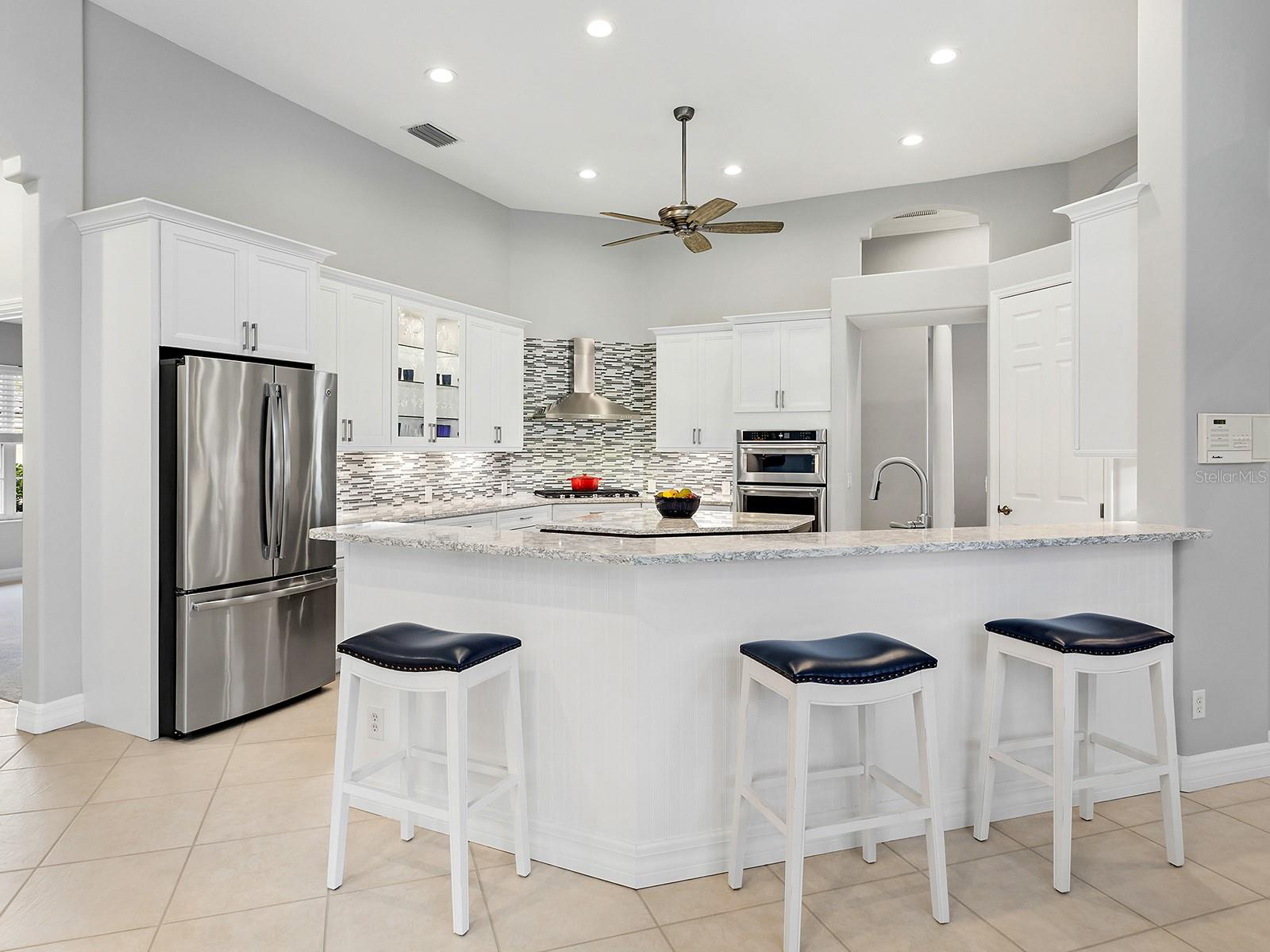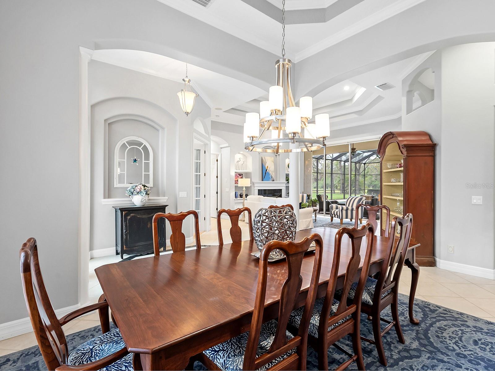 On a beautifully landscaped corner lot in esteemed Lakewood Ranch Country Club, this residence offers an exceptional blend of elegance, functionality and a serene lake view. New roof in December 2024. The home's striking exterior features an oversized paver driveway with manicured hedges, landscaped islands, a side-load garage with windows and a stately entrance framed by two columns. The glass double doors open to a foyer with a custom-trimmed wall niche and tile floors with a decorative inlay, setting the tone for the refined interior. Designed for grand entertaining and comfortable everyday living, the formal dining room boasts a double tray ceiling with crown molding and plantation-shuttered windows, while the living room impresses with soaring ceilings, custom moldings, a gas fireplace flanked by built-ins, and 10-foot sliding doors that invite indoor/outdoor living. The office, enclosed by glass French doors, is adorned with crown molding, hardwood floors and a large window with plantation shutters. The kitchen is designed for culinary excellence with quartz countertops, a glass tile backsplash and soft-close cabinetry. A central island provides prep space, while the counter features plenty of seating. The breakfast area offers views of the lanai and lake through an aquarium window. High-end stainless-steel appliances complete the space. The adjacent family room is ideal for gathering, featuring a tray ceiling, a built-in entertainment center, and walls of sliders that lead to the lanai. The primary suite is a retreat accessed through an alcove entry with double doors and a wall niche. A double tray ceiling, bay windows, beadboard accents and private lanai access through a glass door creates a serene atmosphere. The expansive walk-in closet is thoughtfully designed. The recently updated primary bath showcases an oversized walk-in shower with beautiful tile and seamless glass, porcelain tile floors, a dual-sink vanity with quartz countertops and a linen closet with wood shelving. Two additional bedrooms, each with walk-in closets and large windows, are well-appointed. One is an en suite, and two share a full bath with a tub and shower. A full pool bath with a glass-enclosed shower and hallway linen closet is conveniently accessible. The bonus room offers pocketing sliders, a spacious wall closet, access to the en-suite pool bath and flexibility to serve as an additional bedroom. Designed for year-round enjoyment, the lanai is fully equipped with an outdoor kitchen, complete with a Sedona Lynx grill, Fire-Magic mini refrigerator, prep sink and weather-resistant cabinetry, and plenty of bar-height seating at granite countertop. The lanai's Pro-Deck rubber flooring is eco-friendly, UV-resistant and anti-fungal, ensuring durability and comfort. A gas-heated pool and spa, two large, covered areas for dining and lounging, and lush landscaping enhance the tranquil ambiance with its breathtaking lake view. With the recent expansion to include a fourth golf course, Lakewood Ranch Golf and Country Club offers unmatched access to premier golfing. Residents can choose from a variety of membership options. Ideally just minutes from the UTC Mall, Waterside, Lakewood Ranch Main Street and downtown Sarasota, the home is also within easy reach of top-tier dining, shopping and the area's renowned beaches. 7934 Royal Birkdale Circle is a stunning residence in one of Lakewood Ranch's prestigious communities.