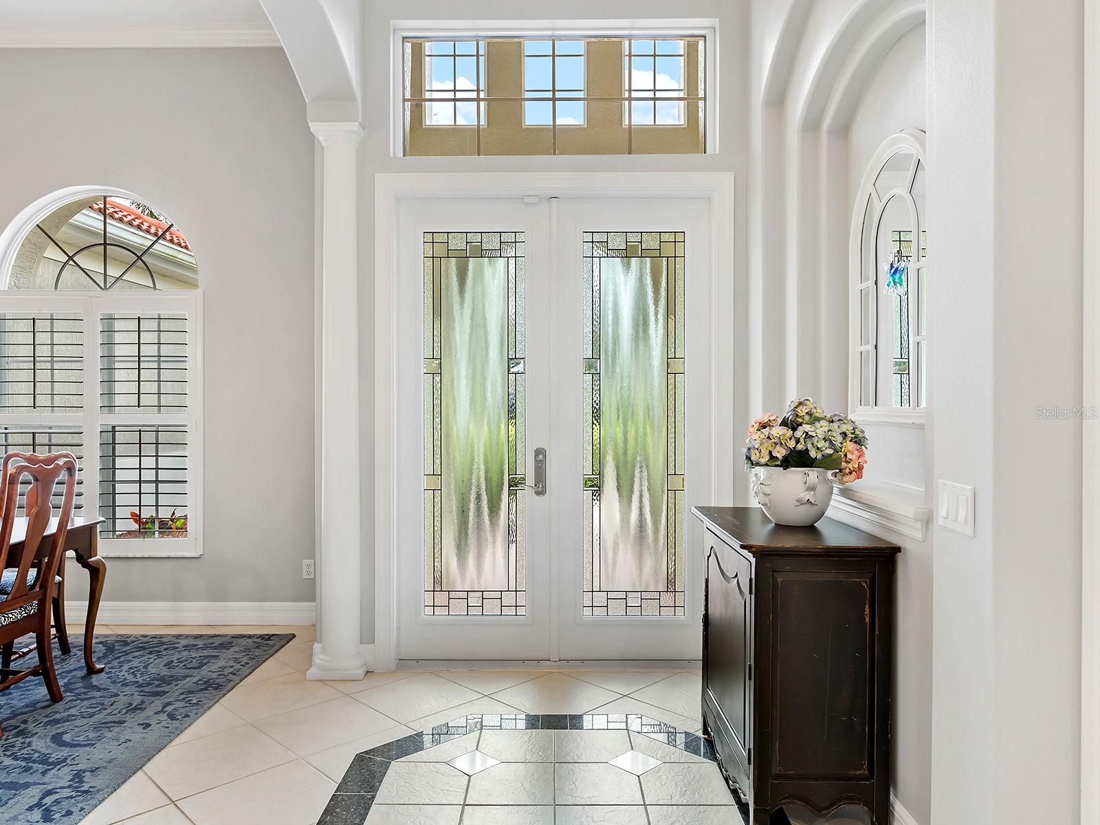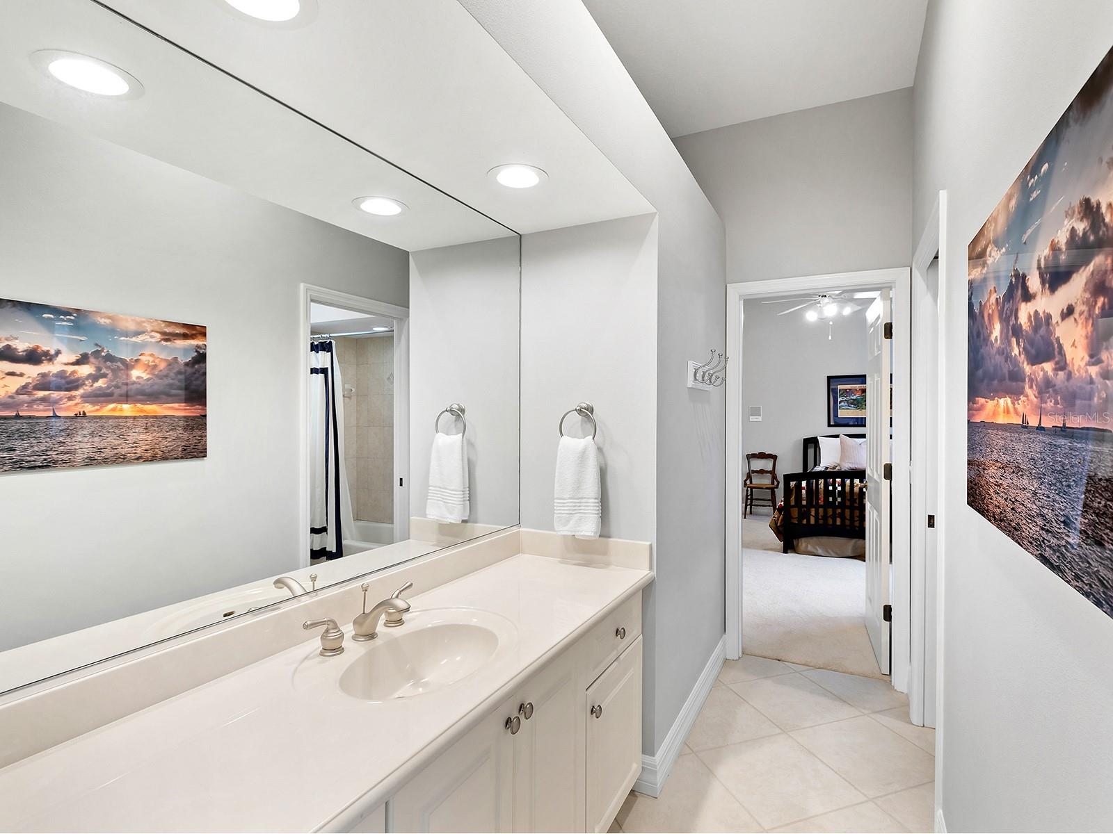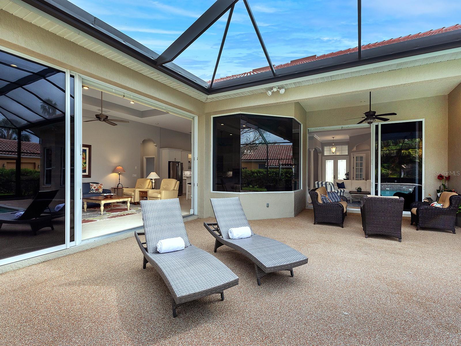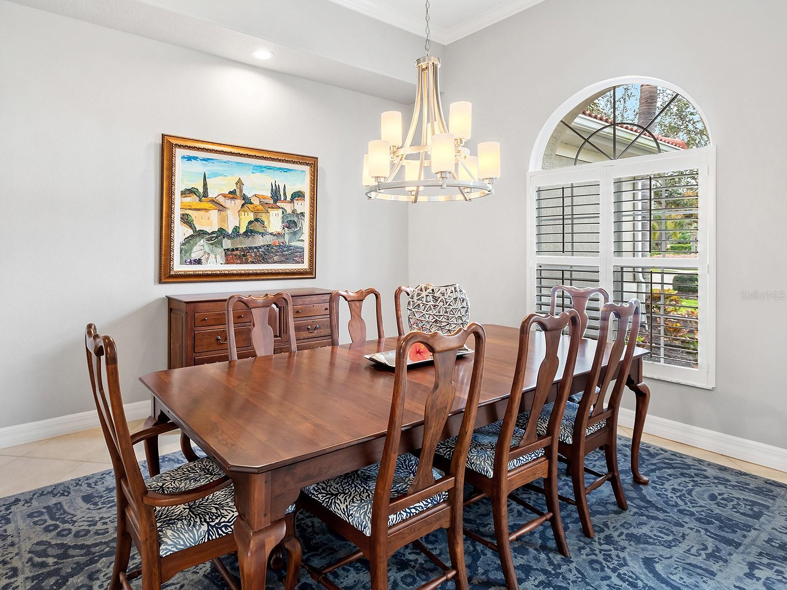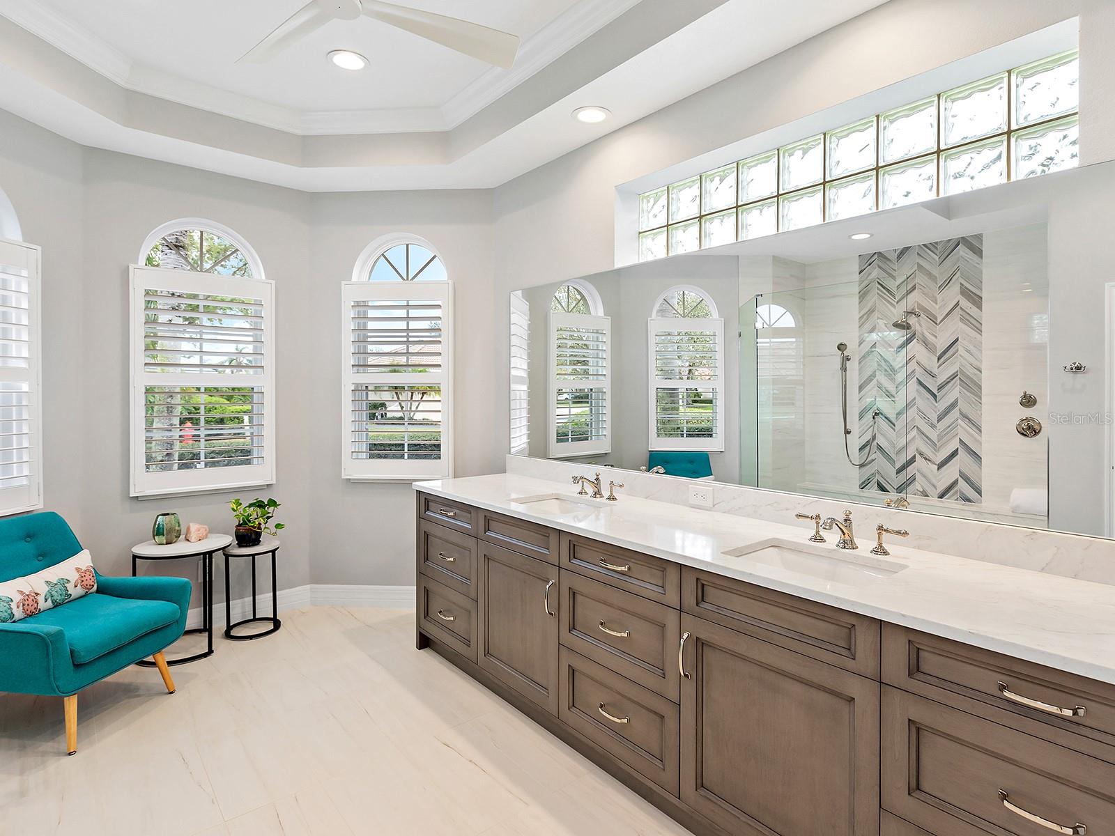On a beautifully landscaped corner lot in esteemed Lakewood Ranch Country Club, this residence offers an exceptional blend of elegance, functionality and a serene lake view. New roof in December 2024. The home's striking exterior features an oversized paver driveway with manicured hedges, landscaped islands, a side-load garage with windows and a stately entrance framed by two columns. The glass double doors open to a foyer with a custom-trimmed wall niche and tile floors with a decorative inlay, setting the tone for the refined interior. Designed for grand entertaining and comfortable everyday living, the formal dining room boasts a double tray ceiling with crown molding and plantation-shuttered windows, while the living room impresses with soaring ceilings, custom moldings, a gas fireplace flanked by built-ins, and 10-foot sliding doors that invite indoor/outdoor living. The office, enclosed by glass French doors, is adorned with crown molding, hardwood floors and a large window with plantation shutters. The kitchen is designed for culinary excellence with quartz countertops, a glass tile backsplash and soft-close cabinetry. A central island provides prep space, while the counter features plenty of seating. The breakfast area offers views of the lanai and lake through an aquarium window. High-end stainless-steel appliances complete the space. The adjacent family room is ideal for gathering, featuring a tray ceiling, a built-in entertainment center, and walls of sliders that lead to the lanai. The primary suite is a retreat accessed through an alcove entry with double doors and a wall niche. A double tray ceiling, bay windows, beadboard accents and private lanai access through a glass door creates a serene atmosphere. The expansive walk-in closet is thoughtfully designed. The recently updated primary bath showcases an oversized walk-in shower with beautiful tile and seamless glass, porcelain tile floors, a dual-sink vanity with quartz countertops and a linen closet with wood shelving. Two additional bedrooms, each with walk-in closets and large windows, are well-appointed. One is an en suite, and two share a full bath with a tub and shower. A full pool bath with a glass-enclosed shower and hallway linen closet is conveniently accessible. The bonus room offers pocketing sliders, a spacious wall closet, access to the en-suite pool bath and flexibility to serve as an additional bedroom. Designed for year-round enjoyment, the lanai is fully equipped with an outdoor kitchen, complete with a Sedona Lynx grill, Fire-Magic mini refrigerator, prep sink and weather-resistant cabinetry, and plenty of bar-height seating at granite countertop. The lanai's Pro-Deck rubber flooring is eco-friendly, UV-resistant and anti-fungal, ensuring durability and comfort. A gas-heated pool and spa, two large, covered areas for dining and lounging, and lush landscaping enhance the tranquil ambiance with its breathtaking lake view. With the recent expansion to include a fourth golf course, Lakewood Ranch Golf and Country Club offers unmatched access to premier golfing. Residents can choose from a variety of membership options. Ideally just minutes from the UTC Mall, Waterside, Lakewood Ranch Main Street and downtown Sarasota, the home is also within easy reach of top-tier dining, shopping and the area's renowned beaches. 7934 Royal Birkdale Circle is a stunning residence in one of Lakewood Ranch's prestigious communities.