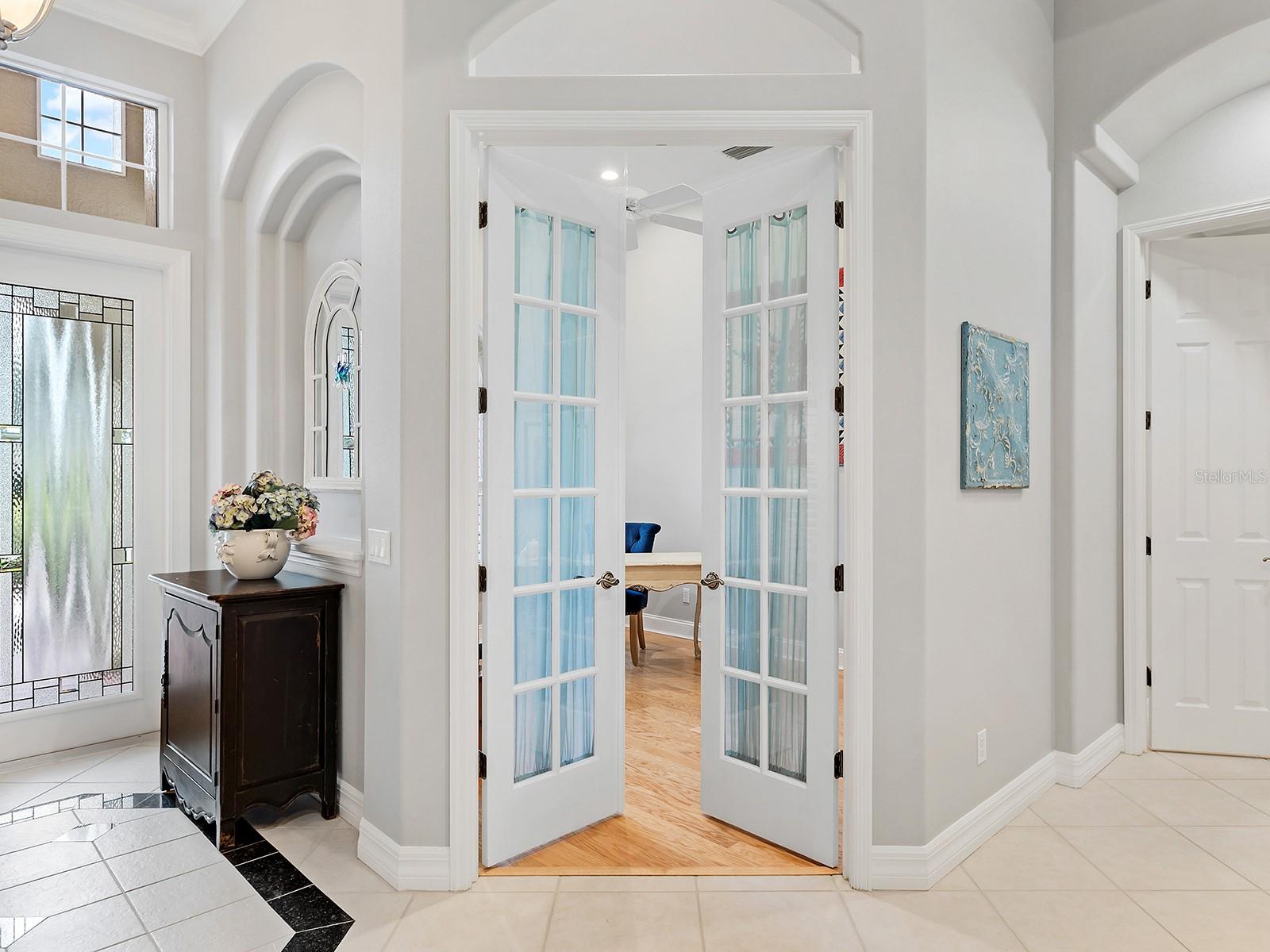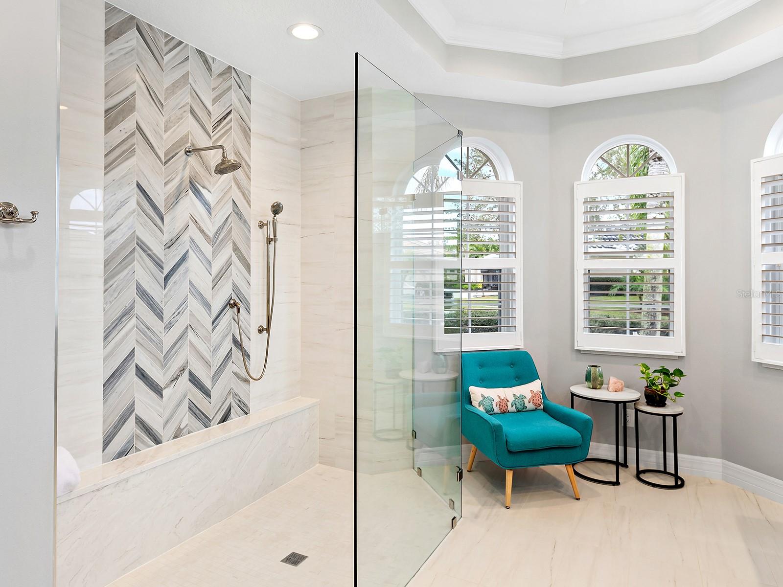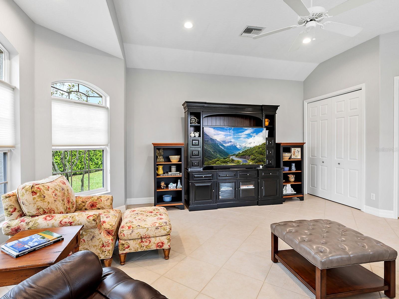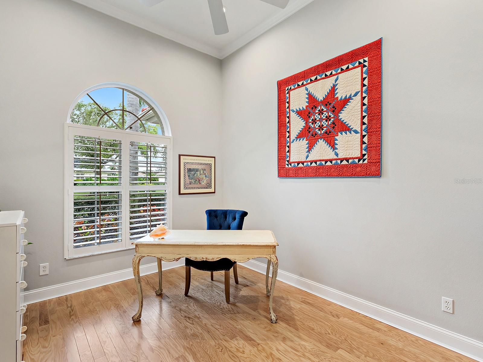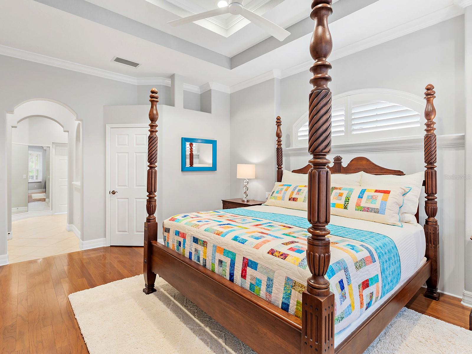 On a beautifully landscaped corner lot in esteemed Lakewood Ranch Country Club, this residence offers an exceptional blend of elegance, functionality and a serene lake view. New roof in December 2024. The home's striking exterior features an oversized paver driveway with manicured hedges, landscaped islands, a side-load garage with windows and a stately entrance framed by two columns. The glass double doors open to a foyer with a custom-trimmed wall niche and tile floors with a decorative inlay, setting the tone for the refined interior. Designed for grand entertaining and comfortable everyday living, the formal dining room boasts a double tray ceiling with crown molding and plantation-shuttered windows, while the living room impresses with soaring ceilings, custom moldings, a gas fireplace flanked by built-ins, and 10-foot sliding doors that invite indoor/outdoor living. The office, enclosed by glass French doors, is adorned with crown molding, hardwood floors and a large window with plantation shutters. The kitchen is designed for culinary excellence with quartz countertops, a glass tile backsplash and soft-close cabinetry. A central island provides prep space, while the counter features plenty of seating. The breakfast area offers views of the lanai and lake through an aquarium window. High-end stainless-steel appliances complete the space. The adjacent family room is ideal for gathering, featuring a tray ceiling, a built-in entertainment center, and walls of sliders that lead to the lanai. The primary suite is a retreat accessed through an alcove entry with double doors and a wall niche. A double tray ceiling, bay windows, beadboard accents and private lanai access through a glass door creates a serene atmosphere. The expansive walk-in closet is thoughtfully designed. The recently updated primary bath showcases an oversized walk-in shower with beautiful tile and seamless glass, porcelain tile floors, a dual-sink vanity with quartz countertops and a linen closet with wood shelving. Two additional bedrooms, each with walk-in closets and large windows, are well-appointed. One is an en suite, and two share a full bath with a tub and shower. A full pool bath with a glass-enclosed shower and hallway linen closet is conveniently accessible. The bonus room offers pocketing sliders, a spacious wall closet, access to the en-suite pool bath and flexibility to serve as an additional bedroom. Designed for year-round enjoyment, the lanai is fully equipped with an outdoor kitchen, complete with a Sedona Lynx grill, Fire-Magic mini refrigerator, prep sink and weather-resistant cabinetry, and plenty of bar-height seating at granite countertop. The lanai's Pro-Deck rubber flooring is eco-friendly, UV-resistant and anti-fungal, ensuring durability and comfort. A gas-heated pool and spa, two large, covered areas for dining and lounging, and lush landscaping enhance the tranquil ambiance with its breathtaking lake view. With the recent expansion to include a fourth golf course, Lakewood Ranch Golf and Country Club offers unmatched access to premier golfing. Residents can choose from a variety of membership options. Ideally just minutes from the UTC Mall, Waterside, Lakewood Ranch Main Street and downtown Sarasota, the home is also within easy reach of top-tier dining, shopping and the area's renowned beaches. 7934 Royal Birkdale Circle is a stunning residence in one of Lakewood Ranch's prestigious communities.