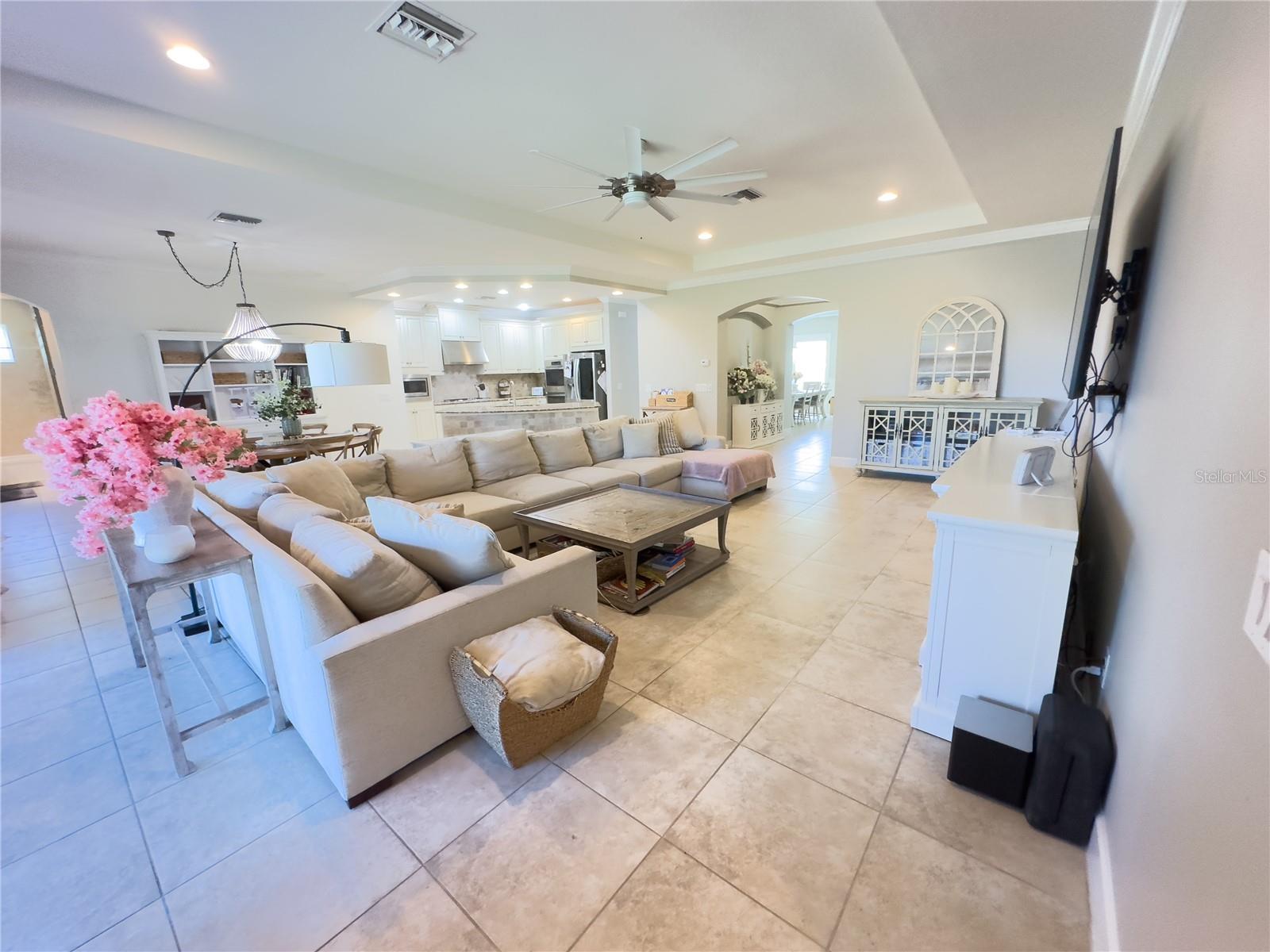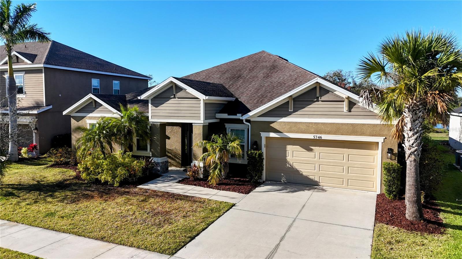 Tucked beneath towering palm trees on a premium cul-de-sac lot, this exceptional home in Arbor Lakes on Palmer Ranch is completely move-in ready and waiting for its next proud owners. With over 3,200 sq. ft. of living space, it effortlessly blends elegance, functionality, and privacy. Step inside to discover pristine tile flooring, beautifully complemented by tray ceilings and elegant crown and base moldings throughout. A formal living and dining area greet you upon entry, setting the stage for a home that is both inviting and refined. The thoughtfully designed split floor plan offers four spacious bedrooms, three and a half bathrooms, and a versatile bonus flex room--perfect for a home office, media room, or play area. The convenience continues with an indoor laundry room just off the three-car garage, providing ample storage to keep everything organized. Just beyond, the expansive family room invites you to unwind while taking in breathtaking sunset views through oversized sliding glass doors, seamlessly blending indoor and outdoor living. The gourmet kitchen is a chef's dream, featuring upgraded wooden cabinetry, gleaming granite countertops, and high-end stainless steel appliances--including a 5-burner gas range and built-in microwave. A large island overlooks the open-concept second living and dining areas, creating the perfect setting for morning coffee chats and effortless entertaining. The primary suite serves as a private retreat, complete with a spacious walk-in closet and a luxurious en-suite bathroom featuring dual vanities, a walk-in shower, and a relaxing garden tub. Outside, you'll find a lovely screened-in lanai featuring a fully equipped outdoor kitchen, perfect for grilling out with neighbors and enjoying alfresco dining. The oversized backyard offers unobstructed views of the lake and nature preserve, creating a serene escape with plenty of space for a custom pool and endless outdoor fun. Enjoy the perks of resort-style living with access to a sparkling community pool, spa, pirate playground, splash park, volleyball and basketball courts, dog park, designated fishing areas and more--all with low HOA fees! Don't miss your chance to own this rare gem in one of Sarasota's most sought-after communities. Call today to learn more and schedule your private showing before it's gone!