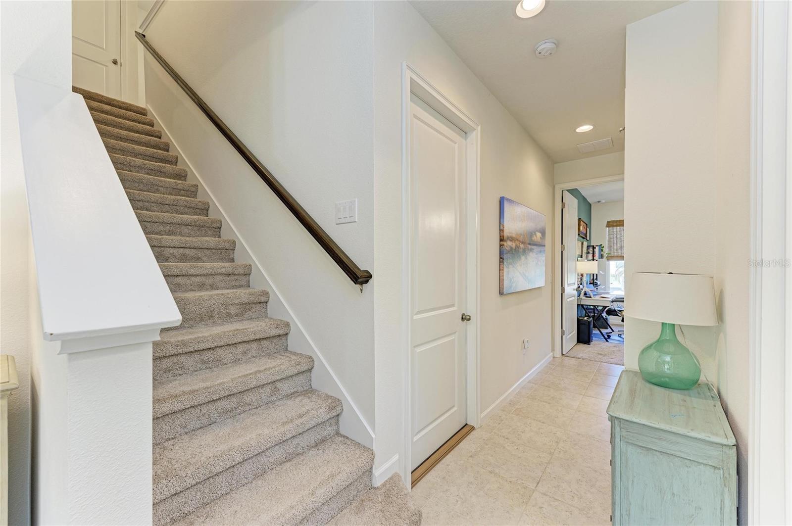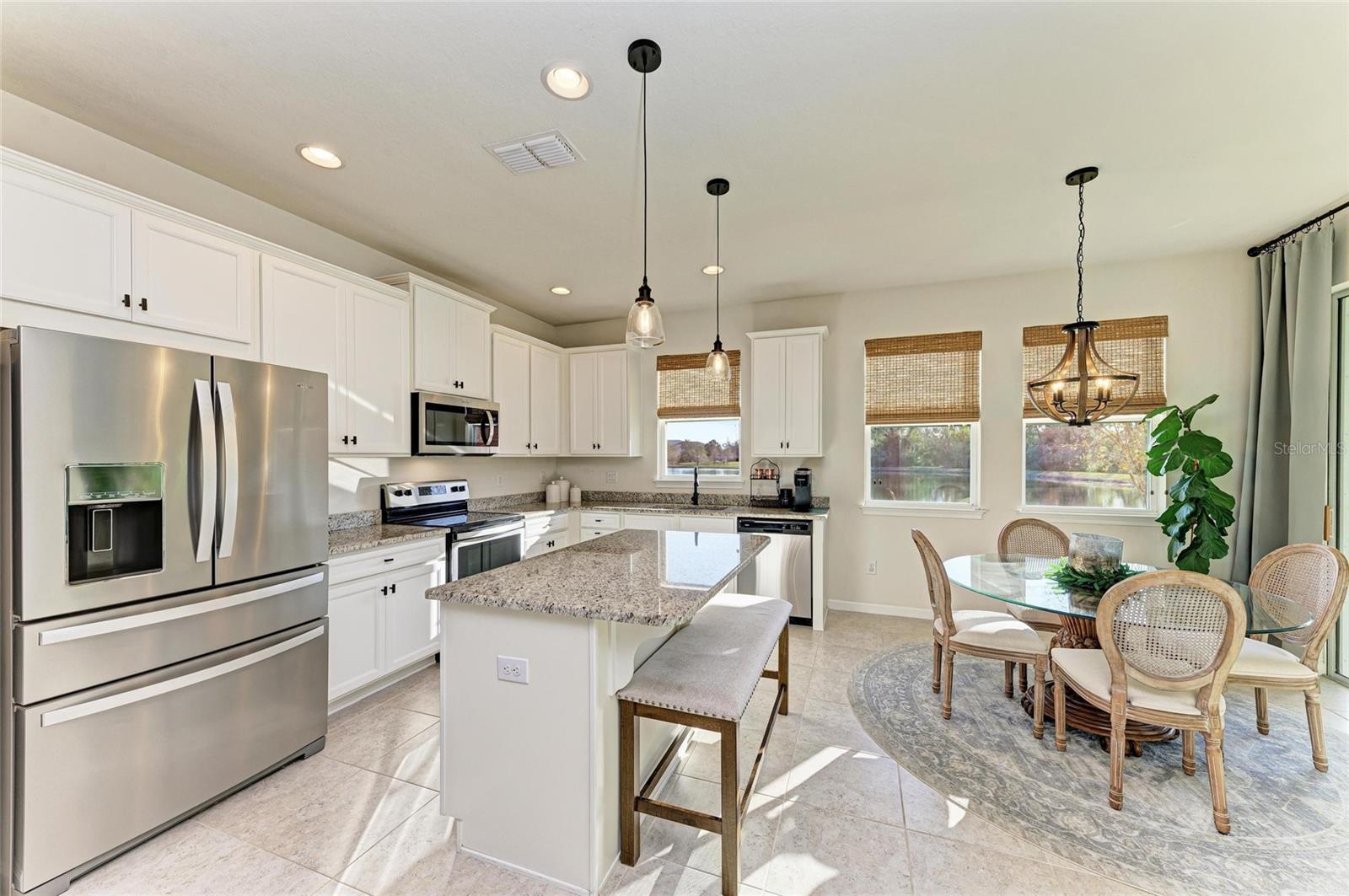 MOTIVATED SELLER. Step into refined elegance with this exquisitely crafted 3-bedroom, 3 bathroom townhome in Harmony at Lakewood Ranch. Boasting 1728 square feet of sophisticated living space, this residence offers breathtaking water and preserve views, stylish upgrades, and a spacious layout perfect for modern living. The first floor boasts an inviting open concept design, where the living, dining, and kitchen areas flow seamlessly together, creating a bright and airy space ideal for entertaining or relaxing. The gourmet kitchen features stone countertops, white modern cabinets, and a functional layout designed for both beauty and efficiency. Large windows bring in plenty of natural light, while the tranquil water views provide the perfect backdrop for everyday life. The First floor primary bedroom offers plenty of rooom for a king sized bed and additional furniture creating a relaxing retreat. The room has a large walk in closet, en suite bathroom with stand up shower. The master bathrom features modern finishes and plenty of storage. A second bedroom on the main level provides flexibility for guests, a home office, or a hobby space. Upstairs, a versatile loft adds even more living space, perfect for a second lounge, media room, or play area. A third bedroom and full bath complete the second floor, providing privacy and extra space for family or visitors. Plus, an attic adds convenient storage. This home includes high end upgrades, such as custom rattan line roman shades, hurricane rated roller shutters for added patio protection, and an upgraded pop-up sprinkler system for easy lawn maintenance. Located in Lakewood Ranch, one of the top master planned communities in the country, Harmony offers resort style amenities, including a clubhouse, resort pool, fitness center, and scenic walking trails. Just minutes away, you'll find the University Town Center shopping and dining district, Mote Marine Laboratory and Aquarium, and top rated colleges like Lecom. Siesta key, Lido key and Anna Maria Island are just a short drive away, you'll have access to some of the most beautiful beaches in the world. Don't miss your chance to own this incredible townhome in a prime location. Schedule your private tour today!