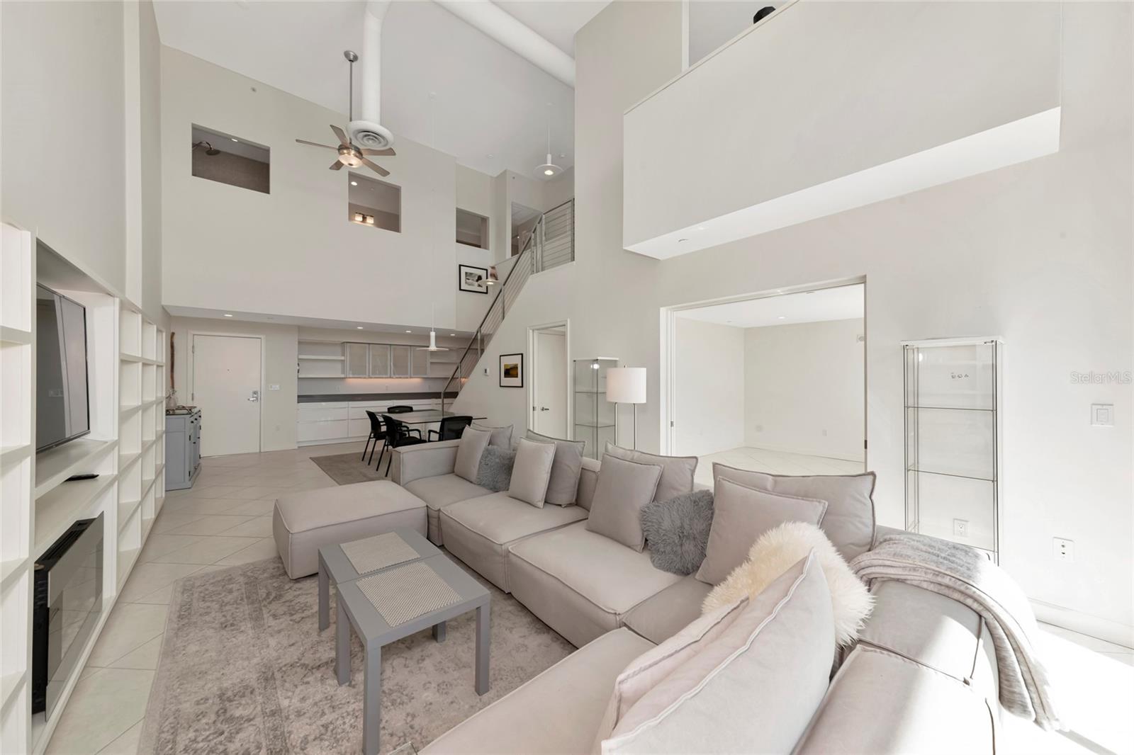 Elegant and contemporary describes this ninth-floor penthouse condominium in the historic district of Sarasota on Main Street. The Cityscape at Courthouse Centre complex has only 19 residential units, was built in 2005 and offers the best value in downtown Sarasota among newer buildings. This stylish contemporary 2 story penthouse has an open floor plan, 2 bedrooms and 2 bathrooms. The master bathroom was renovated in 2018 and can only be described as true luxury. The kitchen was completely remodeled in 2018 and extends contemporary white cabinetry into the open dining area. The living room has a gas fireplace, built in shelving and pocket doors which open and flow into the downstairs bedroom/office or den. Designed with an open floor plan and soaring 20- foot high ceilings, this penthouse condominium has gorgeous views from every room, including a view of Sarasota Bay from the balcony and upstairs bedroom. This exclusive penthouse offers private PH-level elevator access, newly renovated soundproof hallways, and a resident-only community room. The building offers concierge service, assigned parking in the attached parking ramp, and an enclosed climate- controlled storage area. Guest parking is plentiful in the parking garage as well. Restaurants, theaters, shopping and nightlife is right outside your door. If that was not enough, the condominium association is not responsible for any of the building costs. The condominium dues are guaranteed to only rise 3% per year through year 2027 and 2% per year for the next 14 years. No other condominium can provide this guarantee. The Cityscape at Courthouse Center offers the unparalleled lifestyle and convenience of an urban oasis in the heart of Sarasota. And it falls within an Opportunity Zone, offering potential tax advantages for investors.
