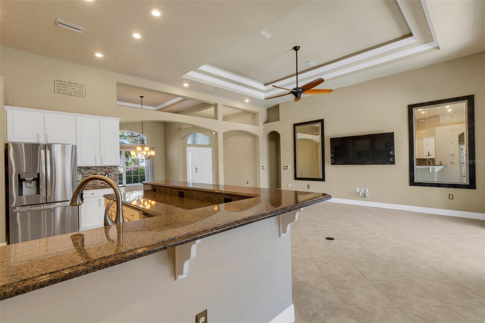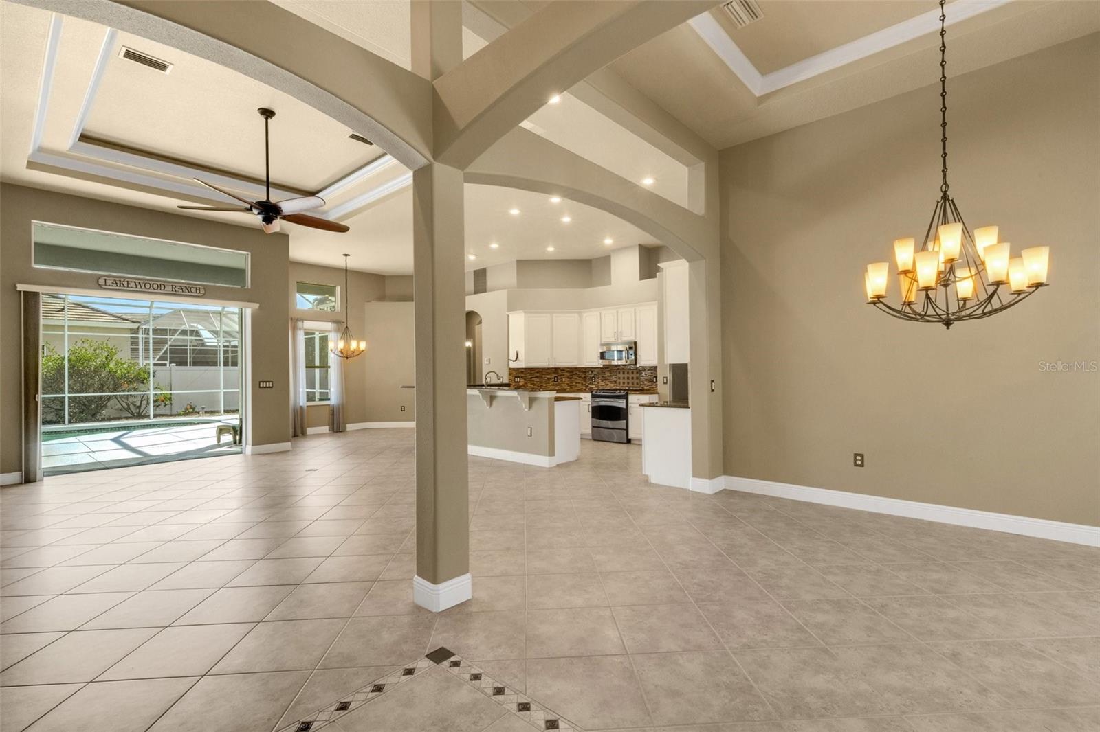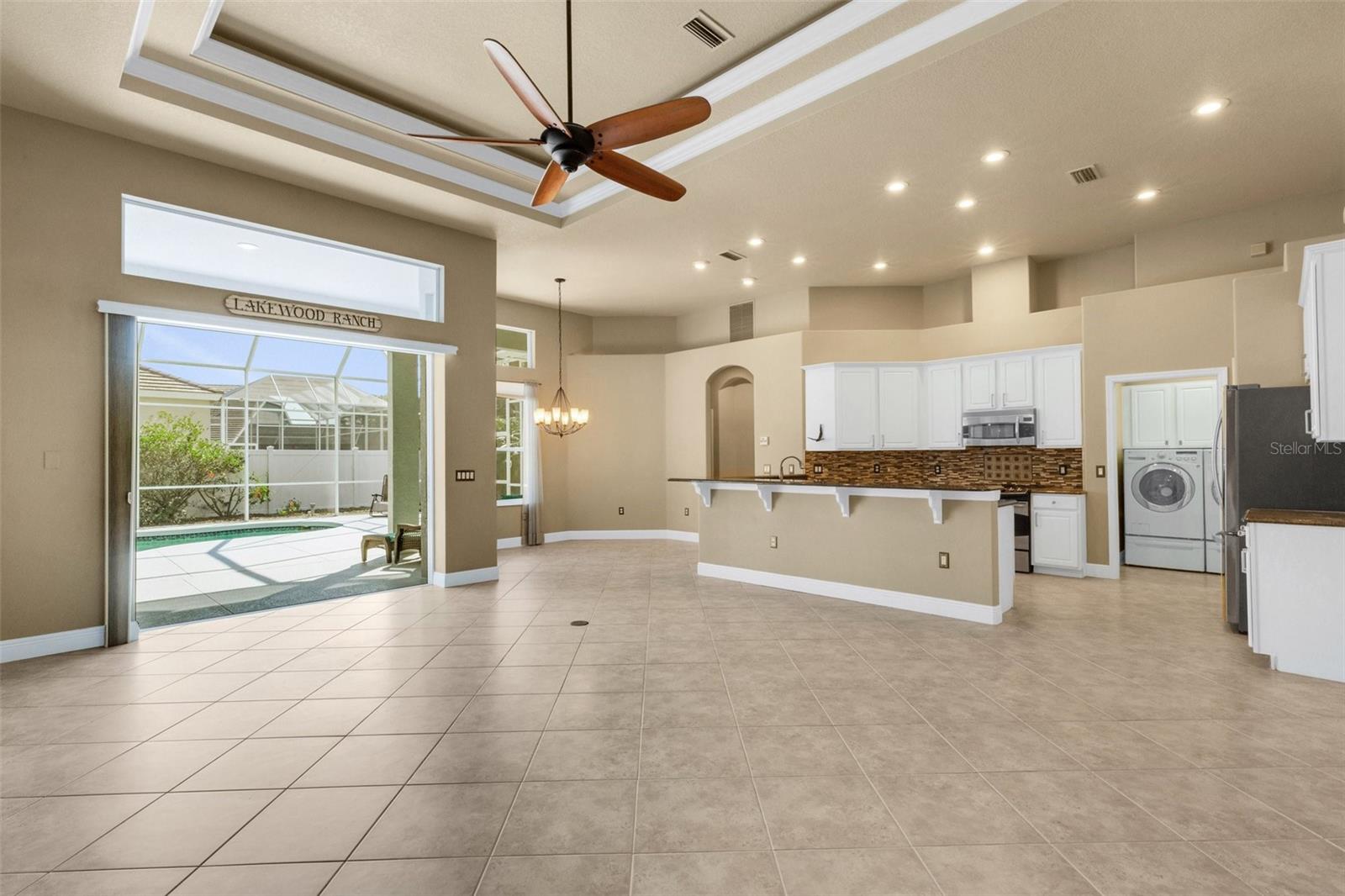Welcome to this beautifully updated 3-bedroom, 2-bathroom home in the sought-after Edgewater neighborhood of Lakewood Ranch. With 1,936 sq. ft. of living space, a 2-car garage, and a quarter-acre lot, this home offers true functionality.Step inside to soaring 12-foot ceilings with crown molding and tray ceilings, creating a spacious and airy feel. The open-concept layout seamlessly connects the updated kitchen, living, and dining areas, all overlooking the pool which was resurfaced in 2021 and equipped with a new heater in 2025.The primary suite is a true retreat, featuring a spacious layout with views of the pool, a master closet with built ins, and a beautifully updated en-suite bathroom. Additional upgrades include a new roof (2021), AC unit (2022), and water heater (2022), ensuring peace of mind for years to come.Located in Lakewood Ranch, this home is within a short distance to Main Street and just a short drive to Waterside, UTC Mall, I-75, area beaches, and top-rated dining and entertainment options.Don't miss the chance to own this exceptional home in a desirable neighborhood! Schedule your private showing today!