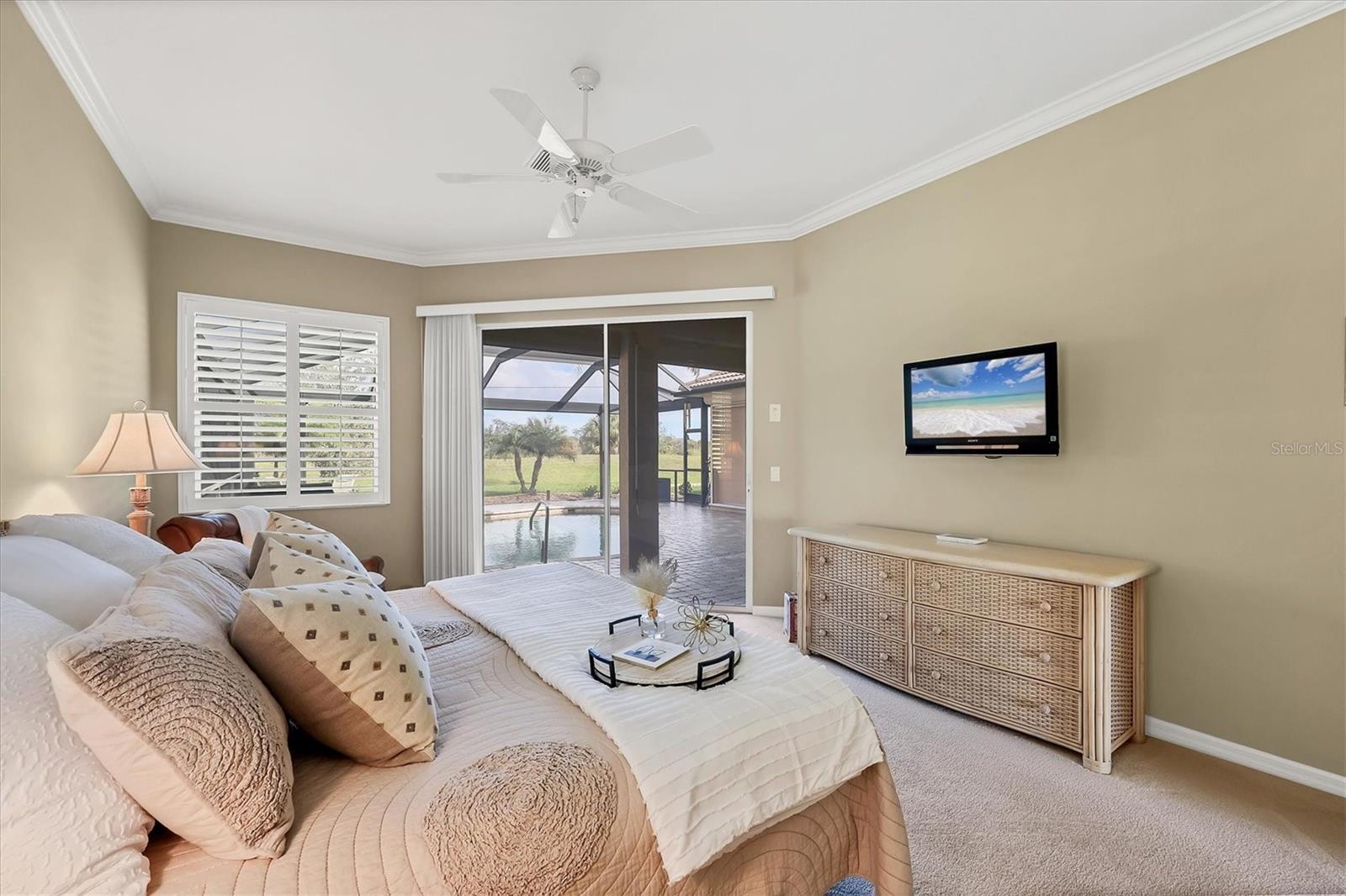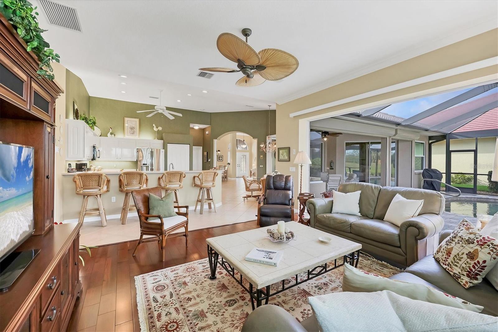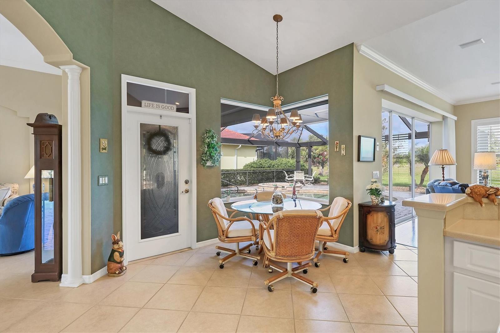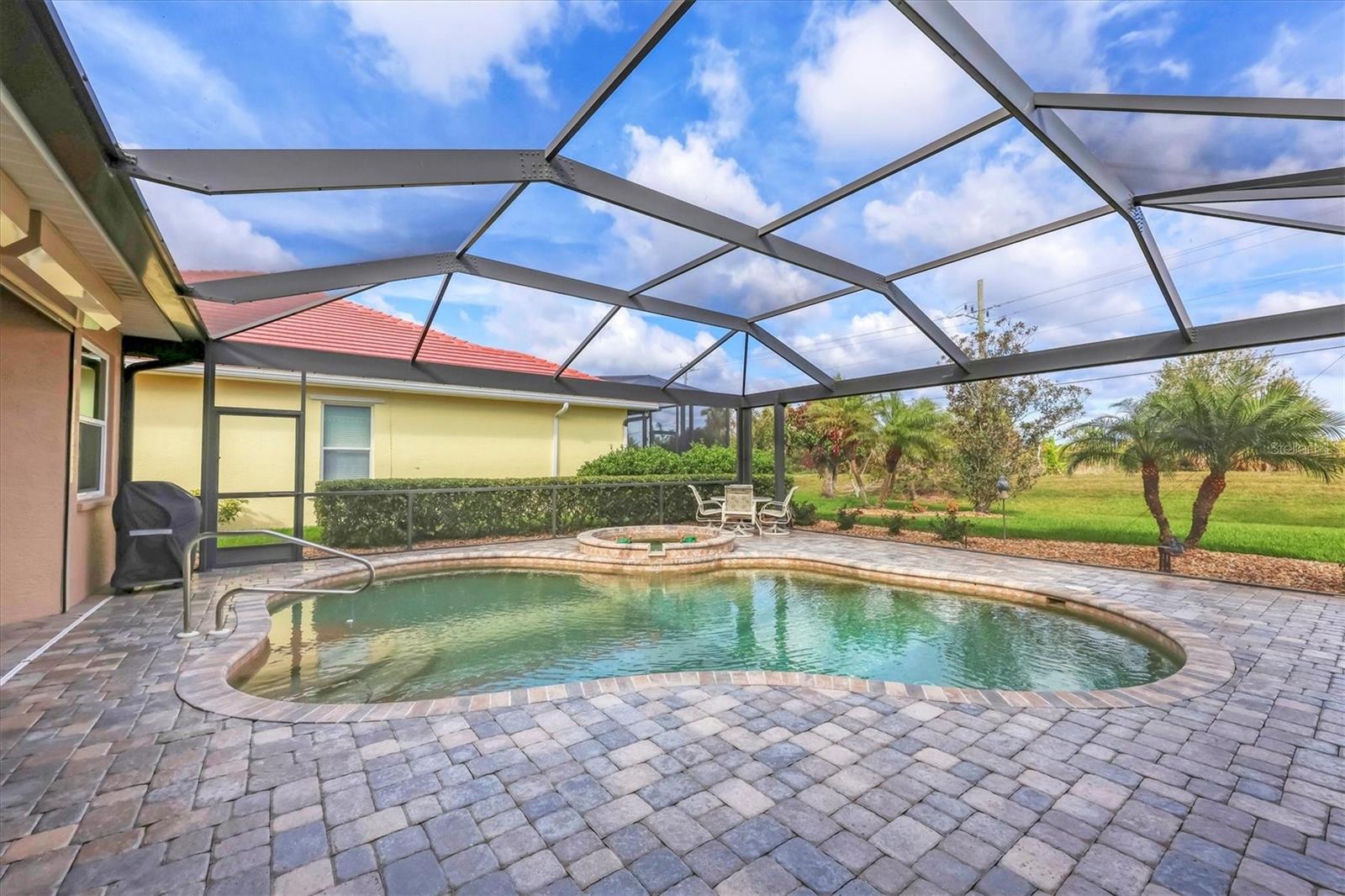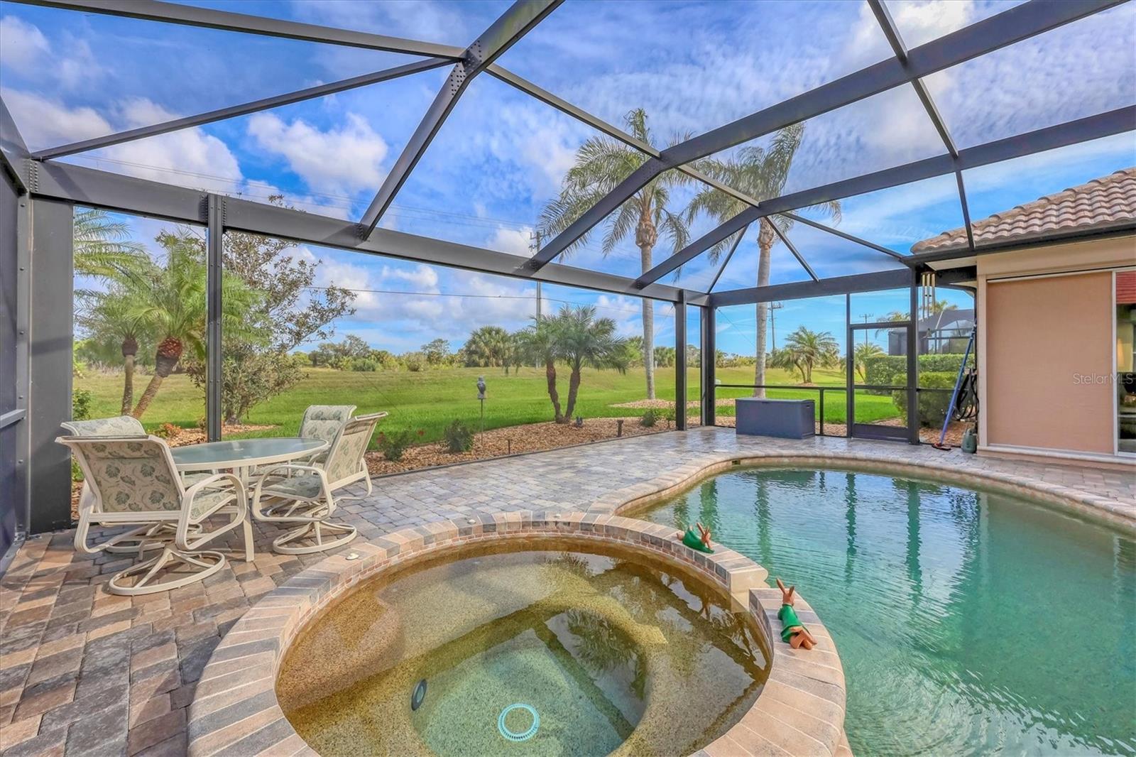 Impeccably maintained J & J Aruba III model offering fantastic privacy with views of preserve! This gorgeous home is a gem, meticulously maintained by its original owner and offering a thoughtfully designed split-bedroom floor plan. As you arrive, the three-car garage provides ample parking and storage, leading you to an elegant double-door glass entry that opens into a spacious foyer. From the moment you step inside, you're greeted by breathtaking views of the pool, and lush preserve and lake, through the expansive clear-view screen enclosure. Designed for comfort and entertaining, this popular layout features a private primary suite, thoughtfully separated from the two guest bedrooms. The primary retreat offers generous walk-in closets, direct access to the pool and lanai through large sliding glass doors, and a spa-like en-suite bath with dual sinks, a garden tub, a spacious walk-in shower and a separate water closet. The home's open-concept design is ideal for gatherings, with a formal living and dining room at the front, while the family room seamlessly connects to the gourmet kitchen. Here, you'll find a large breakfast bar, a cozy breakfast nook, and oversized pocket sliding glass doors leading to the pool area, an entertainer's dream! Step outside to your heated saltwater pool and spa, the ideal retreat for morning coffee, relaxation or an evening swim after a long day. This home offers peace of mind with numerous updates, including new roof in 2022, electric rolldown hurricane shutters on lanai, rear sliders and front door, hurricane-impact windows, new pool pump in 2024, freshly painted exterior in 2024 and more. Pride of ownership shines throughout this home and you'll be proud to call it yours. The Lakes of Jacaranda offers a community pool and clubhouse along with tennis courts and pickleball courts for additional recreation and is close to restaurants, shopping and is a short drive to beaches and the Atlanta Braves ballpark. Schedule your private showing today.