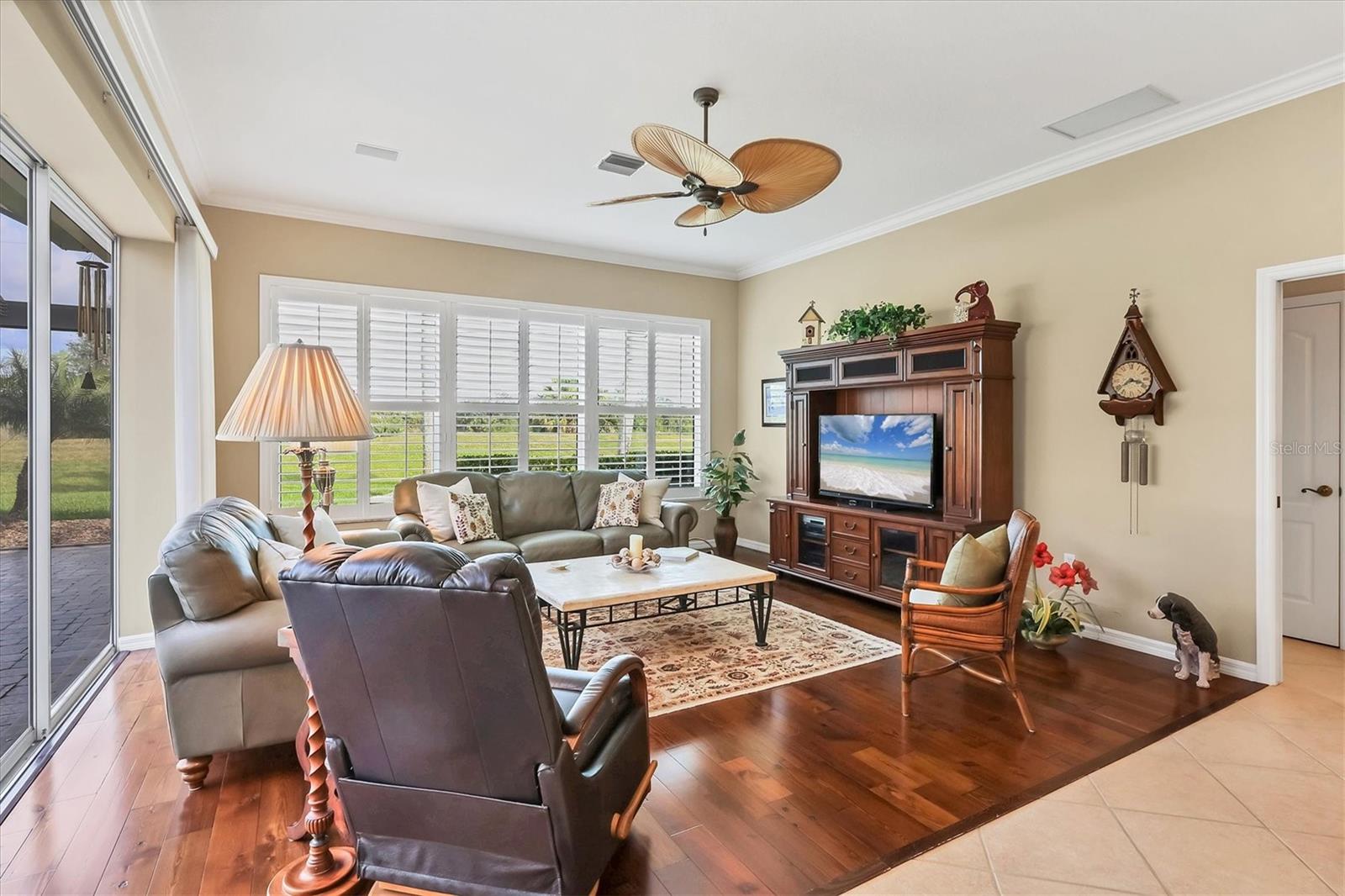 - Exterior: Hurricane Shutters, Rain Gutters, Sidewalk, Sliding Doors