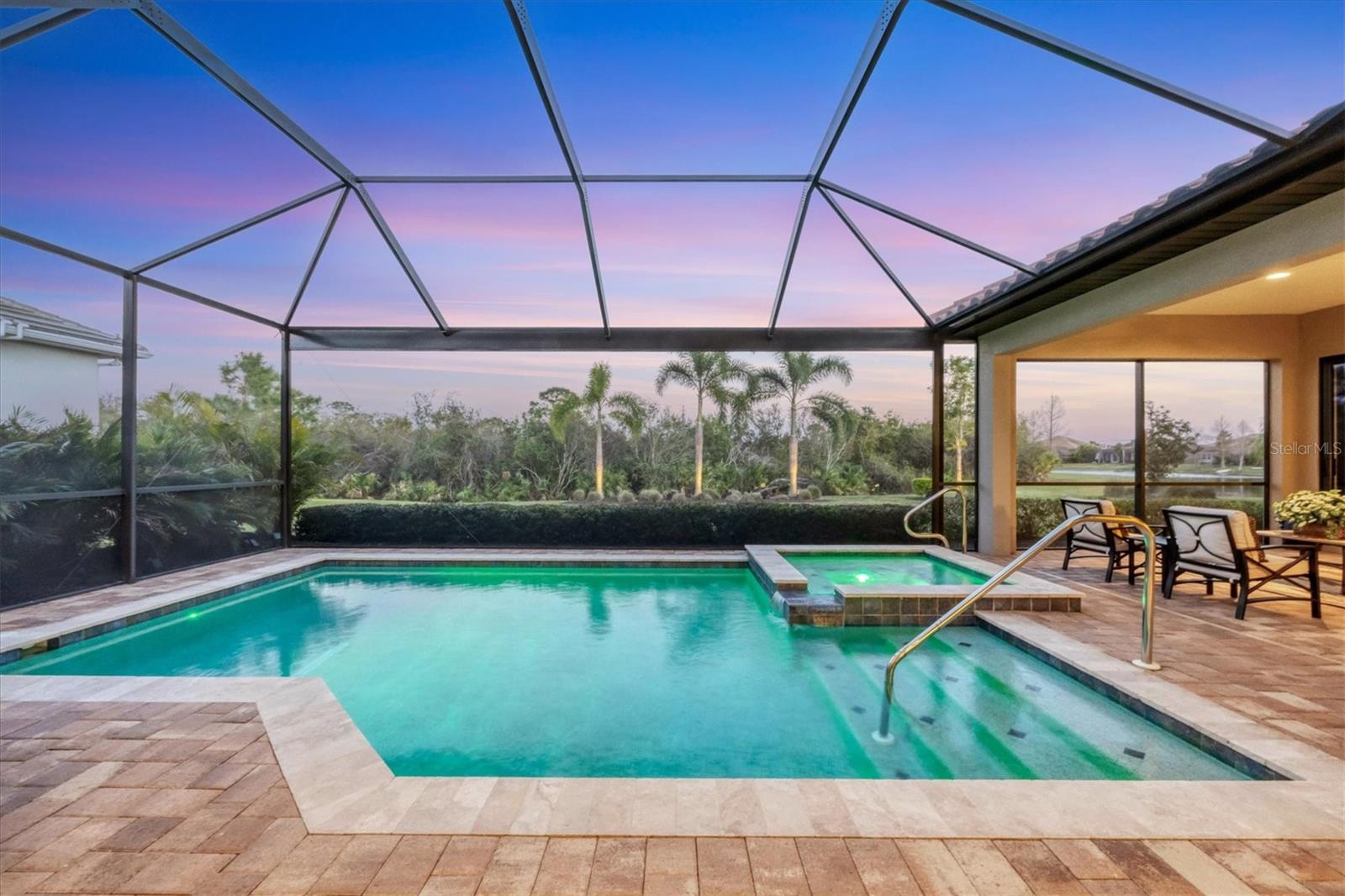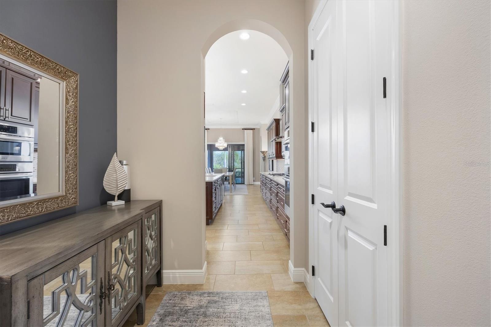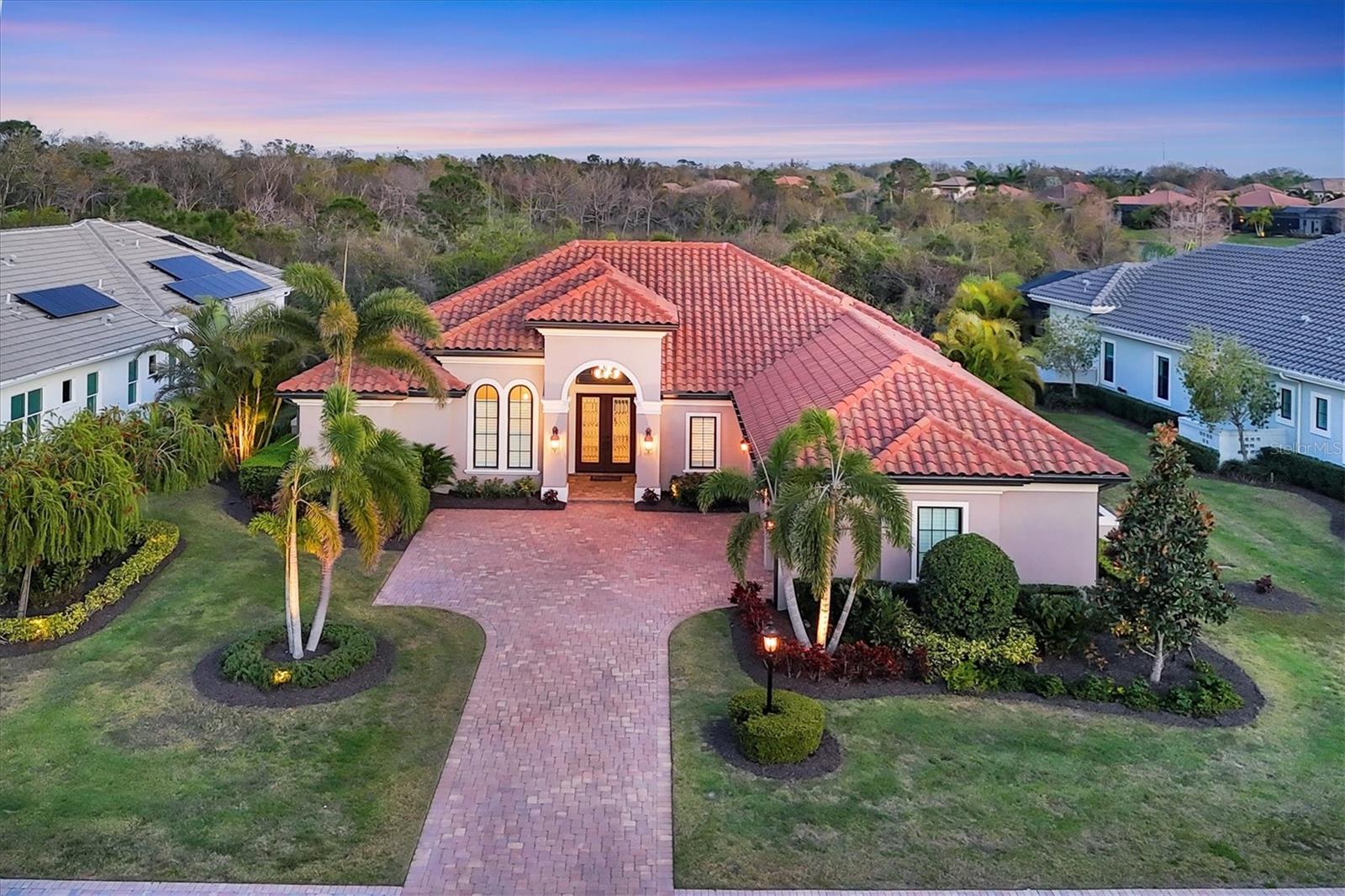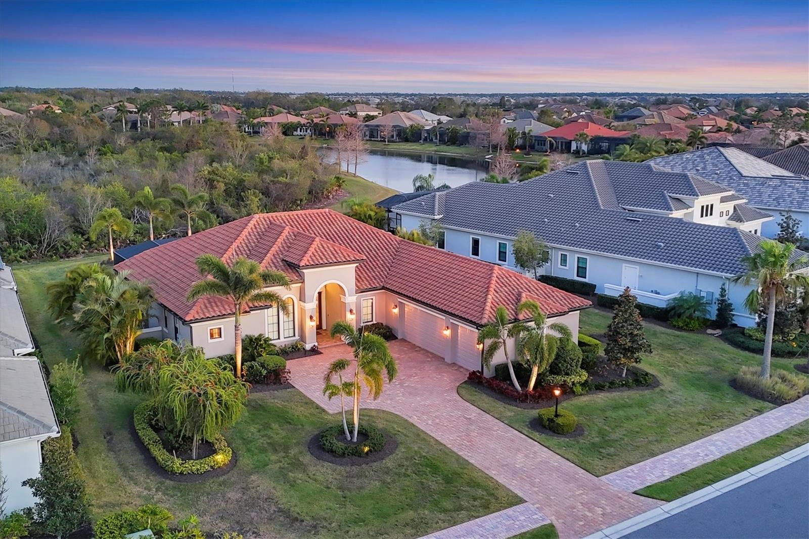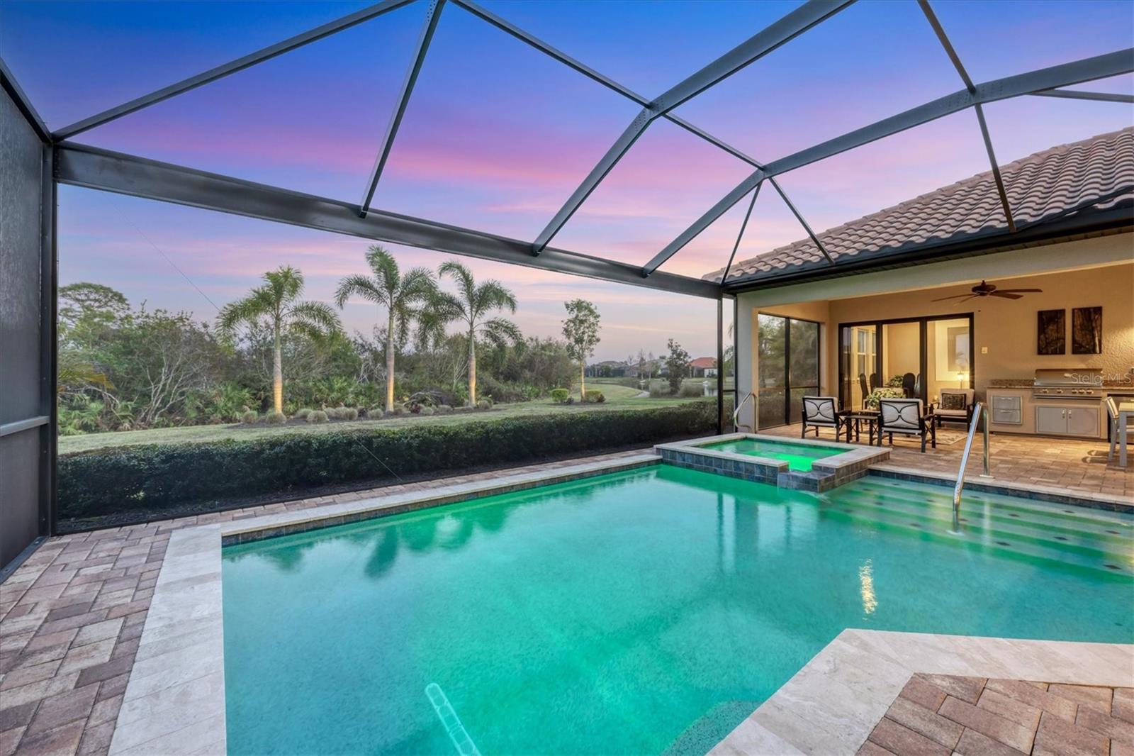 Spectacular four-bedroom, four-bath home plus study with incredible preserve and lake view, an extended driveway on a beautiful cul-de-sac. This custom John Cannon masterpiece, in the exclusive gated enclave of Country Club East, sets a new standard in luxury living. Upon entry through double glass front doors, you are greeted by an expansive, light-filled layout boasting 12-foot ceilings adorned with crown molding, custom lighting and designer window treatments. With impact doors and windows throughout, a whole-house generator and in-wall pest control, every modern convenience and safety feature has been meticulously addressed. The gourmet chef's kitchen is a culinary haven, featuring a large island, Sub-Zero refrigerator, walk-in pantry, and exquisite wood cabinetry, complemented by a spacious dining area ideal for elegant entertaining. The primary suite is a serene retreat offering custom dual walk-in closets, refined crown molding, tile floors and a French door that opens gracefully onto the lanai. Its spa-inspired bath delights with dual sinks, a designer backsplash, granite countertops, an expansive shower, a private water closet and a luxurious soaking tub. Additional accommodations include a private study with French doors and wood floors, and two gracious guest suites complete with en-suite baths and walk-in closets, plus a versatile room with an adjacent full pool bath presenting the option of a fourth bedroom or bonus room. Step outside to the remarkable outdoor space, where an expansive lanai awaits. Entertain in style with an outdoor kitchen and a saltwater heated pool and spa, enhanced by a newly installed 20-by-20-foot no-see-um mesh panoramic screen. A large backyard, with the option to add a fence, provides spectacular views of the preserve and water, creating a private oasis. Further enhancements include epoxy flooring in the three-car garage, sophisticated landscape lighting, icynene insulation, a tankless water heater, a four-zone air-conditioning system, a freshly painted interior and desirable green home certification. The community itself is replete with exceptional amenities including on-site security, three community pools, a clubhouse, optional golf and Country Club membership, a restaurant, gym and dog park. This residence seamlessly marries meticulous craftsmanship with unmatched luxury, inviting you to experience a refined lifestyle at every turn.