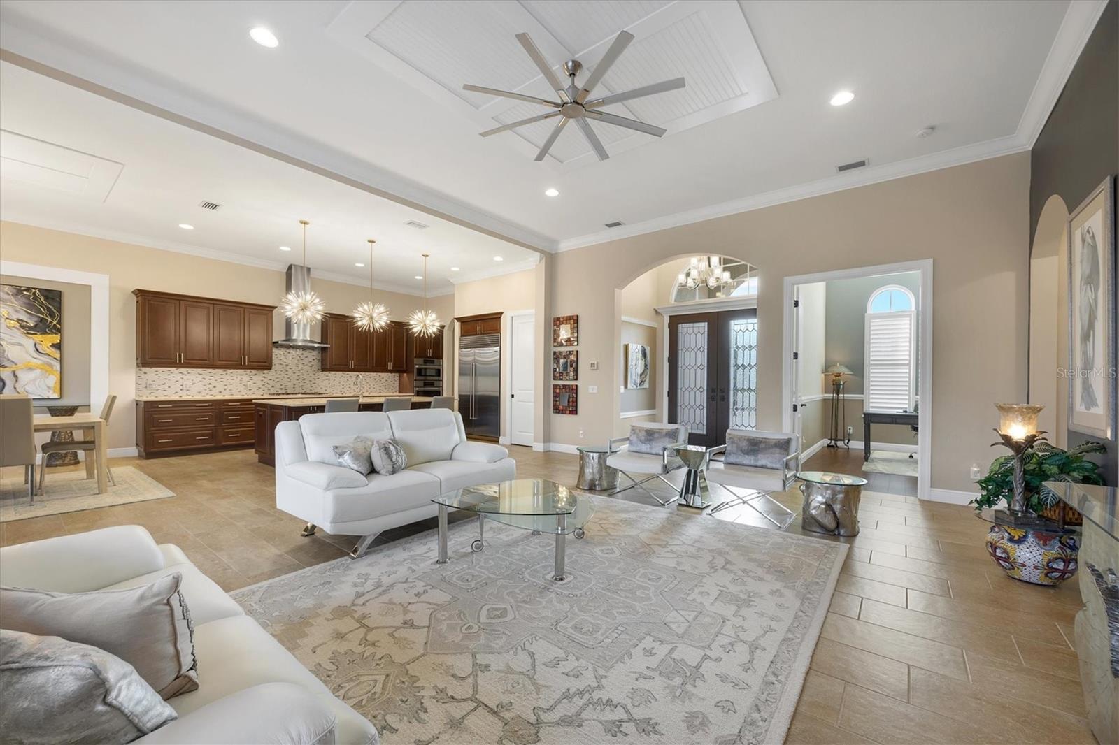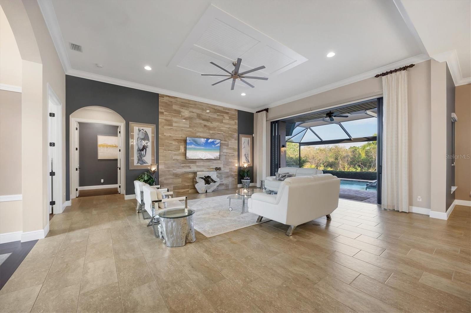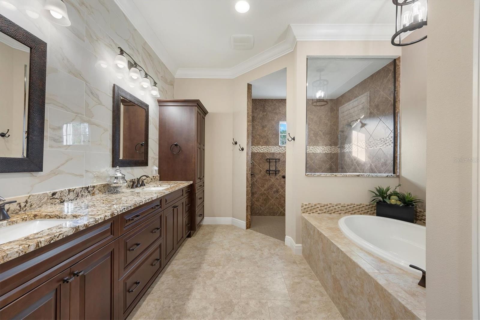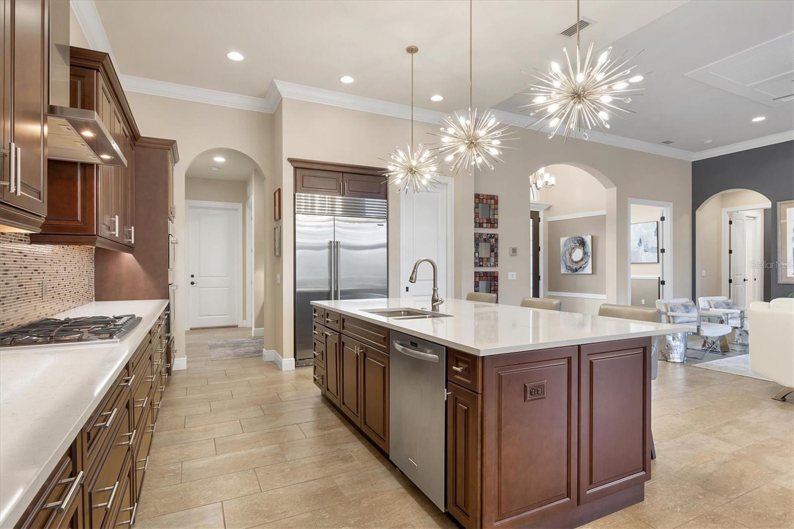 Spectacular four-bedroom, four-bath home plus study with incredible preserve and lake view, an extended driveway on a beautiful cul-de-sac. This custom John Cannon masterpiece, in the exclusive gated enclave of Country Club East, sets a new standard in luxury living. Upon entry through double glass front doors, you are greeted by an expansive, light-filled layout boasting 12-foot ceilings adorned with crown molding, custom lighting and designer window treatments. With impact doors and windows throughout, a whole-house generator and in-wall pest control, every modern convenience and safety feature has been meticulously addressed. The gourmet chef's kitchen is a culinary haven, featuring a large island, Sub-Zero refrigerator, walk-in pantry, and exquisite wood cabinetry, complemented by a spacious dining area ideal for elegant entertaining. The primary suite is a serene retreat offering custom dual walk-in closets, refined crown molding, tile floors and a French door that opens gracefully onto the lanai. Its spa-inspired bath delights with dual sinks, a designer backsplash, granite countertops, an expansive shower, a private water closet and a luxurious soaking tub. Additional accommodations include a private study with French doors and wood floors, and two gracious guest suites complete with en-suite baths and walk-in closets, plus a versatile room with an adjacent full pool bath presenting the option of a fourth bedroom or bonus room. Step outside to the remarkable outdoor space, where an expansive lanai awaits. Entertain in style with an outdoor kitchen and a saltwater heated pool and spa, enhanced by a newly installed 20-by-20-foot no-see-um mesh panoramic screen. A large backyard, with the option to add a fence, provides spectacular views of the preserve and water, creating a private oasis. Further enhancements include epoxy flooring in the three-car garage, sophisticated landscape lighting, icynene insulation, a tankless water heater, a four-zone air-conditioning system, a freshly painted interior and desirable green home certification. The community itself is replete with exceptional amenities including on-site security, three community pools, a clubhouse, optional golf and Country Club membership, a restaurant, gym and dog park. This residence seamlessly marries meticulous craftsmanship with unmatched luxury, inviting you to experience a refined lifestyle at every turn.
