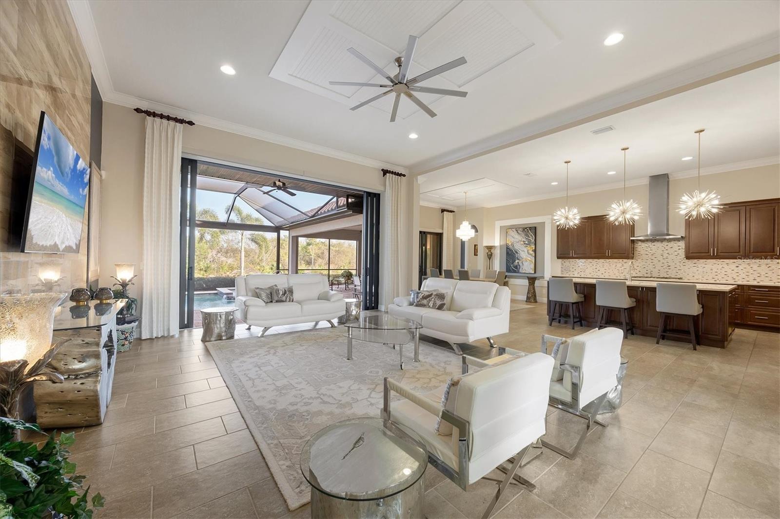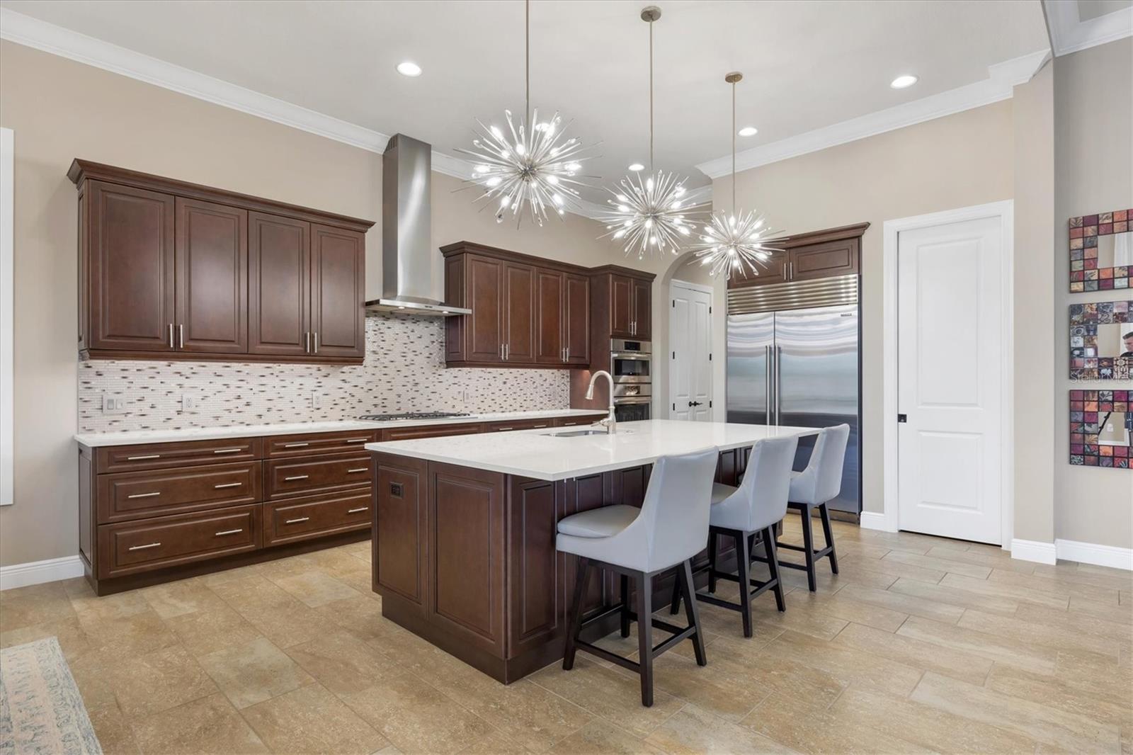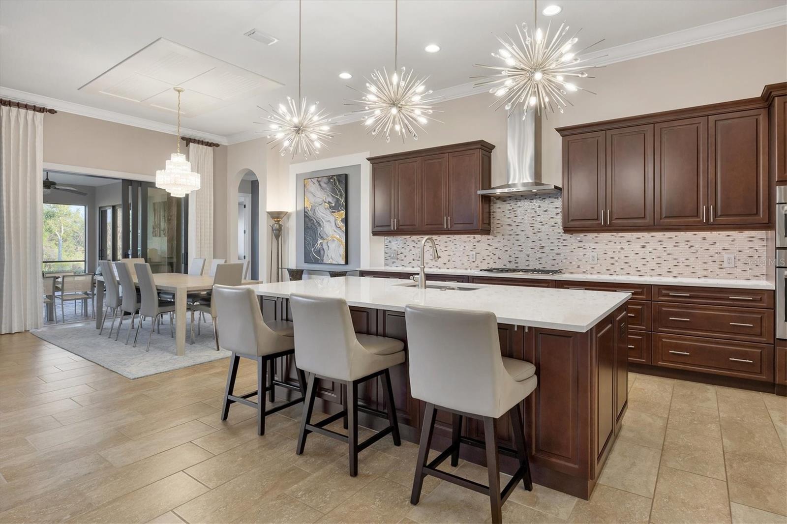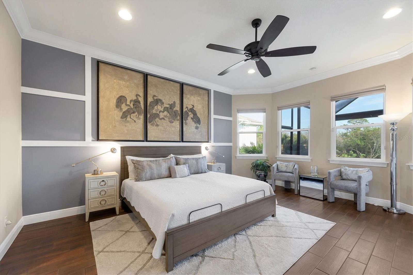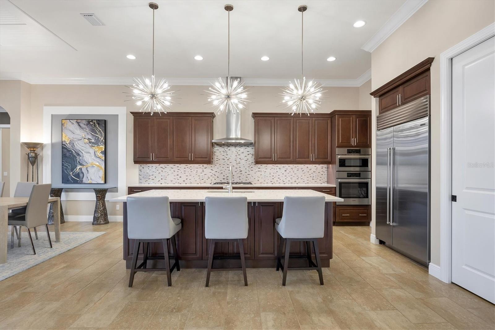 Spectacular four-bedroom, four-bath home plus study with incredible preserve and lake view, an extended driveway on a beautiful cul-de-sac. This custom John Cannon masterpiece, in the exclusive gated enclave of Country Club East, sets a new standard in luxury living. Upon entry through double glass front doors, you are greeted by an expansive, light-filled layout boasting 12-foot ceilings adorned with crown molding, custom lighting and designer window treatments. With impact doors and windows throughout, a whole-house generator and in-wall pest control, every modern convenience and safety feature has been meticulously addressed. The gourmet chef's kitchen is a culinary haven, featuring a large island, Sub-Zero refrigerator, walk-in pantry, and exquisite wood cabinetry, complemented by a spacious dining area ideal for elegant entertaining. The primary suite is a serene retreat offering custom dual walk-in closets, refined crown molding, tile floors and a French door that opens gracefully onto the lanai. Its spa-inspired bath delights with dual sinks, a designer backsplash, granite countertops, an expansive shower, a private water closet and a luxurious soaking tub. Additional accommodations include a private study with French doors and wood floors, and two gracious guest suites complete with en-suite baths and walk-in closets, plus a versatile room with an adjacent full pool bath presenting the option of a fourth bedroom or bonus room. Step outside to the remarkable outdoor space, where an expansive lanai awaits. Entertain in style with an outdoor kitchen and a saltwater heated pool and spa, enhanced by a newly installed 20-by-20-foot no-see-um mesh panoramic screen. A large backyard, with the option to add a fence, provides spectacular views of the preserve and water, creating a private oasis. Further enhancements include epoxy flooring in the three-car garage, sophisticated landscape lighting, icynene insulation, a tankless water heater, a four-zone air-conditioning system, a freshly painted interior and desirable green home certification. The community itself is replete with exceptional amenities including on-site security, three community pools, a clubhouse, optional golf and Country Club membership, a restaurant, gym and dog park. This residence seamlessly marries meticulous craftsmanship with unmatched luxury, inviting you to experience a refined lifestyle at every turn.