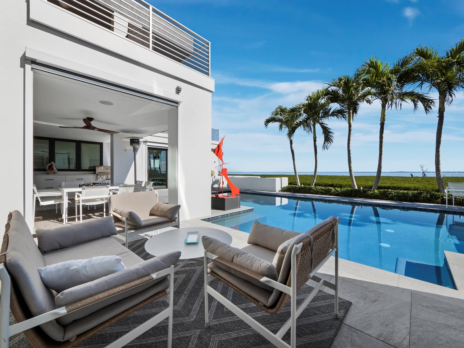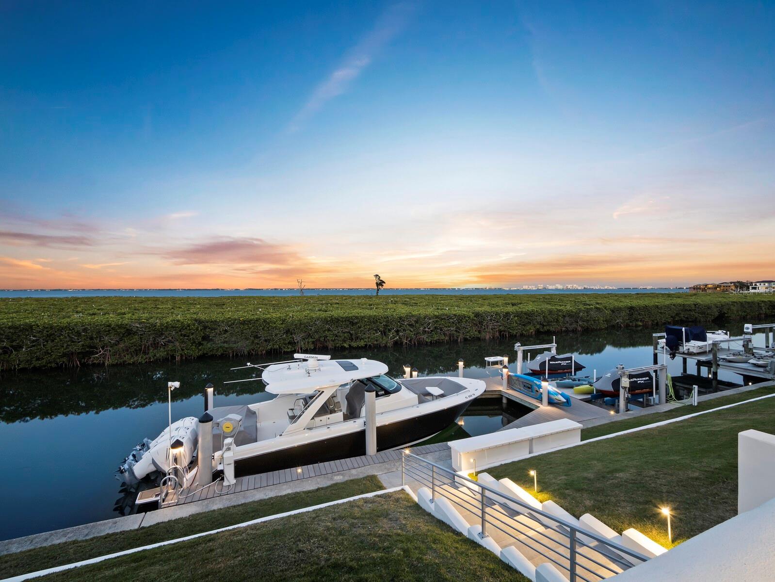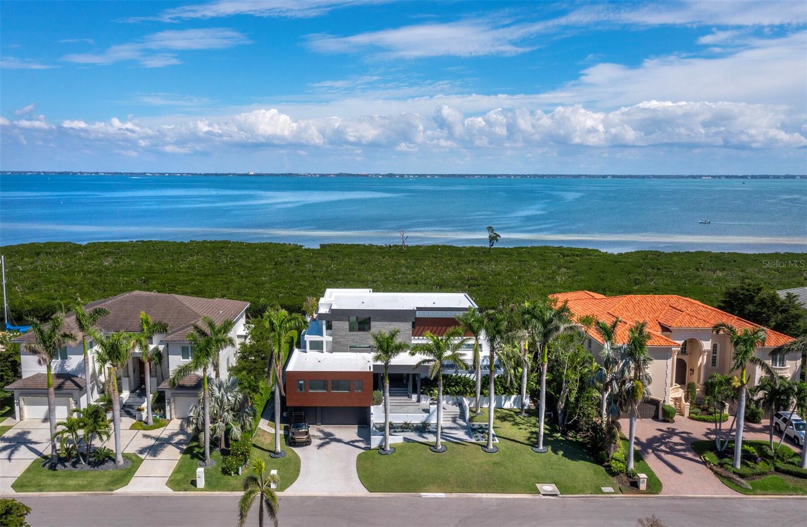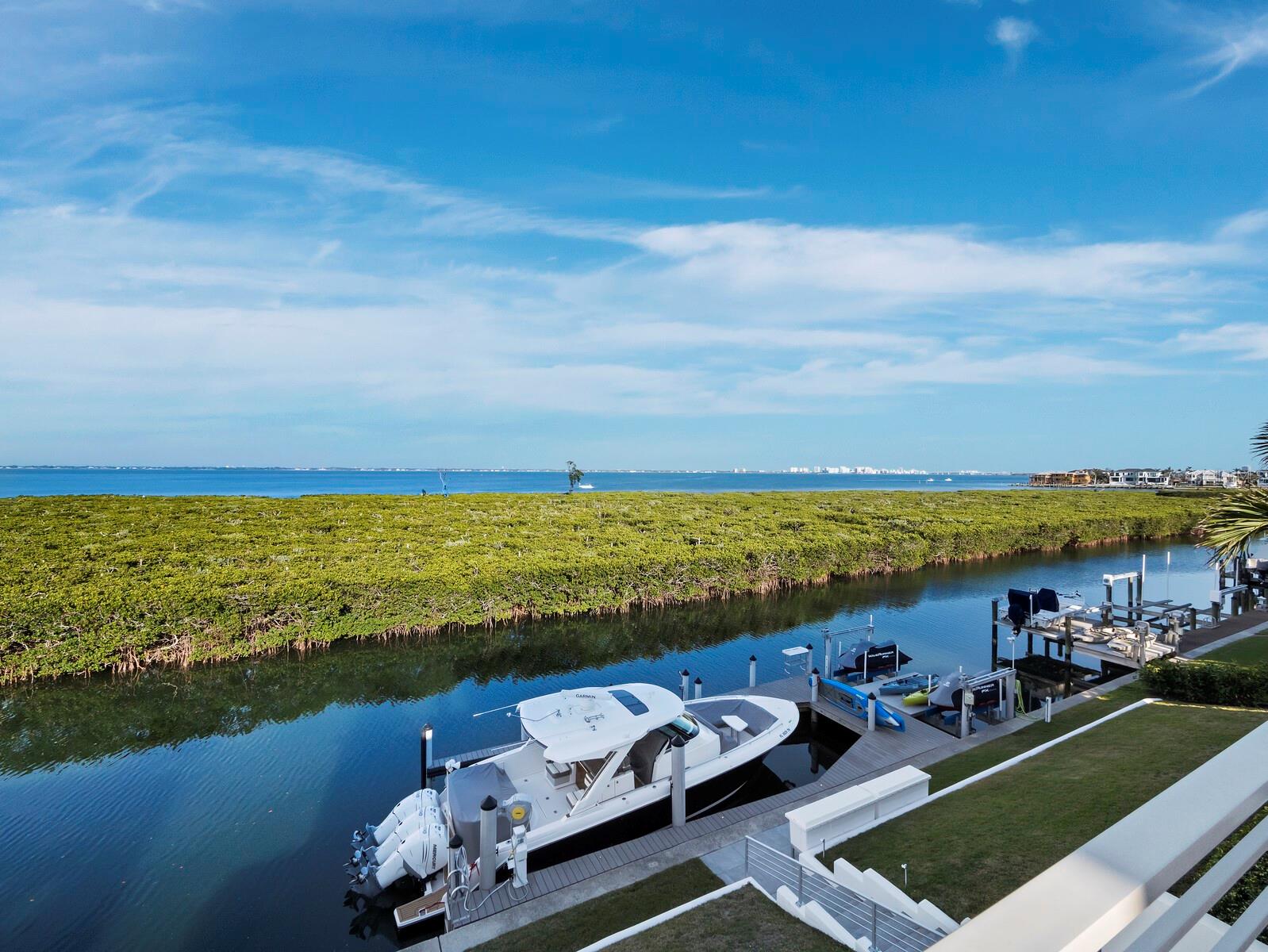 Exceptional Contemporary Bayfront Estate in Bay Isles Harbor Section Experience unparalleled luxury in this immaculate, organic-modern Bayfront estate in the esteemed Harbor Section of Bay Isles. This 6,349 sq. ft. 5-bedroom residence seamlessly blends minimalist design with warm organic touches - completely updated to current building code in 2017 and exterior refresh by DSDG architects in 2024/25Enjoy breathtaking, unobstructed bay views over a protected mangrove-lined rim canal, with the dramatic downtown Sarasota skyline as your backdrop. The open-concept design enhances natural light, while electric shades and roll-down screens extend the outdoor living space for year-round enjoyment. Boating enthusiasts will appreciate the fully appointed wide watersports updates on 100ft wide deep-water bay frontage with fast access to Sarasota Bay, the Intercoastal Waterway and Gulf of America. The top-level owner's suite is a private sanctuary, complete with an elevator, a spacious walk-in closet, and a spa-like bath featuring panoramic water views, dual shower heads, and body sprays. A second master suite on the main level boasts an ensuite bath with a chromotherapy and aromatherapy spa tub. Designed to showcase artwork dramatically, the home's layout is as functional as it is stunning. The expansive 3-car garage includes tandem space for additional vehicles and opens to a vast under-building storage/utility flex space. Residents of Bay Isles enjoy 24-hour manned guard gates, deeded access to the exclusive Bay Isles Beach Club, and proximity to Harbourside Golf Course and Longboat Key Club Moorings. Located in the most desirable section of Longboat Key, this residence is just a short distance from the highly anticipated St. Regis Resort and minutes from fine dining, shopping, and essential services.