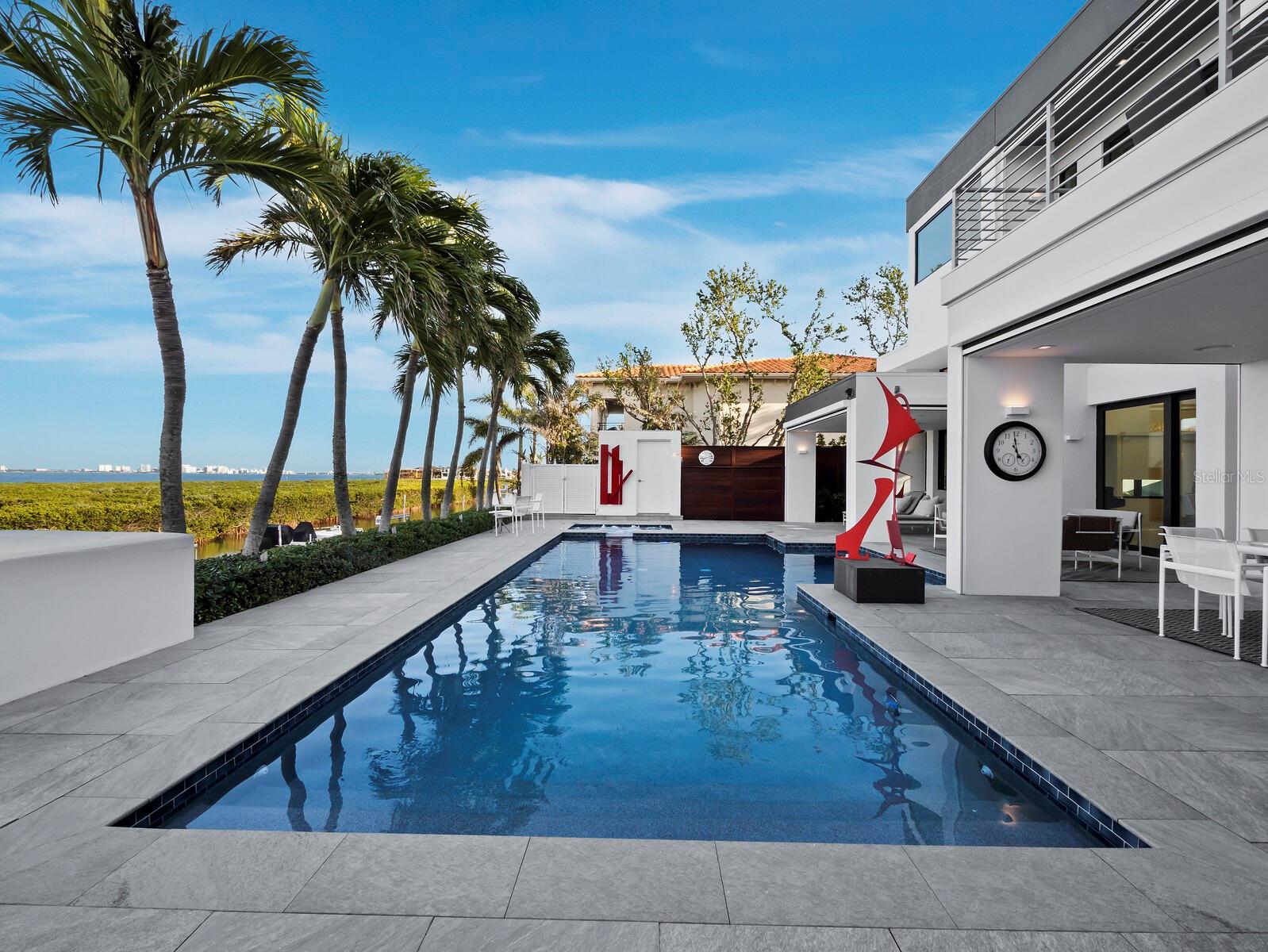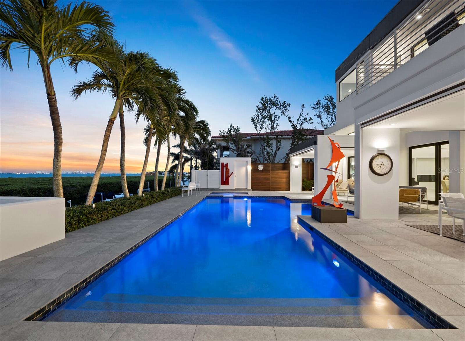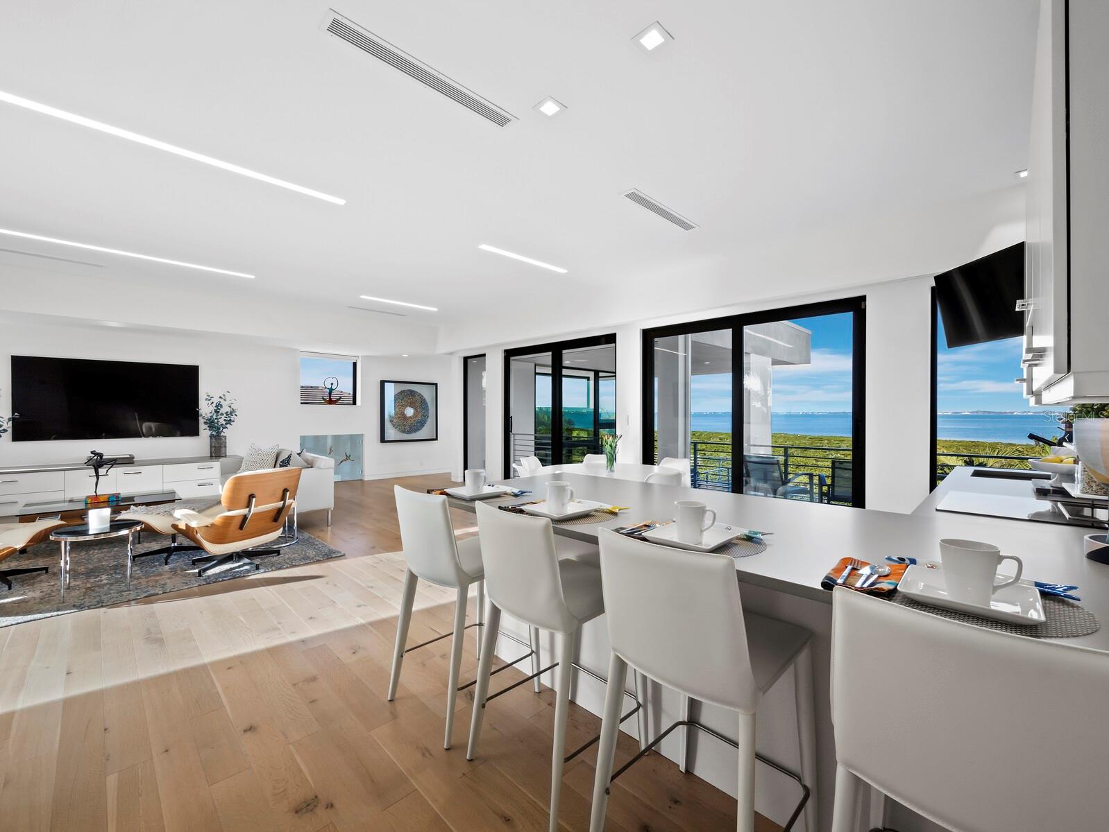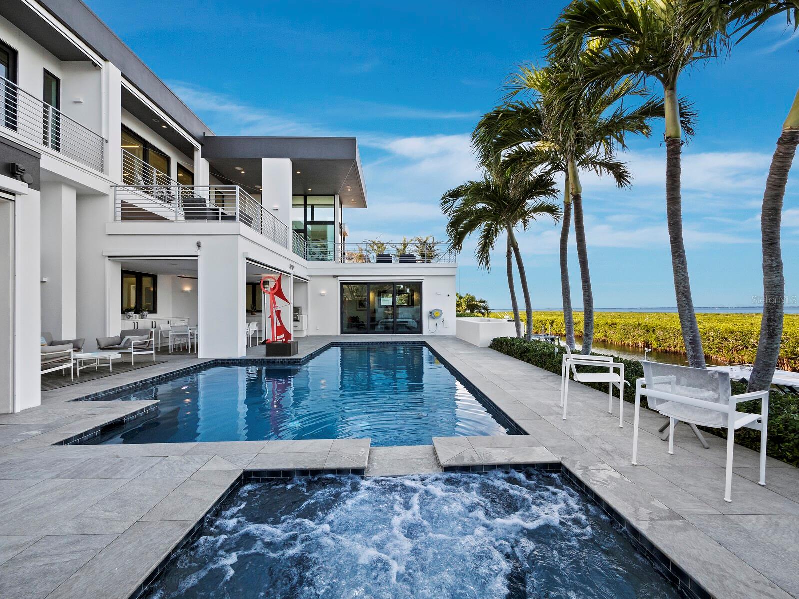 Exceptional Contemporary Bayfront Estate in Bay Isles Harbor Section Experience unparalleled luxury in this immaculate, organic-modern Bayfront estate in the esteemed Harbor Section of Bay Isles. This 6,349 sq. ft. 5-bedroom residence seamlessly blends minimalist design with warm organic touches - completely updated to current building code in 2017 and exterior refresh by DSDG architects in 2024/25Enjoy breathtaking, unobstructed bay views over a protected mangrove-lined rim canal, with the dramatic downtown Sarasota skyline as your backdrop. The open-concept design enhances natural light, while electric shades and roll-down screens extend the outdoor living space for year-round enjoyment. Boating enthusiasts will appreciate the fully appointed wide watersports updates on 100ft wide deep-water bay frontage with fast access to Sarasota Bay, the Intercoastal Waterway and Gulf of America. The top-level owner's suite is a private sanctuary, complete with an elevator, a spacious walk-in closet, and a spa-like bath featuring panoramic water views, dual shower heads, and body sprays. A second master suite on the main level boasts an ensuite bath with a chromotherapy and aromatherapy spa tub. Designed to showcase artwork dramatically, the home's layout is as functional as it is stunning. The expansive 3-car garage includes tandem space for additional vehicles and opens to a vast under-building storage/utility flex space. Residents of Bay Isles enjoy 24-hour manned guard gates, deeded access to the exclusive Bay Isles Beach Club, and proximity to Harbourside Golf Course and Longboat Key Club Moorings. Located in the most desirable section of Longboat Key, this residence is just a short distance from the highly anticipated St. Regis Resort and minutes from fine dining, shopping, and essential services.