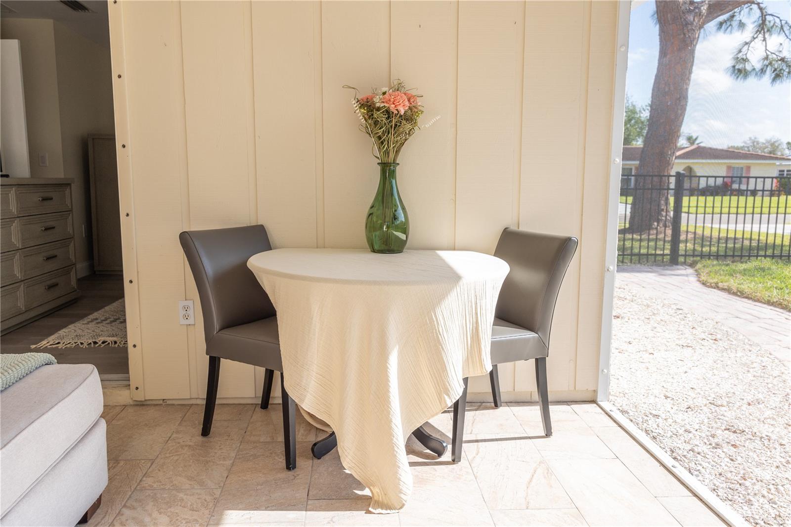 Welcome to your personal oasis, a serene retreat nestled in the heart of nature's beauty. This enchanting property offers a perfect blend of tranquility and comfort, inviting you to escape the hustle and bustle of everyday life.As you step inside, you'll be greeted by an abundance of natural light that highlights the spacious floor plan. The inviting living area features large, panoramic windows that allow you to gaze upon the lush greenery surrounding you. Imagine sipping your morning coffee while basking in the peaceful ambiance of this idyllic setting.The gourmet kitchen, equipped with modern appliances and elegant finishes, overlooks the private outdoor patio--a cozy space ideal for alfresco dining or simply unwinding under the stars. The carefully landscaped garden is a true sanctuary, complete with vibrant flowers.Retreat to the luxurious master suite, where soft hues and plush furnishings provide the perfect escape. The en-suite bathroom, designed for relaxation, features a soaking tub where you can unwind after a long day, accompanied by the gentle sounds of the outdoors.Flood Zone X signifies that this property is in a low-risk area for flooding, providing peace of mind to potential homeowners. Notably, it has not experienced any hurricane damage from storms like Milton or Helene, ensuring that the home remains a safe and secure environment. This adds to the property's appeal, offering both a tranquil living space and reassurance against natural threats.Located just minutes from local amenities yet a world away from the noise, this home offers the ultimate blend of convenience and seclusion. This home is being offered fully furnished, allowing you to move in effortlessly and enjoy the beautifully curated decor and comfortable furnishings that enhance the overall atmosphere of tranquility. Each piece has been selected to complement the home's serene aesthetic, making it easy for you to settle in.Don't miss the opportunity to make this serene oasis your own. Experience a lifestyle where tranquility meets elegance, and every day feels like a getaway.