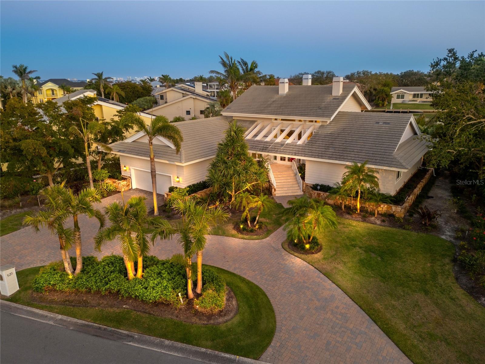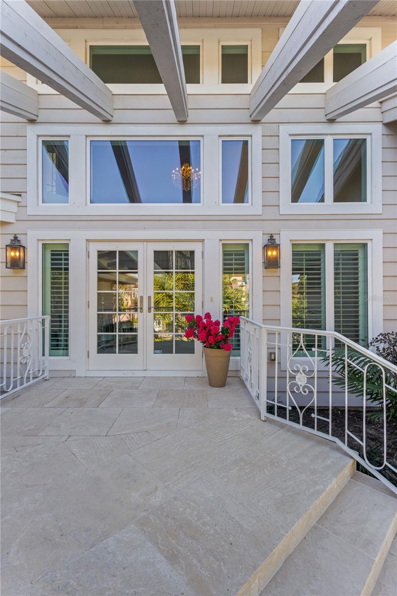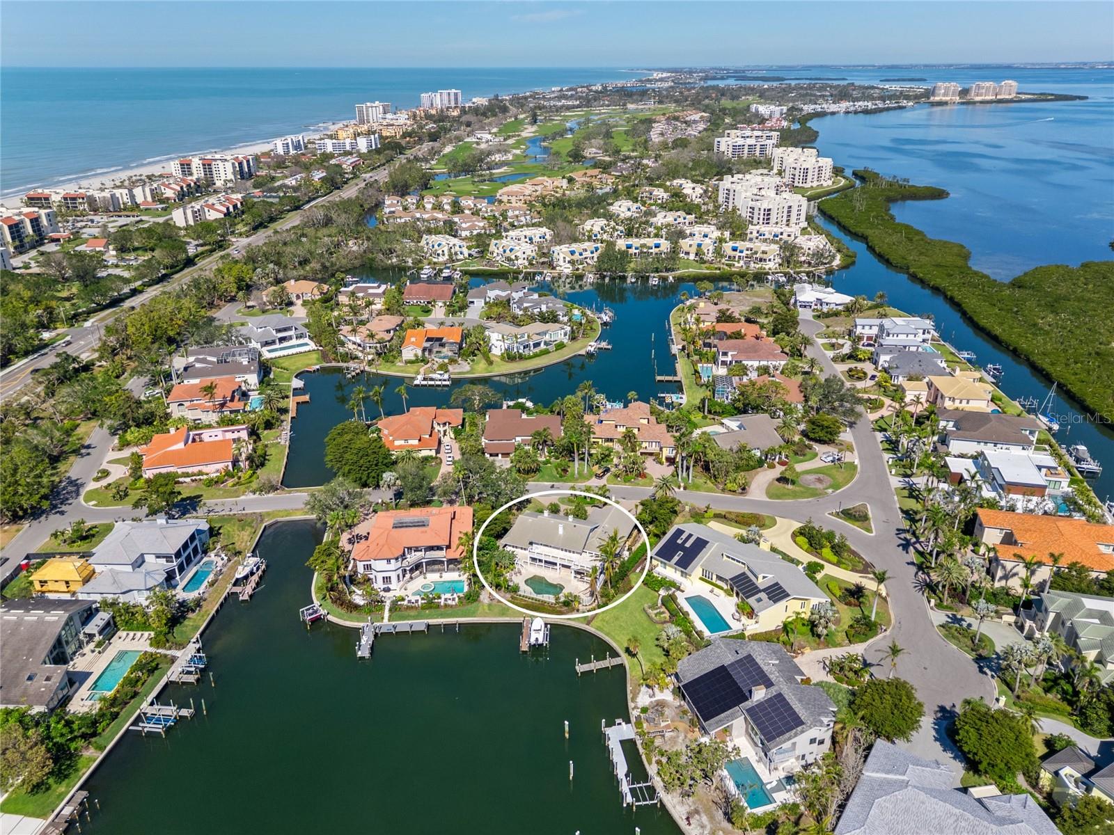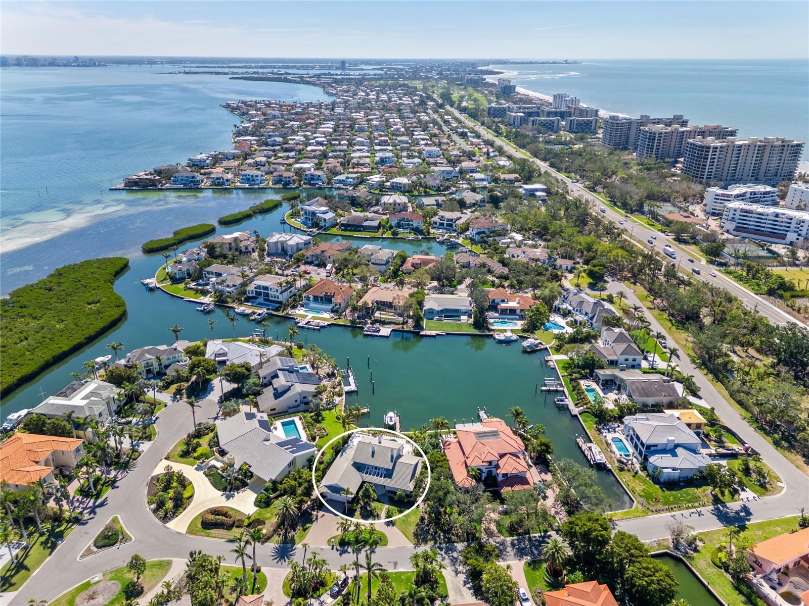 This exquisite two-story waterfront home located in the coveted Harbor section of Bay Isles has been meticulously renovated to embody modern elegance and luxurious coastal living. Surrounded by lush tropical landscaping, the home welcomes you through an elegant French door entrance into the grand foyer, where soaring ceilings, gleaming travertine flooring, and a striking wrought iron floating staircase with rich, dark wood steps set the tone for the refined elegance that unfolds throughout the home. The lower level boasts a bright and airy open space with hardwood floors throughout, creating a welcoming atmosphere that effortlessly combines sophistication with the timeless beauty of natural materials. The spacious family room is anchored by a stunning fireplace with decorative columns and an elegant mantel, complemented by French doors leading to the expansive waterfront lanai, reinforcing the home's seamless connection to its stunning natural surroundings. A culinary enthusiast's dream, the generously sized kitchen features a large island with a waterfall granite countertop, custom cabinetry, ample storage space, and high-end stainless steel appliances, including a six-burner gas range and double ovens. Adjacent to the kitchen, the dining area and great room spaces flow seamlessly into each other. The great room is both grand and inviting, showcasing a dramatic wood-clad cathedral ceiling that adds warmth and character. A second stone fireplace enhances the ambiance, while three sets of French doors that open onto the lanai offer an effortless transition between indoor and outdoor living. Also on this level are two generous guest suites, each with a full bath, one with direct lanai access, and a den with full bath. Upstairs, the primary suite is a true retreat. Floor-to-ceiling windows illuminate the space, and French doors open to a spacious private balcony, offering captivating water views that create a peaceful escape. A cozy fireplace adds to the intimate atmosphere, while the spa-inspired en-suite bath indulges with marble flooring, soaking tub, dual vanities, frameless glass walk-in shower, and water closet, all overlooking the serene waterway. The outdoor living space is equally spectacular, designed for both relaxation and entertaining. The expansive lanai features multiple covered areas with a rich wood-clad ceiling and retractable screens, a sun-drenched open-air section, and a stunning saltwater pool with travertine decking framed by verdant tropical landscaping. Just beyond the pool, a private dock with a boat lift sits on a deep-water basin and wide canal with no bridges to Sarasota Bay, offering quick and direct access for boating enthusiasts. Bay Isles Beach Club membership is included. This extraordinary home seamlessly blends elegance, comfort, and the unparalleled beauty of waterfront living, creating a sanctuary that is as functional as it is breathtaking.