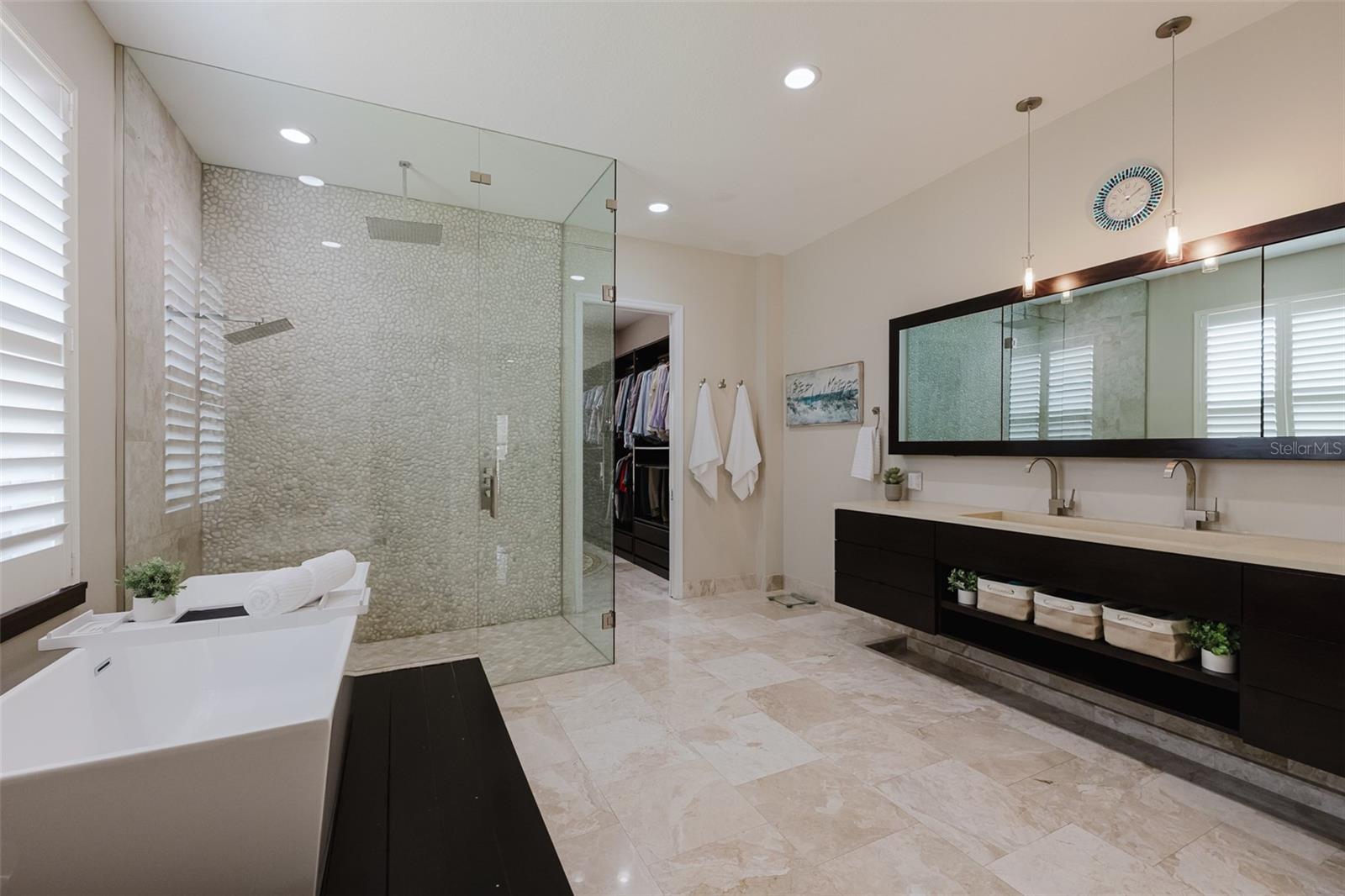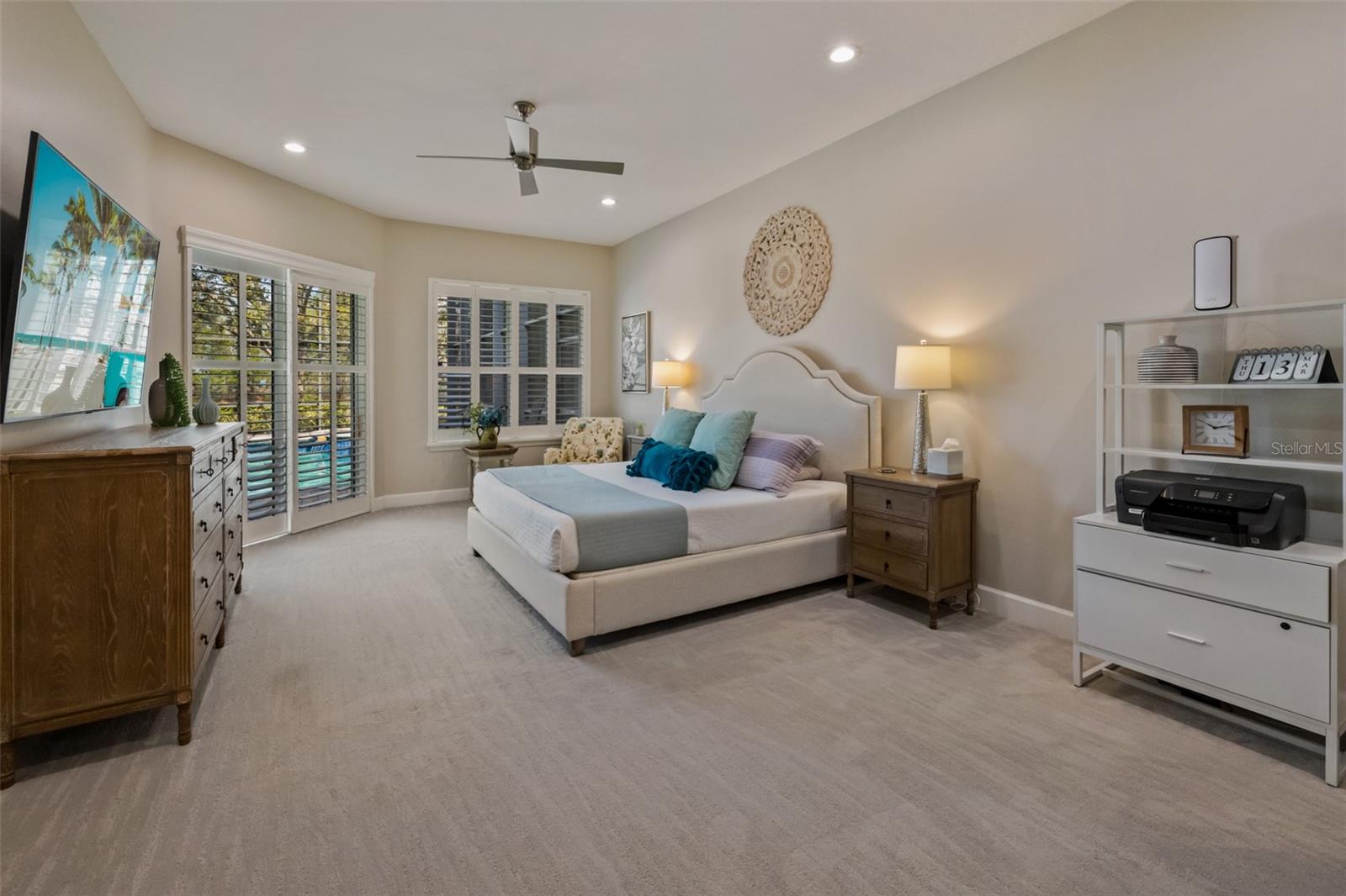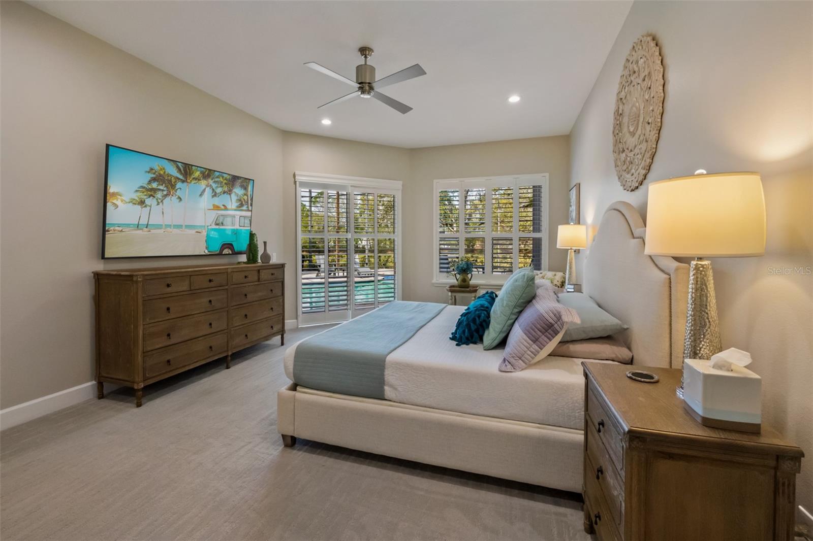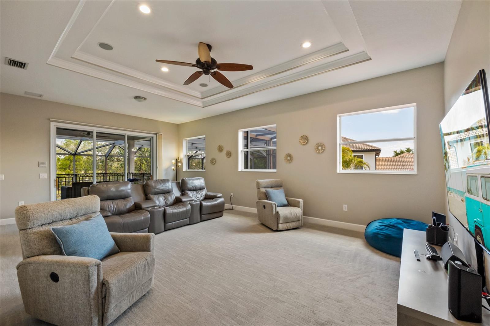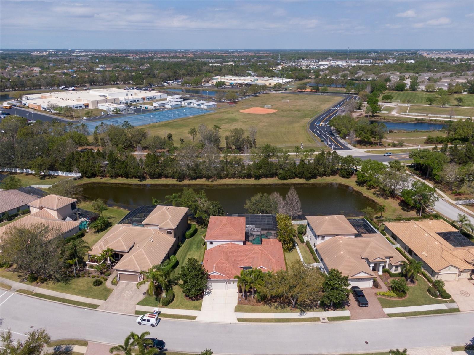Located in Greenbrook Preserve, this spacious 5-bedroom, 4-bath home plus bonus room and office offers over 4,050 sq. ft. under air (5,235 sq. ft. overall) with a two-story screened lanai, private balcony, pool, spa, and serene pond views.Upon entry, a combined living and dining room welcomes you with a soaring bay window that frames views of the lanai. The main floor is finished with stunning 18x18 Karya Royal marble flooring, which extends through the kitchen and family room, creating a seamless and elegant space. The chef's kitchen is designed for both style and function, featuring custom hardwood cabinetry, Cambria quartz countertops, a large center island, Bosch stainless steel appliances, custom stone backsplash, and a double wall pantry with slide-out shelving. The family room is designed for effortless indoor-outdoor living, featuring a full pocket corner sliding door that opens completely to the lanai, creating a seamless transition between the interior and outdoor spaces.The primary suite is a private retreat with a bay window seating area, direct lanai access, and a spa-inspired bath featuring a free-standing soaking tub over a Brazilian teak wood base, an oversized walk-in shower with dual heads and custom river stone accents, mood lighting under cabinets and soaking tub and a custom walk-in closet with built-in shelving. Two additional first-floor guest bedrooms feature custom built-in closet shelving and share access to two additional full baths. A dedicated office with direct lanai access provides a quiet workspace or flexible bonus space.Upstairs, a spacious bonus room is accompanied by two additional bedrooms, a full bath, and a private marble-floored balcony overlooking the resort-style pool and spa.The two-story screened lanai is designed to make the most of Florida's lifestyle, featuring a teakwood tongue-and-groove ceiling, a summer kitchen with a beverage fridge and sink, and peaceful pond views. Additional highlights include a barrel tile roof, plantation shutters, custom window treatments, a first-floor laundry room with shelving, wired for ADT Security System, Full Perimeter Electric Pet Fence, and a three-car garage with epoxy floors.Greenbrook Preserve is nestled within the award-winning master-planned community of Lakewood Ranch, offering an exceptional lifestyle with access to top-rated amenities. Residents enjoy two community parks, including Adventure Park, featuring sports fields, playgrounds, a dog park, a pavilion, in-line skating, and miles of scenic walking trails. This home is ideally situated just minutes from Waterside Place, Lakewood Ranch Main Street, and UTC's premier shopping and dining. With championship golf courses, top medical facilities, and the stunning Gulf Coast beaches nearby, plus quick access to I-75, Greenbrook Preserve combines convenience with Florida's sought-after outdoor lifestyle.