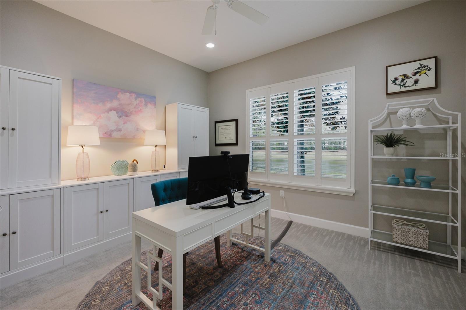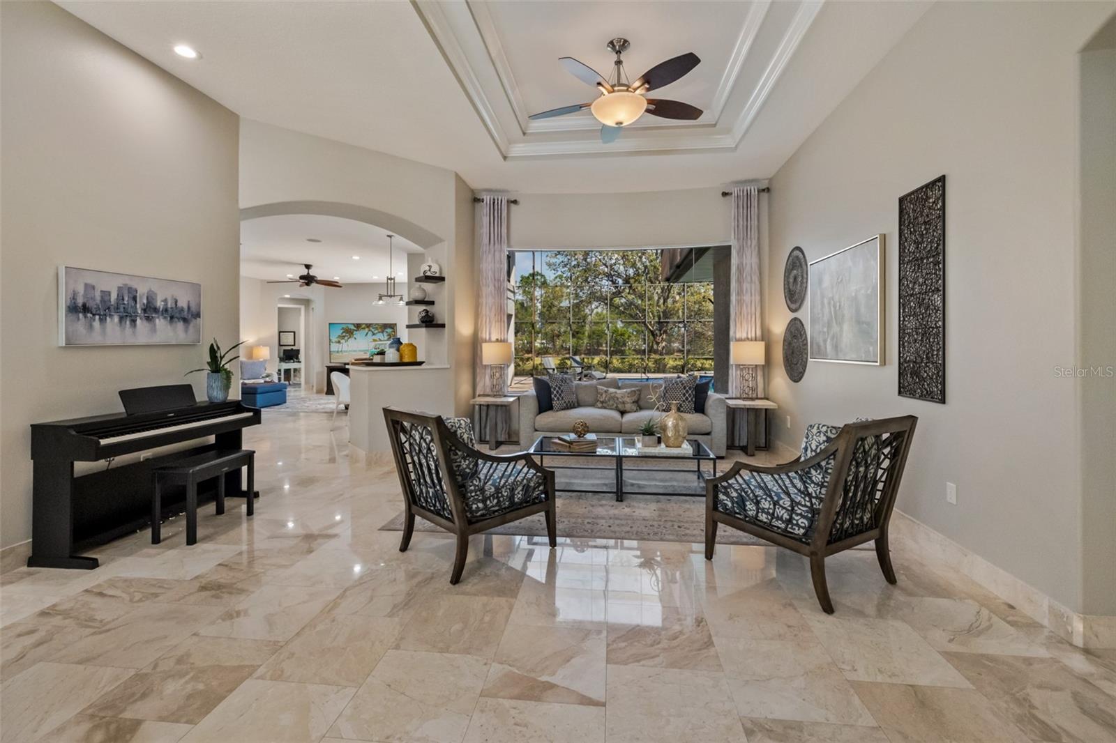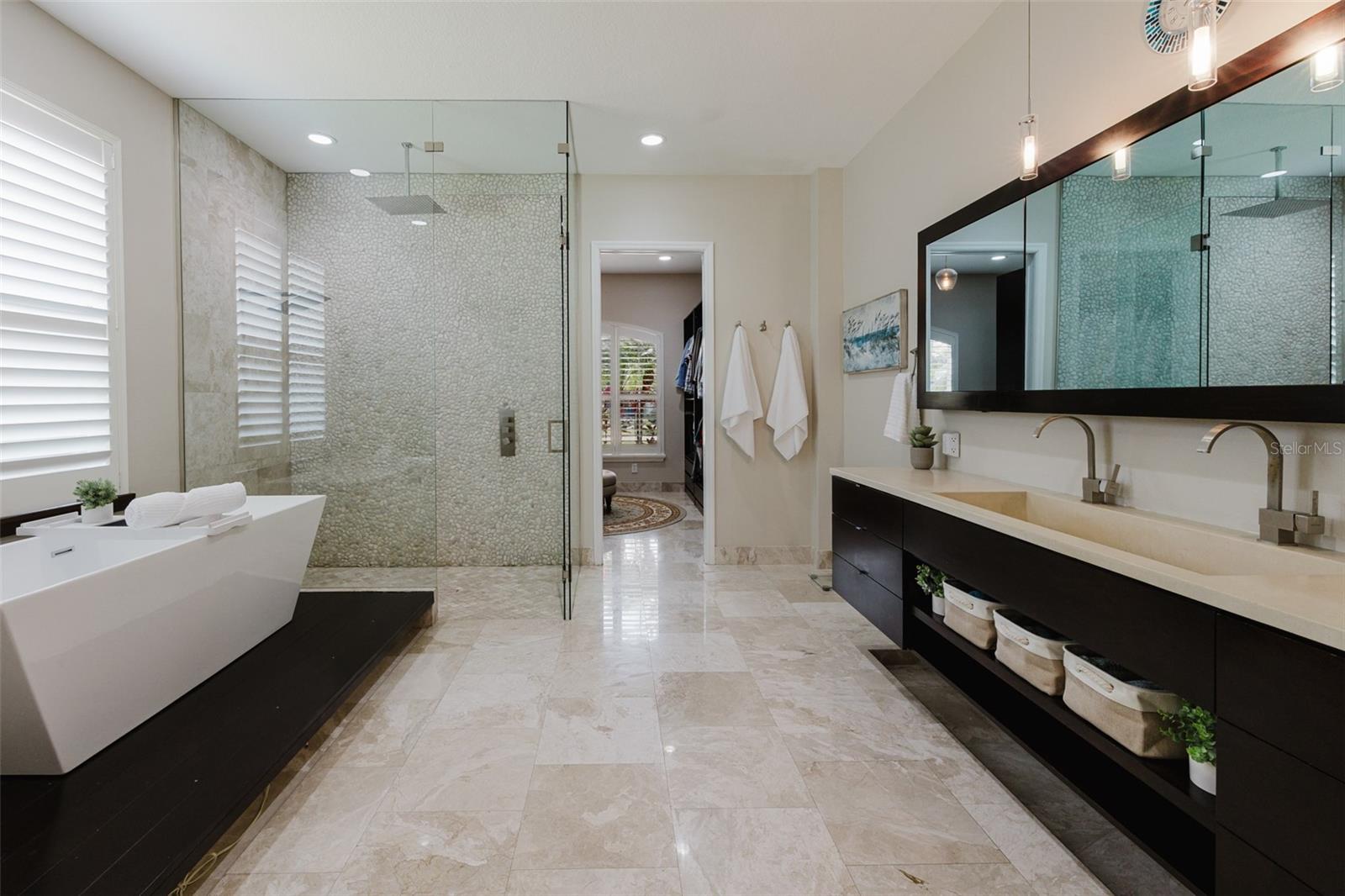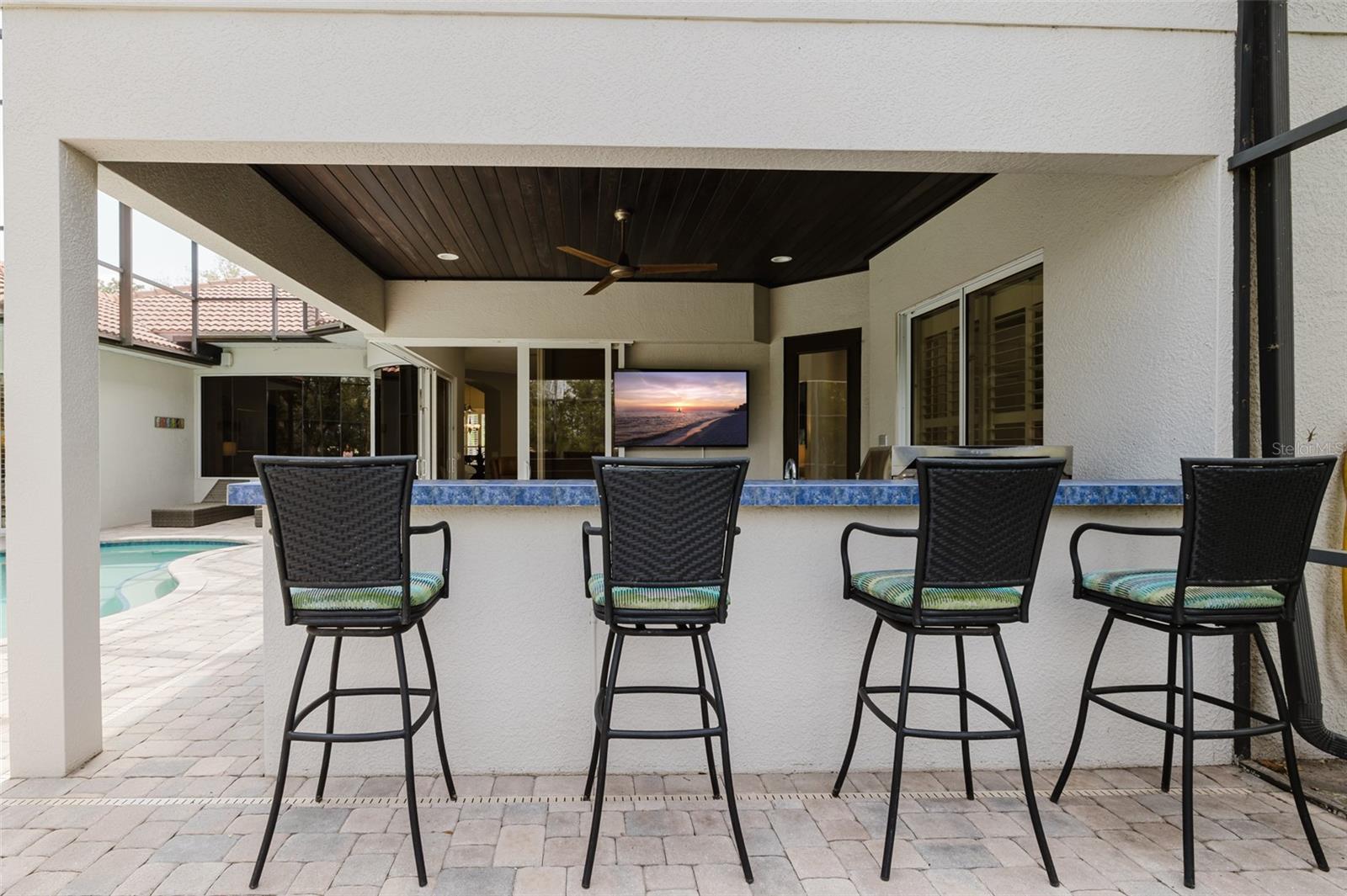 Located in Greenbrook Preserve, this spacious 5-bedroom, 4-bath home plus bonus room and office offers over 4,050 sq. ft. under air (5,235 sq. ft. overall) with a two-story screened lanai, private balcony, pool, spa, and serene pond views.Upon entry, a combined living and dining room welcomes you with a soaring bay window that frames views of the lanai. The main floor is finished with stunning 18x18 Karya Royal marble flooring, which extends through the kitchen and family room, creating a seamless and elegant space. The chef's kitchen is designed for both style and function, featuring custom hardwood cabinetry, Cambria quartz countertops, a large center island, Bosch stainless steel appliances, custom stone backsplash, and a double wall pantry with slide-out shelving. The family room is designed for effortless indoor-outdoor living, featuring a full pocket corner sliding door that opens completely to the lanai, creating a seamless transition between the interior and outdoor spaces.The primary suite is a private retreat with a bay window seating area, direct lanai access, and a spa-inspired bath featuring a free-standing soaking tub over a Brazilian teak wood base, an oversized walk-in shower with dual heads and custom river stone accents, mood lighting under cabinets and soaking tub and a custom walk-in closet with built-in shelving. Two additional first-floor guest bedrooms feature custom built-in closet shelving and share access to two additional full baths. A dedicated office with direct lanai access provides a quiet workspace or flexible bonus space.Upstairs, a spacious bonus room is accompanied by two additional bedrooms, a full bath, and a private marble-floored balcony overlooking the resort-style pool and spa.The two-story screened lanai is designed to make the most of Florida's lifestyle, featuring a teakwood tongue-and-groove ceiling, a summer kitchen with a beverage fridge and sink, and peaceful pond views. Additional highlights include a barrel tile roof, plantation shutters, custom window treatments, a first-floor laundry room with shelving, wired for ADT Security System, Full Perimeter Electric Pet Fence, and a three-car garage with epoxy floors.Greenbrook Preserve is nestled within the award-winning master-planned community of Lakewood Ranch, offering an exceptional lifestyle with access to top-rated amenities. Residents enjoy two community parks, including Adventure Park, featuring sports fields, playgrounds, a dog park, a pavilion, in-line skating, and miles of scenic walking trails. This home is ideally situated just minutes from Waterside Place, Lakewood Ranch Main Street, and UTC's premier shopping and dining. With championship golf courses, top medical facilities, and the stunning Gulf Coast beaches nearby, plus quick access to I-75, Greenbrook Preserve combines convenience with Florida's sought-after outdoor lifestyle.