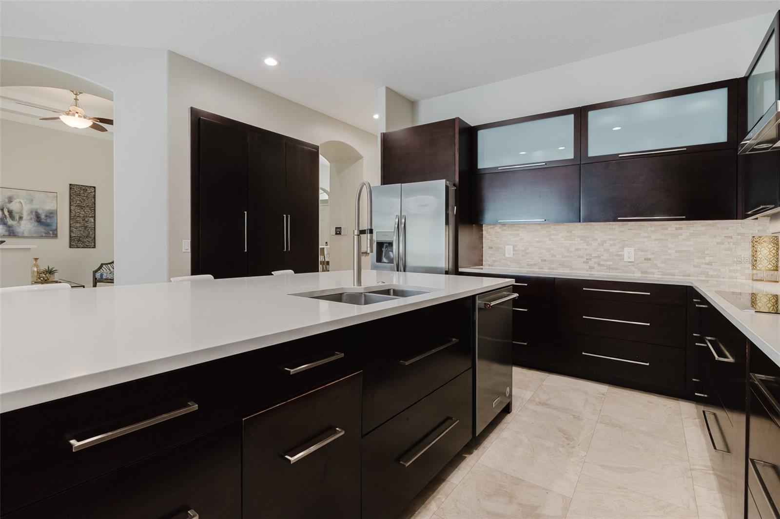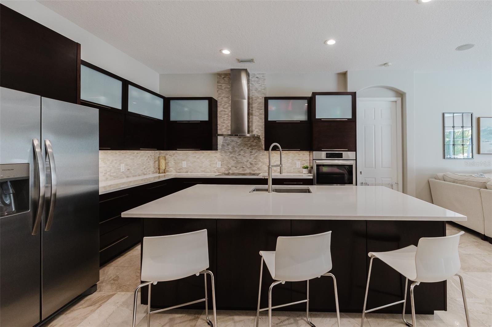 - Appliances: Bar Fridge, Built-In Oven, Convection Oven, Cooktop, Dishwasher, Disposal, Dryer, Gas Water Heater, Microwave, Range, Range Hood, Refrigerator, Washer, Wine Refrigerator
