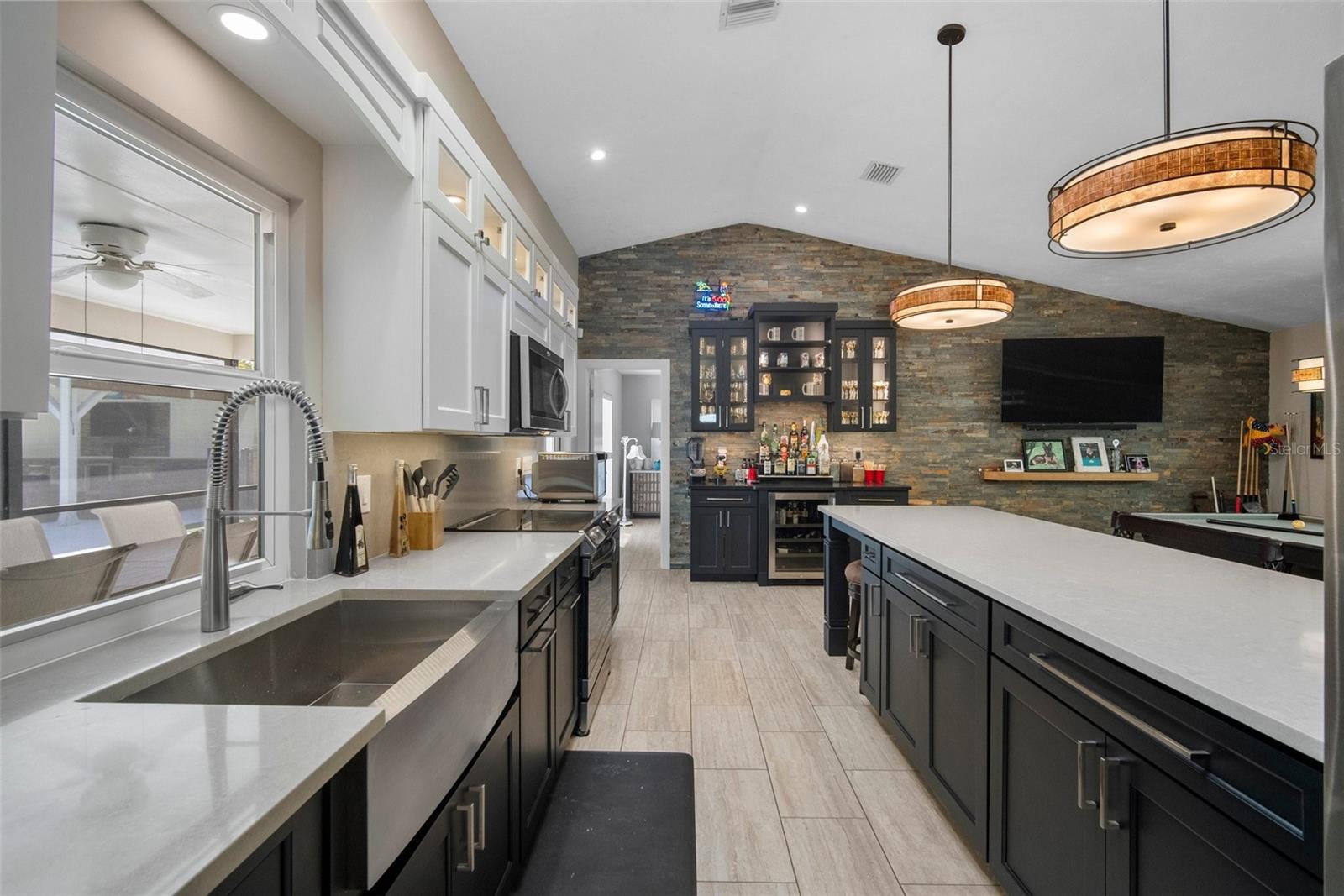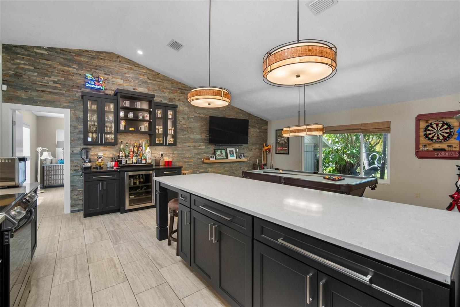 - Appliances: Bar Fridge, Dishwasher, Disposal, Dryer, Electric Water Heater, Microwave, Range, Refrigerator, Washer, Wine Refrigerator