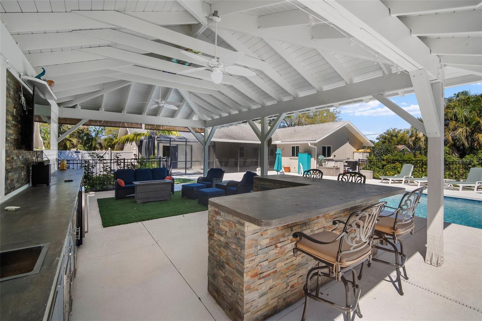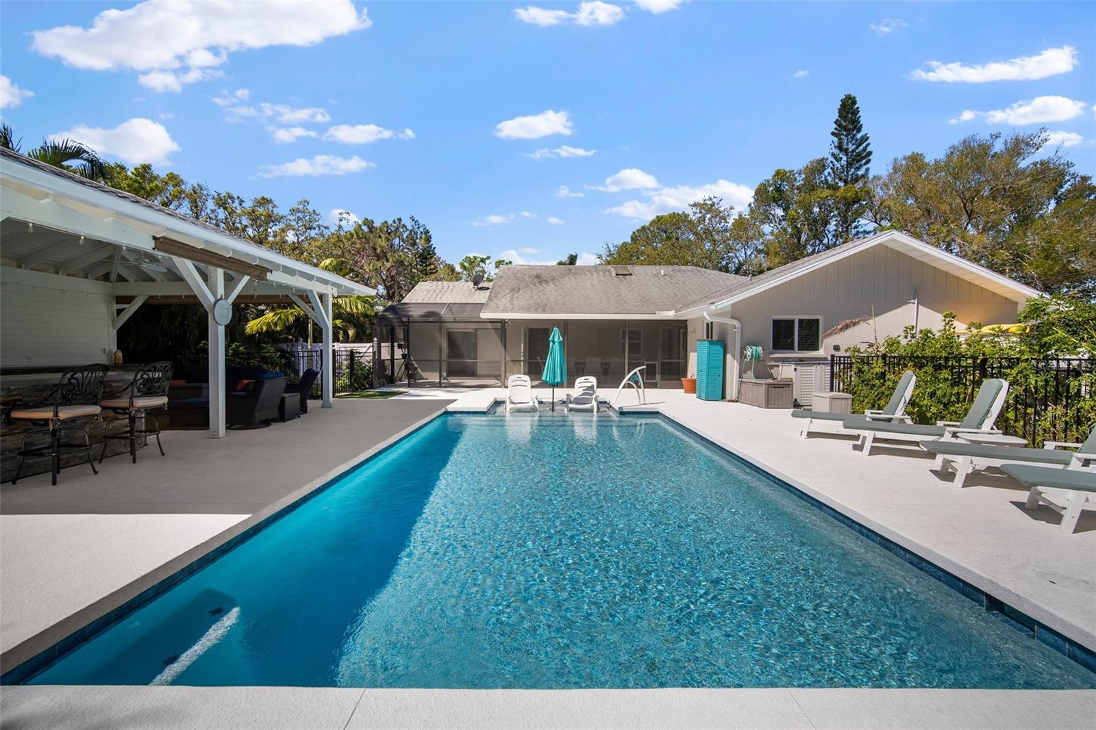 Must see the renovations in this totally updated home on over half an acre! The Kitchen and Bar area were renovated completely in 2022 with New Cabinets, Lighting, Quartz Countertops, Appliances. The Guest bath has a new vanity. Entire home was painted inside and out in 2022 and 2023. Pool and Pool heater were installed in 2022, Wait until you see it! It has a huge pavilion that would rival any HGTV pool with over 1200 SF of deck. The Pool pavilion has an outdoor bar, TV and lounge fire pit table. This pool pavilion is like visiting a 5 star resort. Driveway was widened in 2022. New fences for a completely private pool and back yard, great for keeping your furry friends safe and contained. The pool has an in-pool robot cleaning system. All wall mounted TVs convey. Tile Floors throughout. Must see! This home is situated on a quiet cul-de-sac in one of the best school districts in town. GO RIVERVIEW!
