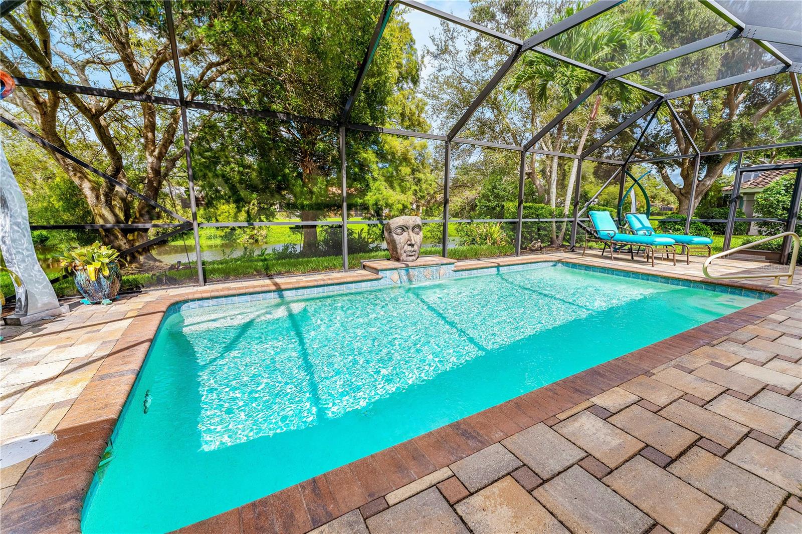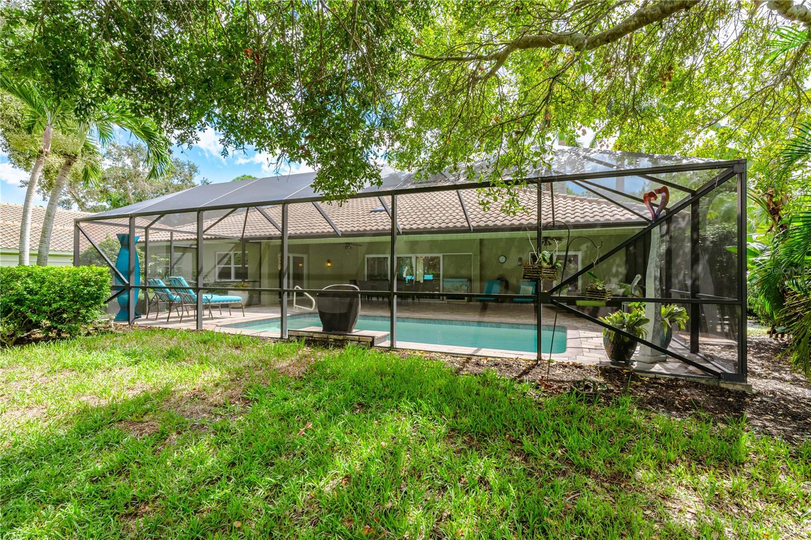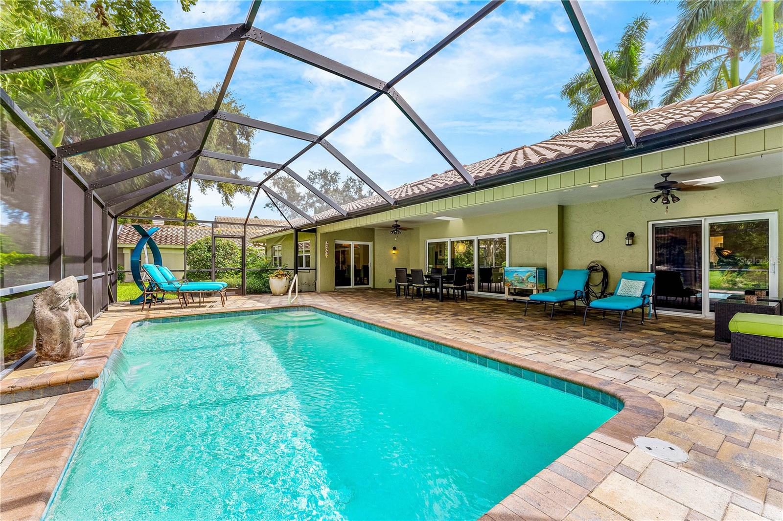 For Sale with immediate income opportunity: Tenant occupied w/ lease until March 2027. Immaculate lakefront pool home in the exclusive gated neighborhood of The Landings in South Sarasota. One of the few homes in The Landings situated on a lake with breathtaking sunset views over the heated pool and screened lanai. No flood insurance is required and absolutely no storm damage was sustained. Completely updated home boasting 3 bedrooms, plus laundry/office/massage room, 2 updated bathrooms and an oversized 2 car garage. Quartz countertops in the kitchen and stainless steel appliances will make you feel like a chef! Plenty of space for formal dining, in the dining area, on the extended pool deck or casual dining at the breakfast bar. All tile throughout, this home has been recently painted and meticulously maintained. The master bedroom offers 2 large walk in closets as well as direct access out on to the pool deck! The pool deck & back yard oasis is accessible by a wall of impact sliding glass doors, and your outdoor living space is now one with your indoor living. Covered porch with fans and screen allow for year round enjoyment. the home is offered unfurnished. Current furnishings belong to the tenant who has an excellent track record of on time payments and would love to stay. Coveted west of the trail location this home is an excellent investment opportunity. There is the option to use the onsite Landing's Racquet Club for a small fee. There is also an active tennis program with eight har tru clay courts, pool with spa, a fitness room and social activities. Landscaping has also been upgraded. Video Tour of the home available.