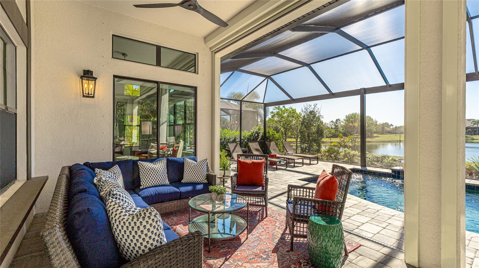 Welcome to this stunning Cardel Homes, custom-built Toriana model nestled in the Prestbury section of Country Club East in Lakewood Ranch. This exquisite 3-bedroom, 3-bathroom home with both a den and bonus room offers an unparalleled blend of elegance, comfort, and modern convenience. The primary suite is a true retreat, offering serene water views, a spa-like en-suite bath, and two generous walk-in closets for ample storage. Additional storage is thoughtfully designed throughout the home, including three oversized linen closets and a walk in pantry for convenience. From the moment you arrive, you'll be captivated by the home's picturesque water views and meticulously designed outdoor living space. The expansive lanai features a sparkling pool, ample room for entertaining or unwinding in your private oasis, and an outdoor kitchen with a bar fridge, gas grill, stove vent and a warming drawer. Equipped with hurricane screens, this space provides peace of mind and year-round enjoyment.Inside, the open-concept design is complemented by high-end finishes, soaring ceilings, and an abundance of natural light. The gourmet kitchen boasts custom cabinetry, a spacious island, and appliances including a built in oven, gas cooktop and a Nuvo H2O water filtration system, making it a chef's dream. The primary suite is a true retreat, offering serene water views, a spa-like en-suite bath, and generous closet space. This home can come mostly furnished for your convenience. Living in Country Club East means access to world-class amenities, including resort-style pools, fitness centers, walking trails, the Retreat Clubhouse and optional golf and social memberships at the world class Lakewood Ranch Country Club. Enjoy the convenience of being just minutes from top-rated schools, fine dining, shopping, and the beautiful Gulf Coast beaches.Don't miss this rare opportunity to own a piece of paradise in one of Lakewood Ranch's most sought-after communities. Schedule your private showing today!