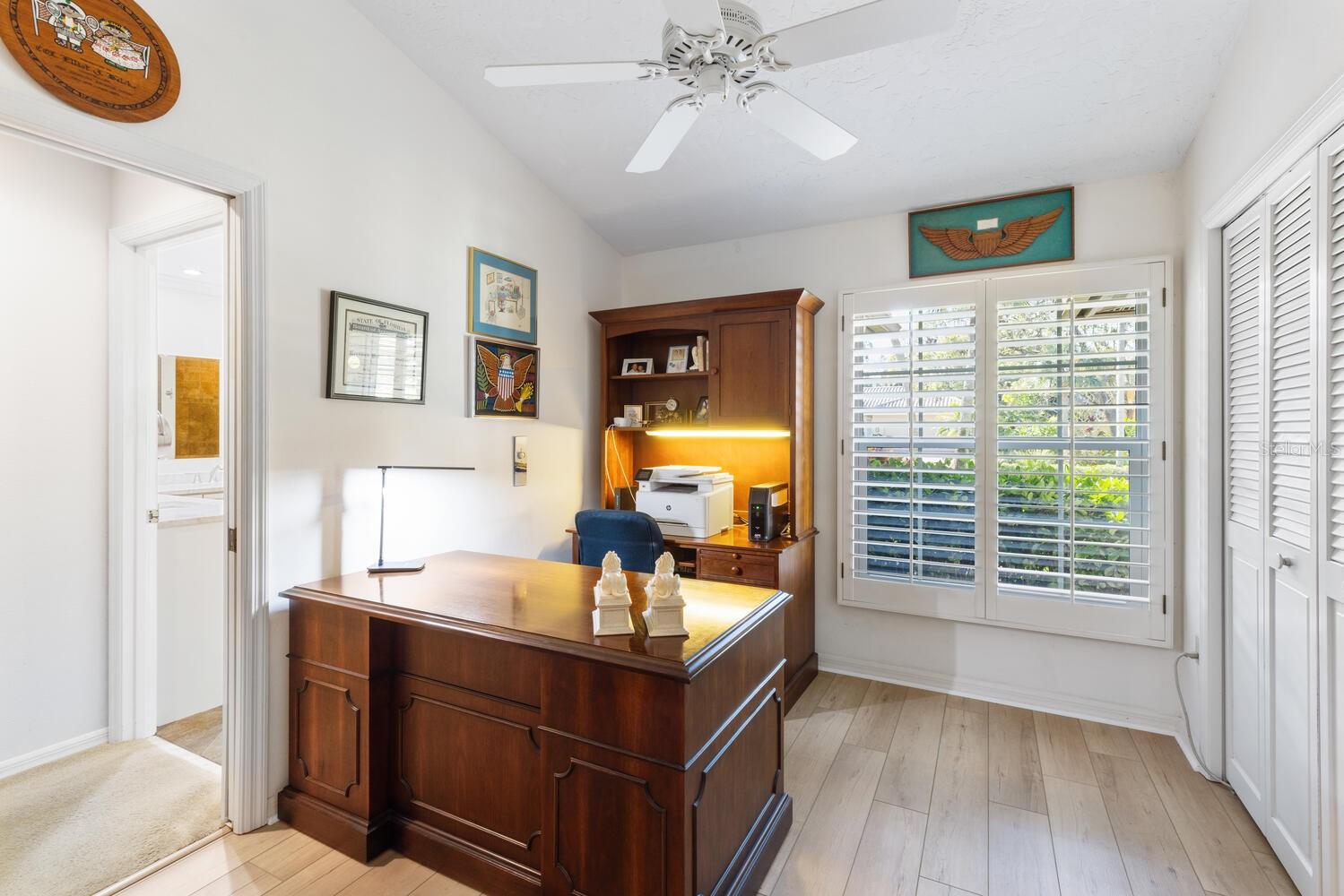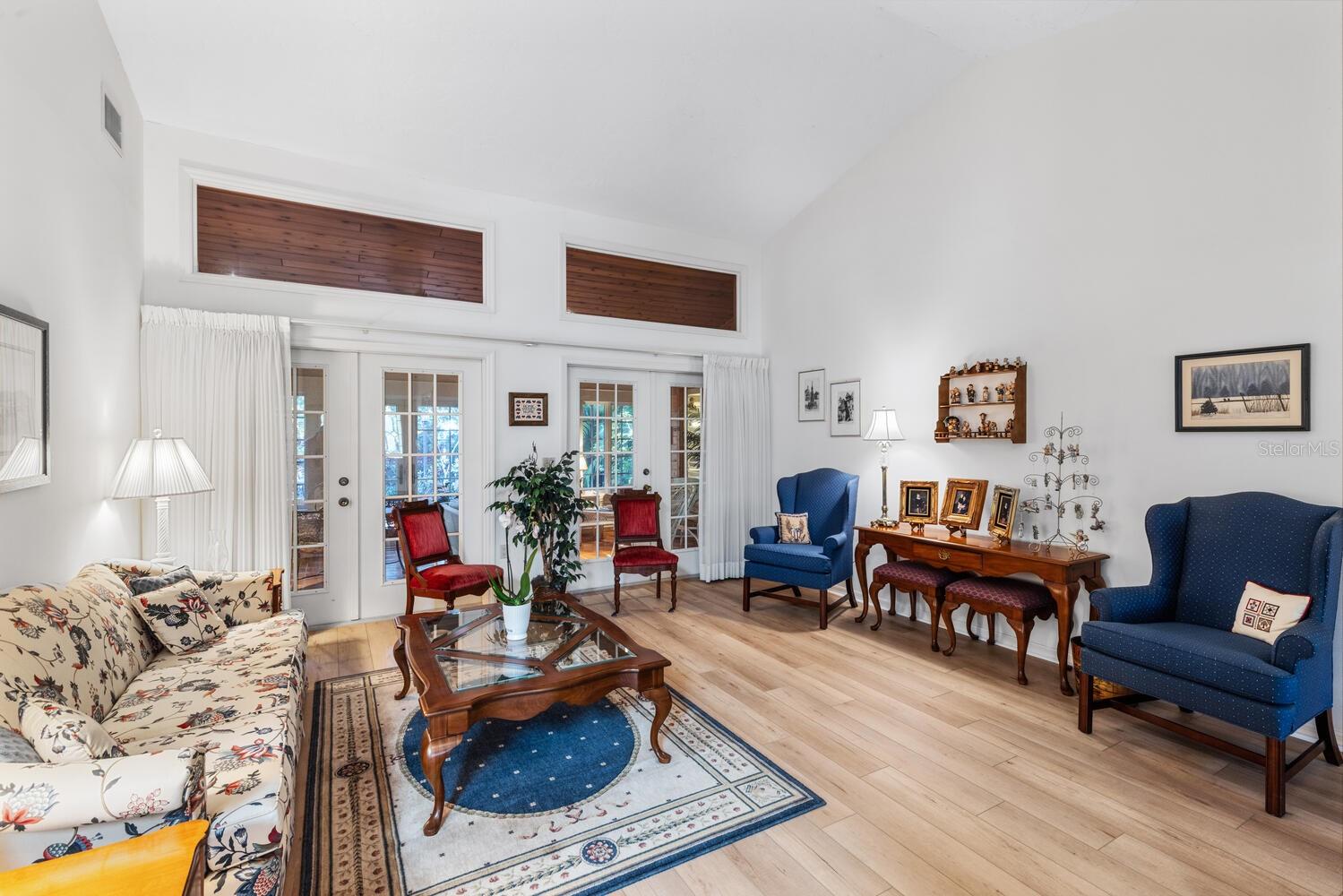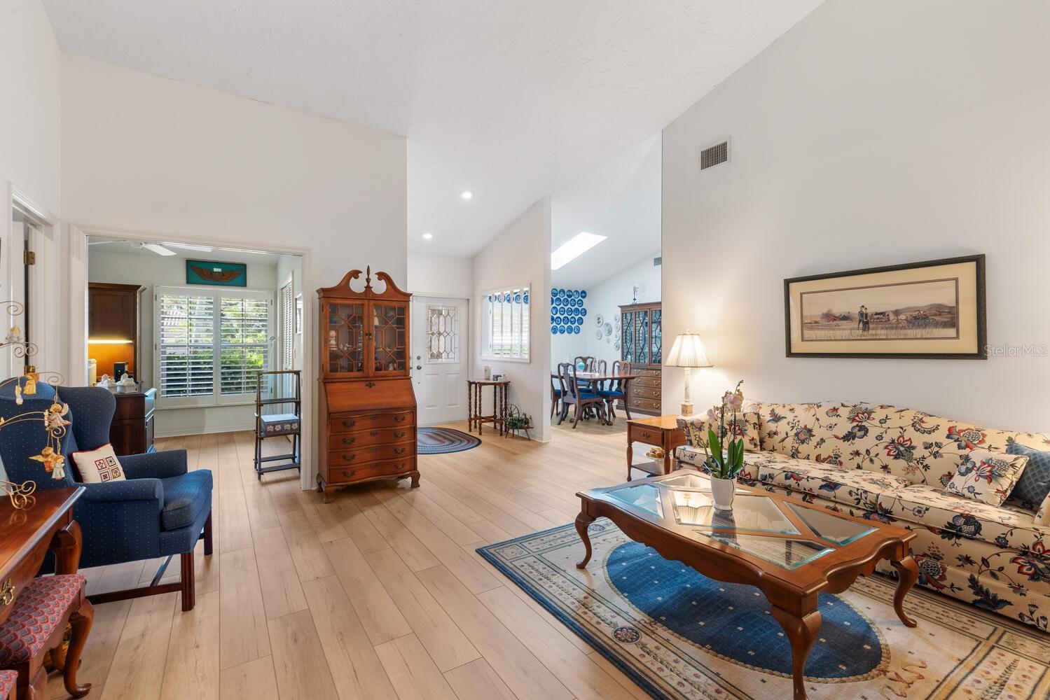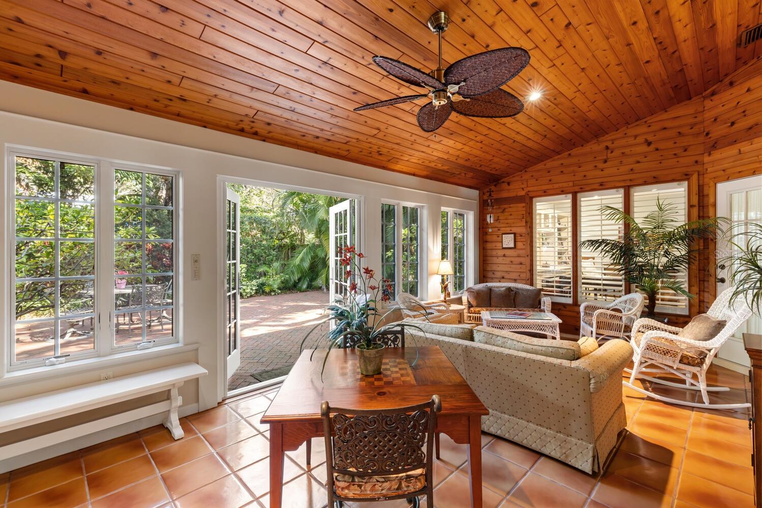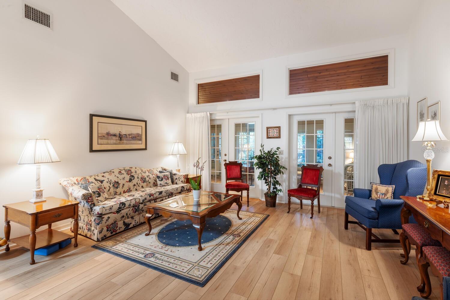 Best value, nestled in the heart of Sarasota, this beautifully maintained one-story home is situated in the sought-after, gated community of The Landings. Lovingly cared for by its original owners, this residence boasts a well-thought-out floor plan that blends comfort and functionality. The spacious primary suite is complemented by an adjoining den that can be used as an additional living space or office, offering the perfect retreat for work or relaxation. The living room, featuring elegant French doors, opens to a charming enclosed Florida room. Guests will feel at home in the two private guest suites, ensuring comfort and privacy. The kitchen opens to a cozy family room with vaulted ceilings and a wood-burning fireplace, creating a warm and inviting gathering space. Just outside, a private and peaceful paver patio offers the perfect spot for outdoor relaxation. Recent updates enhance the home's appeal, including luxury vinyl oak flooring, newer windows, a replaced irrigation system, and an updated A/C. Beyond the home, The Landings offers an exceptionally dog-friendly neighborhood, scenic nature trails, a fishing pier, and a kayak launch perfect for those who love the outdoors. Ideally located just moments from Sarasota's renowned dining, shopping, and cultural attractions, this home presents a rare opportunity to enjoy the best of Sarasota living.