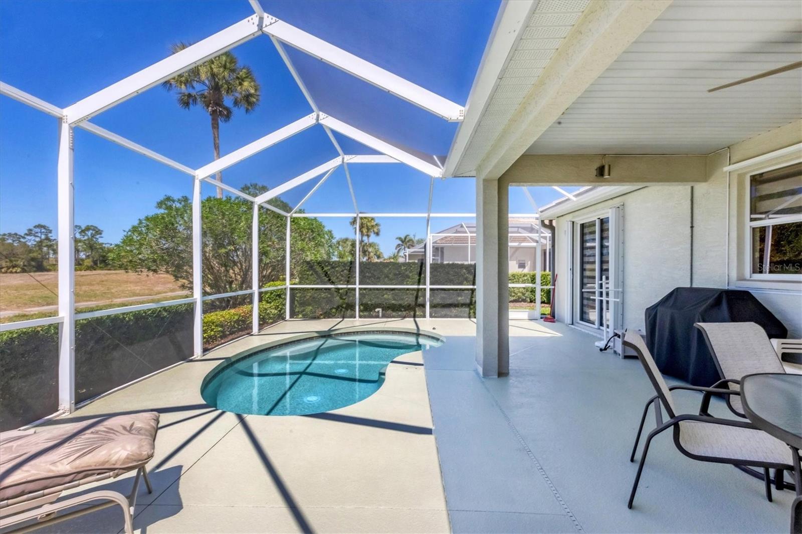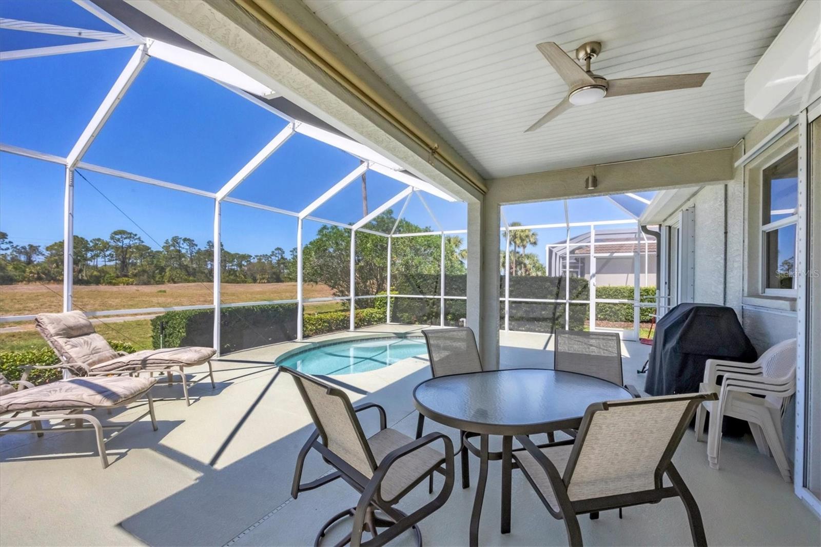 Turnkey 2-Bedroom Pool Home in Bobcat Trail - Move-In Ready! Welcome to this beautifully maintained 2-bedroom, 2-bathroom + den pool home in the welcoming community of Bobcat Trail! This turnkey home (inventory included--see attachments) is packed with thoughtful upgrades, making it completely move-in ready. The Great Room with a Gas Fireplace is a cozy and inviting space with plenty of room for entertaining. This home includes a spacious den which is large enough for a Murphy bed, pull-out sofa, and a desk, making it perfect for guests or a home office. The Primary Suite features two closets (one walk-in), ensuite bath with double vanity, walk-in shower, and water closet--plus sliding doors leading directly to the lanai and pool! The guest Bedroom - Also includes patio door access to the lanai, allowing guests to enjoy the Florida lifestyle. Wood cabinets, stainless steel appliances, new quartz countertops (to be installed in April!) and beverage fridge makes the kitchen great for entertaining. Outdoor Oasis and Recent Upgrades include: Screened lanai & pool area, a resurfaced spa/pool and new LED lighting (2025), New natural gas pool heater (2024), New flat tile roof, gutters & downspouts (2023), Lanai cage rescreened with rust-proof nylon screws & two new doors (2022), Lanai & garage floor resurfaced (2025). Bonus Features: Custom hurricane protection - Electric roll-down and accordion shutters, In-wall pest control system - Keeping maintenance simple, Tankless hot water heater - Energy-efficient and convenient, Concrete curbing around the entire home - Enhancing curb appeal. Conveniently located near I-75 and US 41, Bobcat Trail offers easy access to medical care, restaurants, shopping destinations, and the exhilarating beach. Sports enthusiasts will appreciate the proximity to the Spring Training facilities of the Rays and Braves. Indulge in the amenities that Bobcat Trail offers, including pickleball, and, tennis courts, a heated community pool, and a community center. Important Note: The privately-owned golf course is currently closed. Embrace the lifestyle you deserve. Contact us today to schedule a private tour of this immaculate home in Bobcat Trail and experience the perfect fusion of comfort, convenience, and community. Your dream home awaits. TAXES AND FEES: $6785 including the CDD of $2047.73. The HOA FEE is $124.00 annually and the required LAWN Maintenance FEE is $218.00 per month.