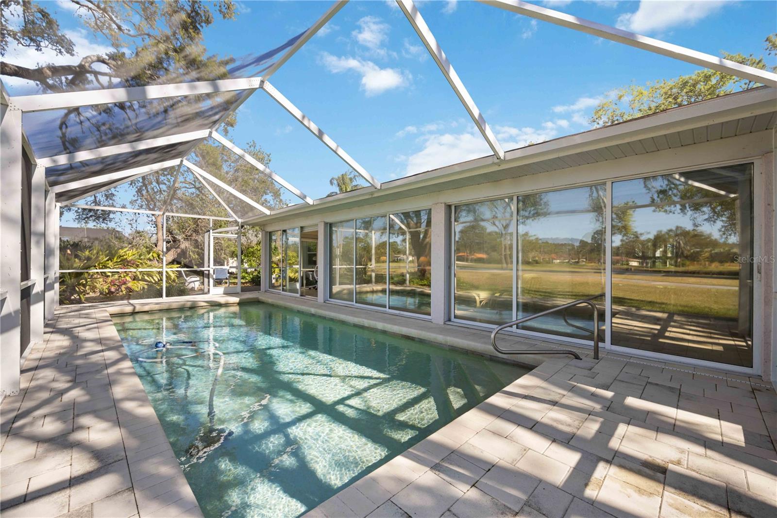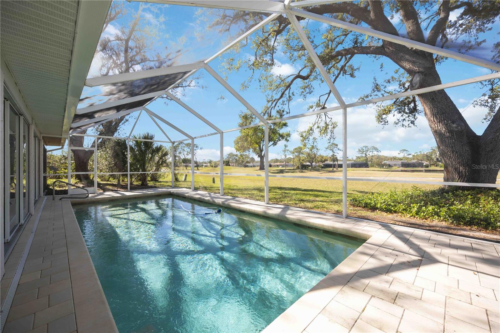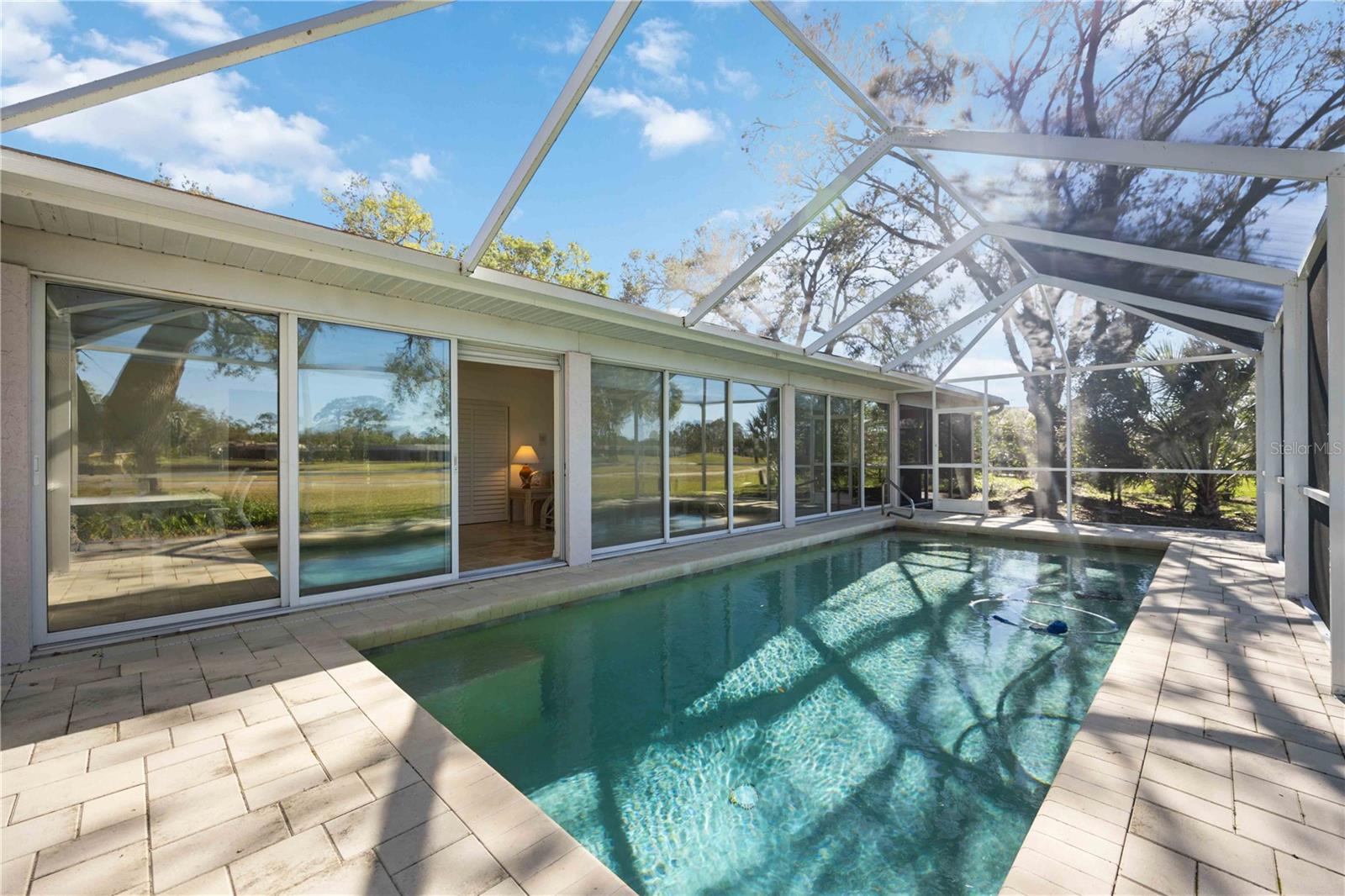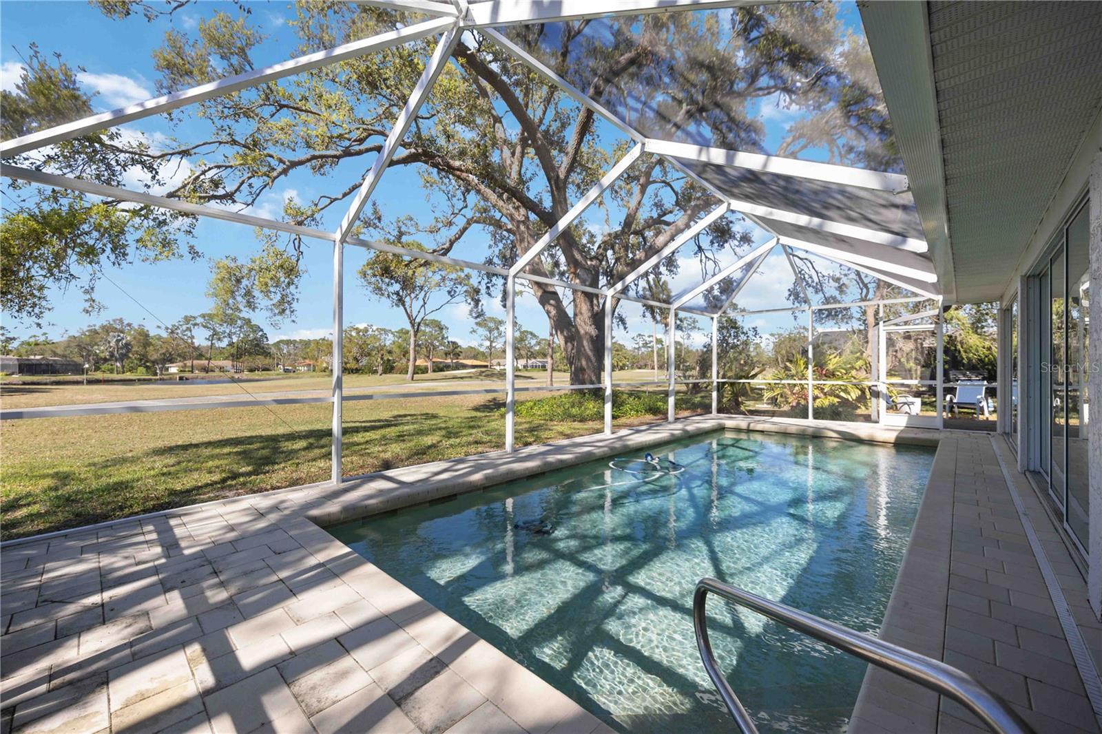 MASSIVE PRICE IMPROVEMENT! Priced UNDER market value... MOTIVATED SELLER. Live the Florida Lifestyle in The Meadows! Discover your private oasis with stunning golf course views overlooking the 2nd hole of The Highlands course in Sarasota's sought-after Meadows community. This light, bright, and beautifully updated home features a huge Florida room and a new pool cage with paver deck, perfect for relaxing afternoons or entertaining friends. Surrounded by giant oak trees and lush, mature landscaping, the setting is peaceful and serene. Inside, you'll love the new laminate flooring, giving the home a fresh and modern feel. The spacious layout includes multiple living areas and a garden spa tub in the master suite. The Meadows offers resort-style amenities, including a new state-of-the-art fitness center, pickleball courts, a Junior Olympic pool, and discounted greens fees on 36 holes of golf. Optional membership at The Meadows Country Club adds exclusive access to 17 Har-Tru tennis courts and a members-only golf course. Plus, with lots of social events, clubs, and activities, there's always something to enjoy. Just minutes to UTC shopping, Nathan Benderson Park, and downtown Sarasota. Furnishings are included but optional.